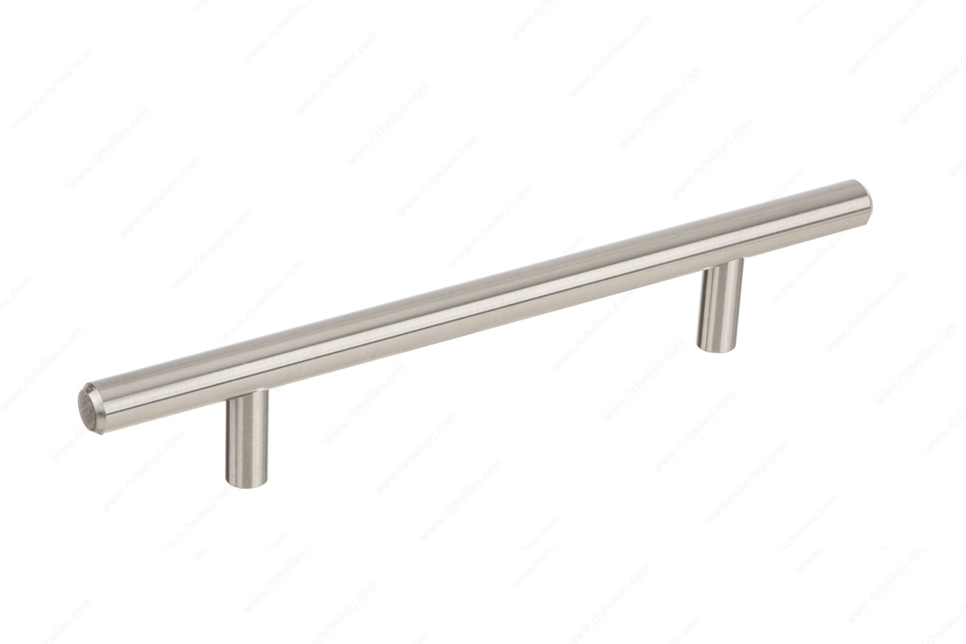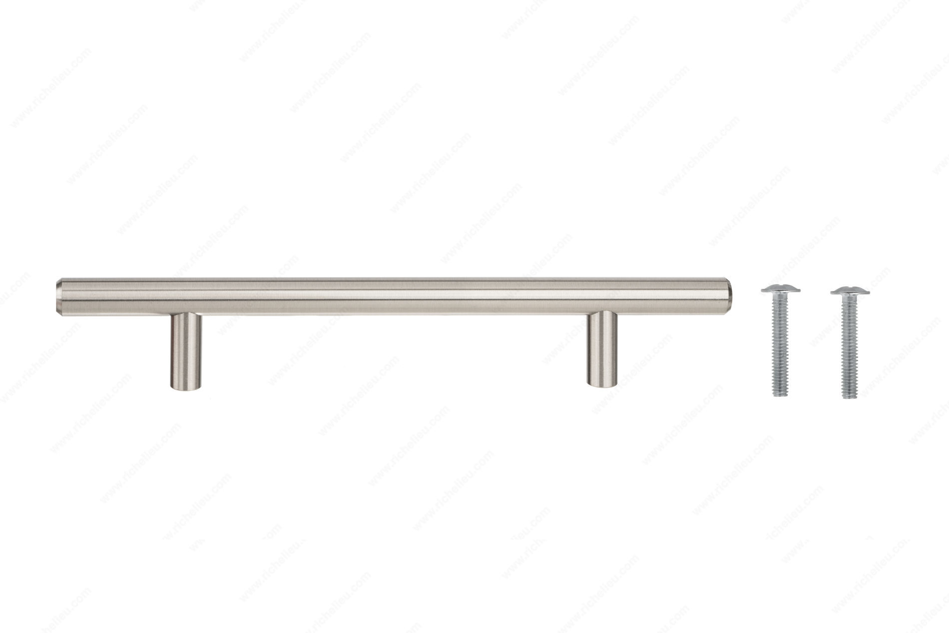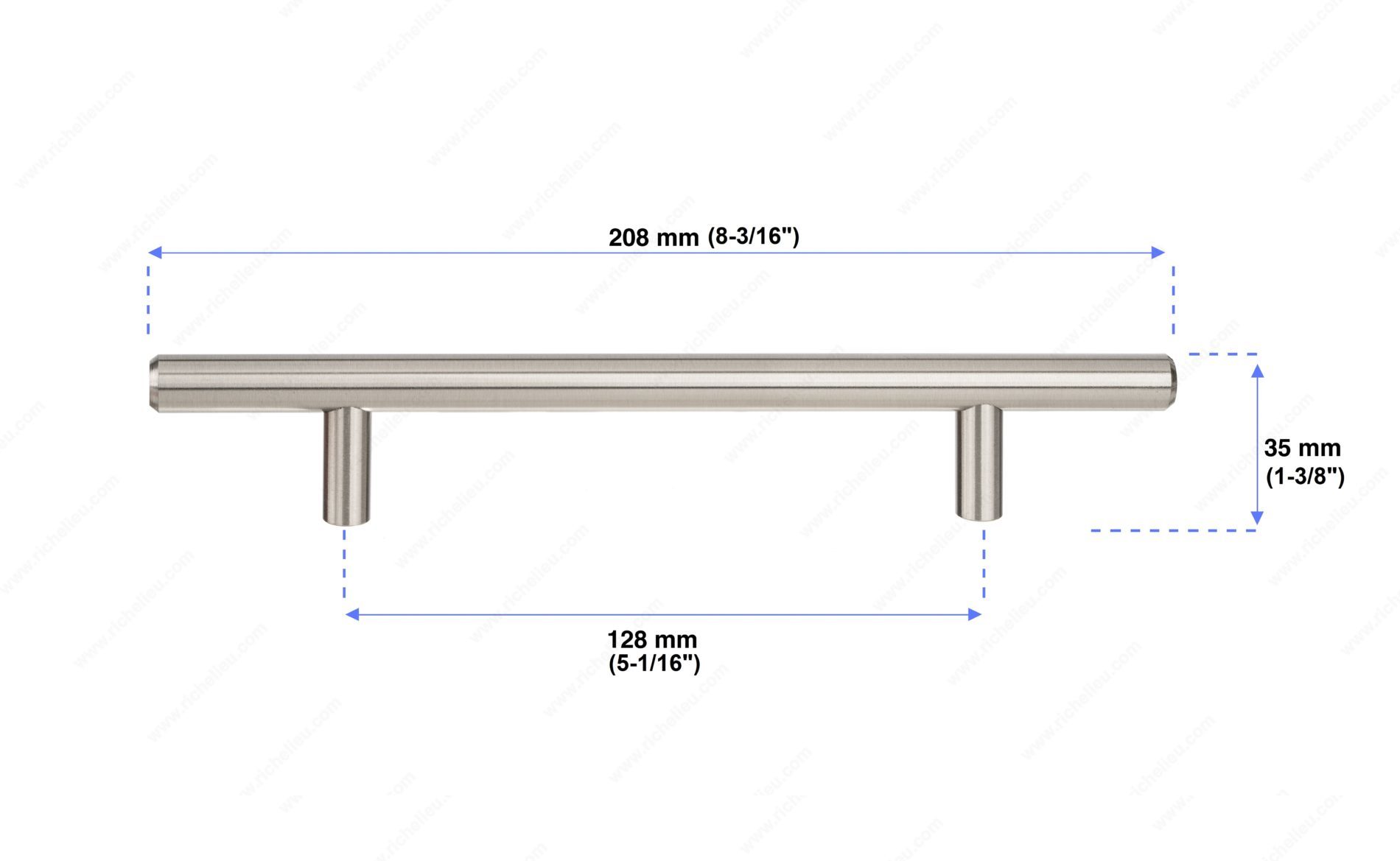 Richelieu BP305128195 Modern Steel Pull - 305 offers a sleek and robust design, making it a timeless choice for cabinetry and furniture. Crafted from solid steel, this durable pull features rounded corners that enhance user comfort and accessibility, ensuring a seamless application in any space. With a center-to-center measurement of 5 1/32 inches, this pull integrates effortlessly into various design aesthetics. The brushed nickel finish adds a touch of sophistication, complemented by a contemporary gray and chrome color palette. Its overall dimensions include a length of 8 3/16 inches, a width of 13/32 inches, and a projection of 1 3/8 inches, making it ideal for both modern and traditional cabinetry. Richelieu's commitment to quality is evident in the BP305128195, which adheres to RoHS standards for safety and environmental considerations. The pull is packaged conveniently in a bag and includes 8/32 inch screws for easy installation. This product belongs to the Urban collection, designed to harmonize with all collections, ensuring versatility across your projects. Elevate your spaces with this stylish and functional hardware solution that embodies durability and elegance.