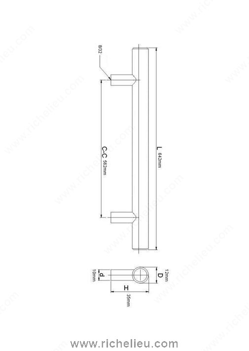 Richelieu BP305562195 Modern Steel Pull - 305 offers a clean and sturdy design that enhances the aesthetic of any cabinetry or furniture. Crafted from solid steel, this pull combines durability with a user-friendly experience, featuring rounded corners that provide a comfortable grip for everyday use. The brushed nickel finish adds a contemporary touch, making it a versatile choice for various styles and applications. With a center-to-center measurement of 22 1/8 inches, this extra-long pull is ideal for larger drawers and cabinets, ensuring a seamless integration into your design. Measuring 25 1/4 inches in length, 13/32 inches in width, and 1 3/8 inches in projection, it provides a substantial yet elegant presence. The pull is RoHS certified, assuring compliance with environmental standards, and it ships conveniently via UPS. Included with the pull are 8/32 inch screws for easy installation, allowing you to enhance your space quickly and effectively. As part of the Urban collection, this model complements all collections, making it an essential addition for both building professionals and discerning homeowners looking for quality and style. Elevate your interiors with the refined functionality of the Richelieu BP305562195 Modern Steel Pull.
