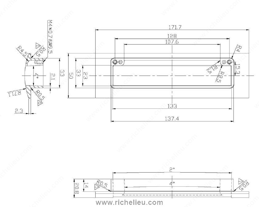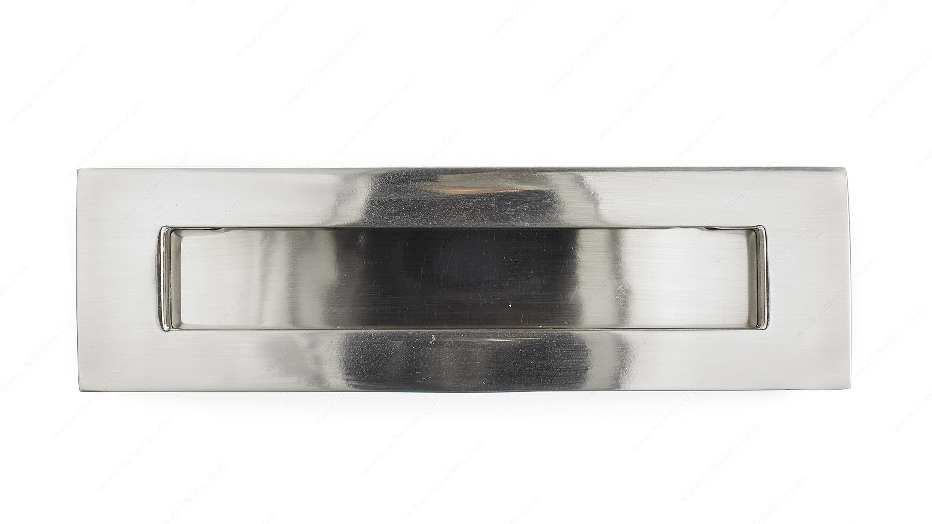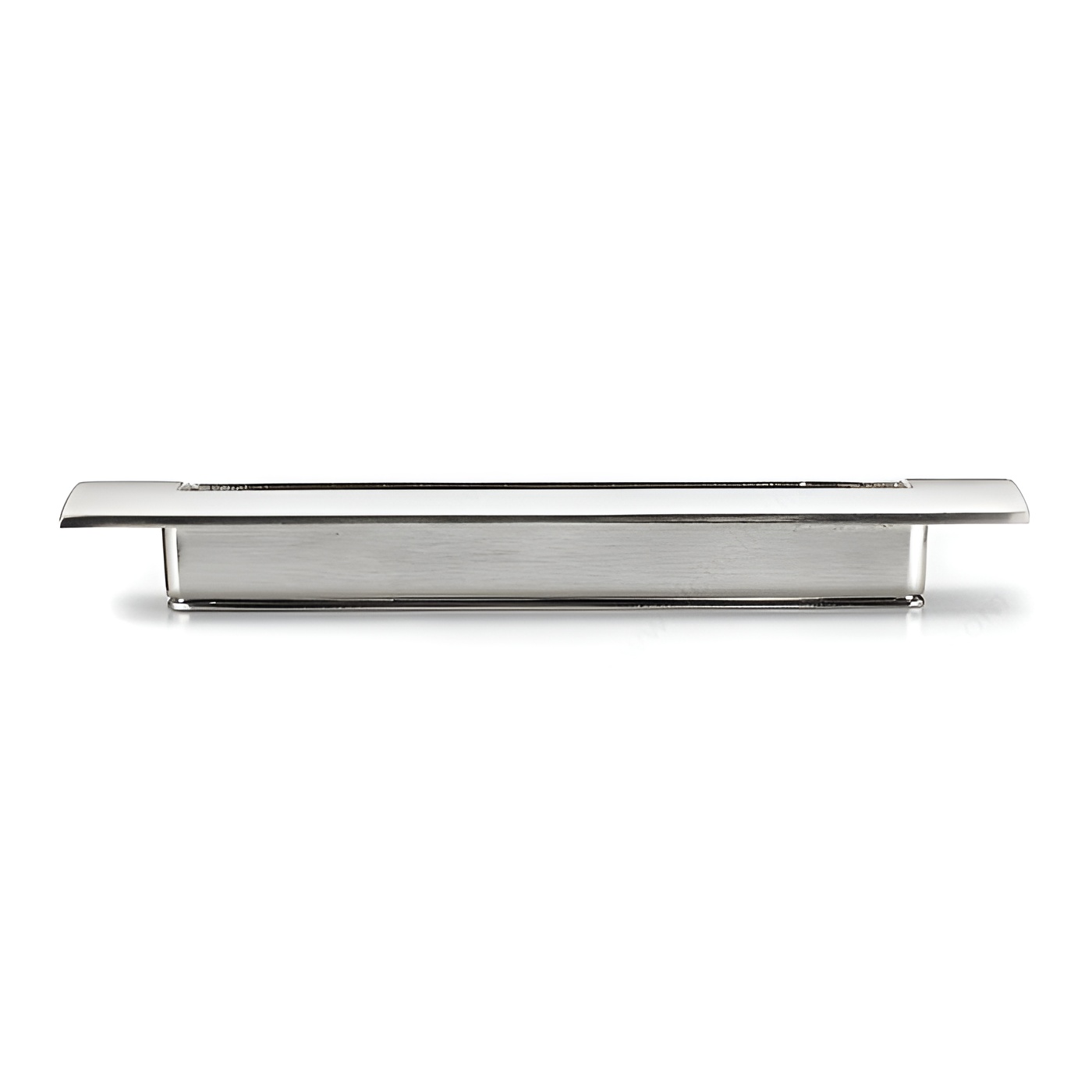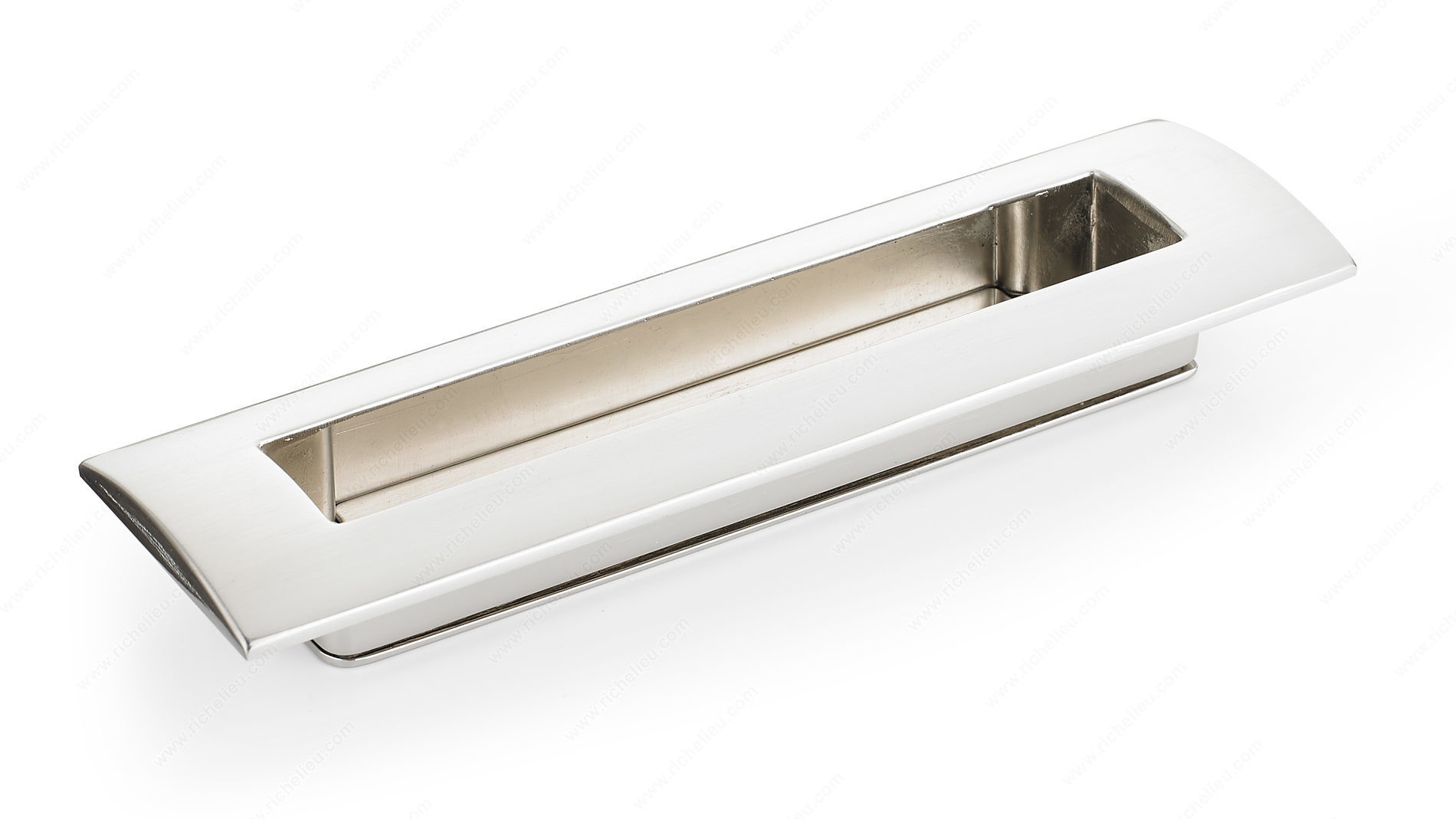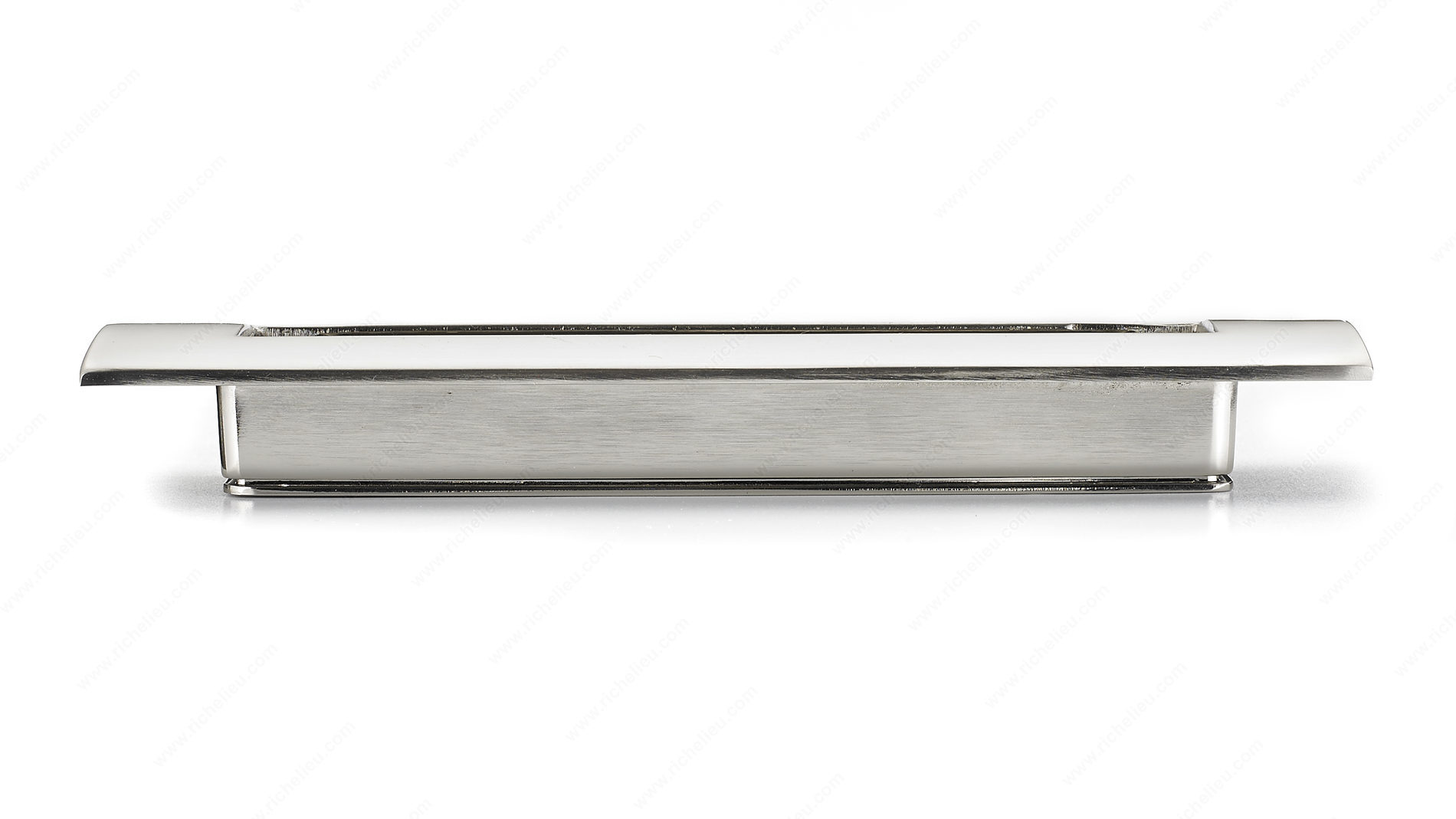Richelieu BP310075172195 Modern Recessed Metal Pull - 3100 offers a sophisticated solution for enhancing your cabinetry. This recessed handle is expertly designed to seamlessly integrate into your cabinet door, making it an ideal choice for sliding door applications. Crafted from durable metal, the modern aesthetic features a brushed nickel finish that adds a contemporary touch to any space. With an overall length of 6 25/32 inches and a height of 13/16 inches, this pull is not only stylish but also functional. The center-to-center measurement is 5 1/32 inches, ensuring compatibility with a variety of cabinet designs. The milling specifications include a depth of 19/32 inches and a width of 1 11/32 inches, making installation straightforward. Available in a sleek gray and chrome color scheme, the Richelieu BP310075172195 pull is designed for effortless use, with a projection of 9/32 inches that allows for a comfortable grip. It comes with recessed screws (8/32 inch included), ensuring you have everything needed for installation. Elevate your cabinetry with this modern recessed pull, combining practicality with a refined look that complements any interior design.