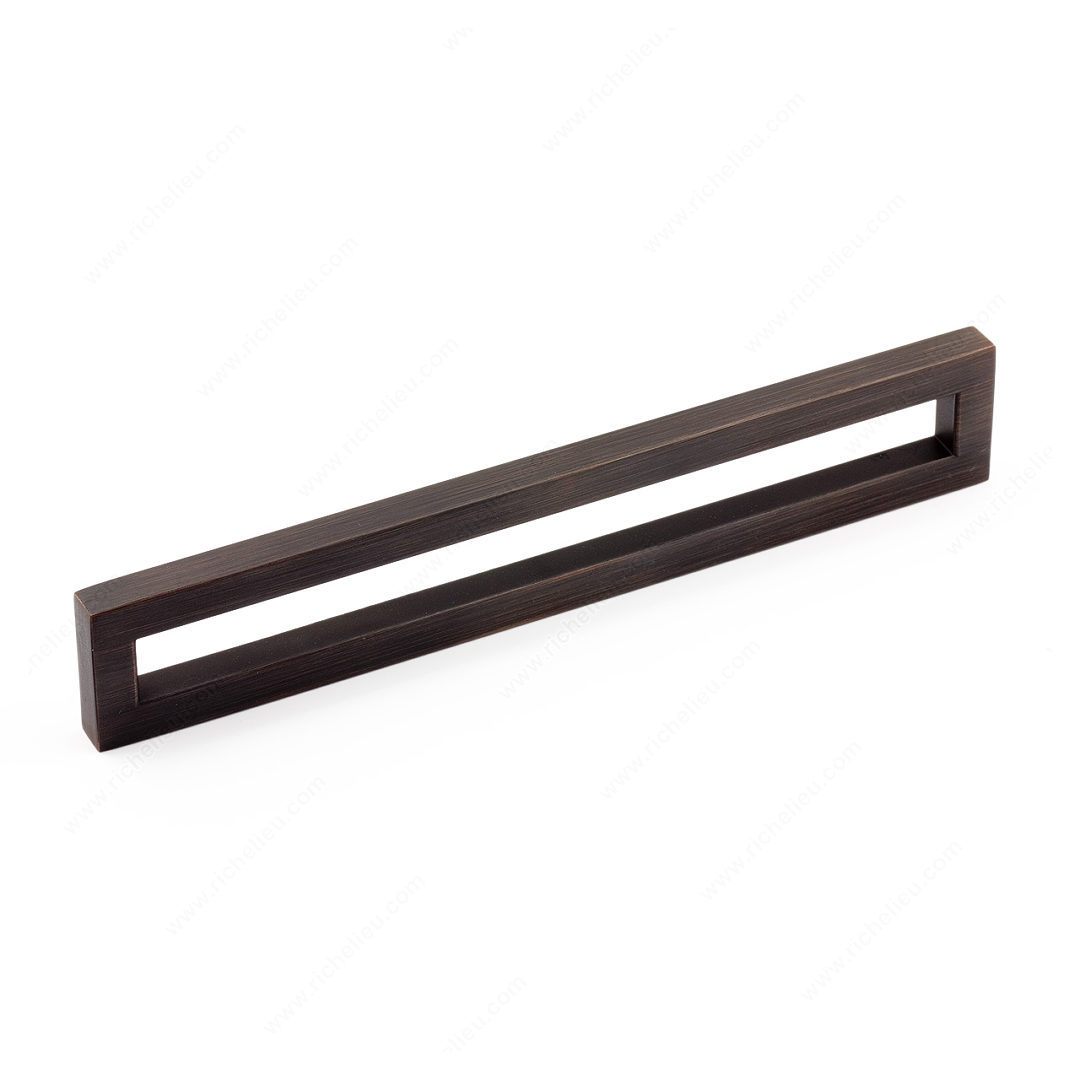 Richelieu BP312456160BORB Modern Metal Pull - 3124 embodies a seamless blend of minimalist design and striking style. Crafted from high-quality zamak, this pull showcases a brushed oil-rubbed bronze finish that adds a touch of elegance to any cabinetry or furniture. With a center-to-center measurement of 6 5/16 inches and overall dimensions of 6 9/16 inches in length, this modern pull is designed to fit standard drawer and door applications effortlessly. Its slender width of 5/16 inches and a projection of 1 3/32 inches make it comfortable to grip while maintaining a sleek profile. Ideal for both residential and commercial settings, the BP312456160BORB is packaged conveniently in a bag and includes 8/32 inch screws for easy installation. The rich brown and bronze hues provide a sophisticated contrast that enhances the overall aesthetic of your space. Whether you're renovating a kitchen, updating a bathroom, or designing a new office, this modern metal pull is an excellent choice for those seeking functionality without compromising on style. Elevate your interiors with Richelieu’s commitment to quality and design excellence.