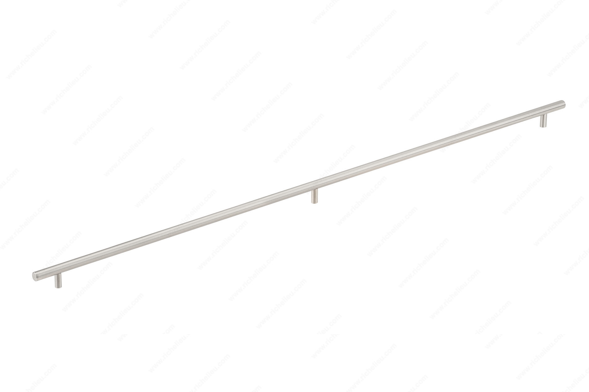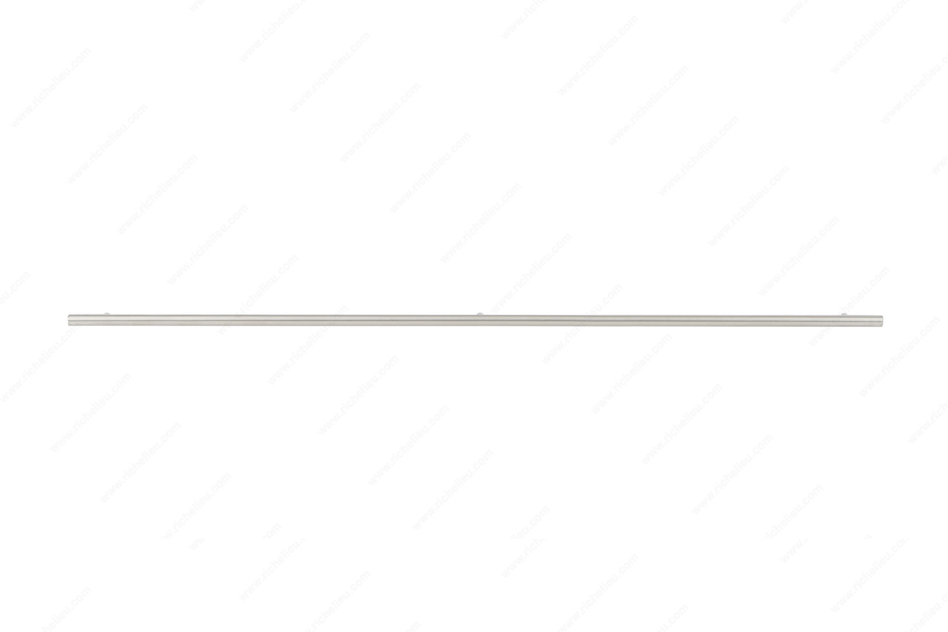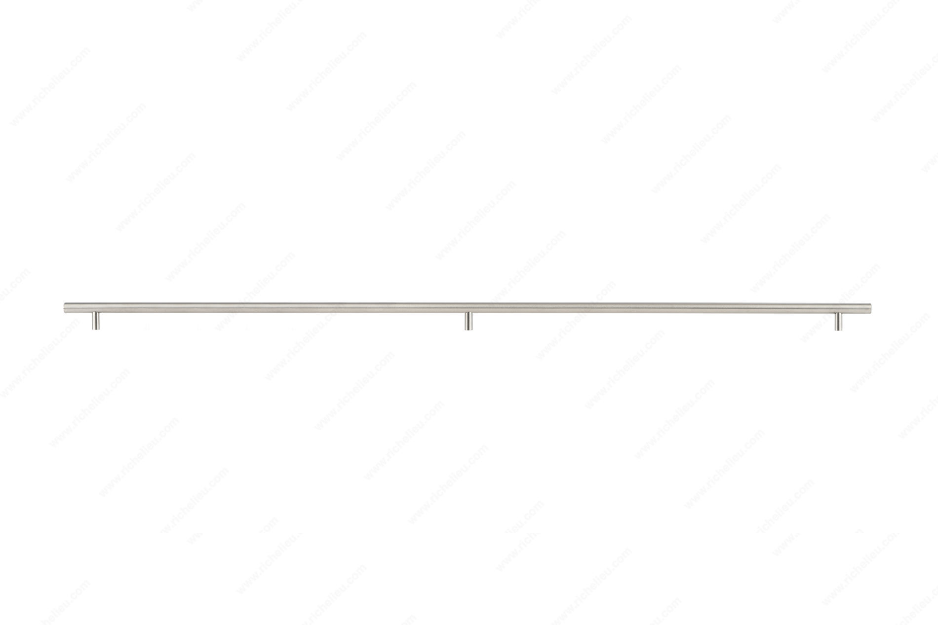 Richelieu BP34871019170 Modern Stainless Steel Pull - 3487 offers a sleek and contemporary design that enhances both kitchen and bathroom spaces. Crafted from high-quality 201 stainless steel, this bar pull showcases a brushed finish that not only adds elegance but also provides durability and resistance to wear over time. With an overall length of 43 1/4 inches and a center-to-center measurement of 40 1/8 inches, this extra-long pull is perfect for larger cabinetry, making it a functional and stylish choice for modern interiors. Its 9/16-inch diameter ensures a comfortable grip, while the 1 3/8-inch projection allows for easy access without compromising space. The gray and chrome color scheme complements a variety of decor styles, seamlessly fitting into any design aesthetic. Included with the pull are 8/32 inch screws, ensuring a hassle-free installation process. Whether you are renovating a kitchen or updating a bathroom, the Richelieu BP34871019170 pull is an excellent addition that combines utility with striking design. Elevate your cabinetry with this modern pull that speaks to both functionality and contemporary style.