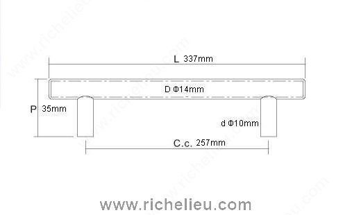 Richelieu BP3487257170AB Modern Stainless Steel Pull - 3487 exemplifies contemporary design with its sleek brushed stainless steel finish. This modern bar pull is tailored to enhance both kitchen and bathroom environments, effortlessly blending with diverse décor styles. Boasting a center-to-center measurement of 10 1/8 inches, it provides an ideal grip while ensuring functionality. With overall dimensions of 13 1/4 inches in length, a projection of 1 3/8 inches, and a width of 9/16 inches, this pull offers a substantial yet understated presence. The antibacterial stainless steel material not only ensures durability but also resists disinfecting products, making it a practical choice for high-traffic areas. Available in a sophisticated gray and chrome color, this pull complements any modern aesthetic. Part of the complete 3487 collection, the BP3487257170AB is designed with versatility in mind. Each pull comes with an 8/32 inch screw for easy installation, allowing professionals and homeowners alike to upgrade their spaces with minimal effort. Elevate your cabinetry with this stylish and functional piece that showcases Richelieu's commitment to quality and innovation.