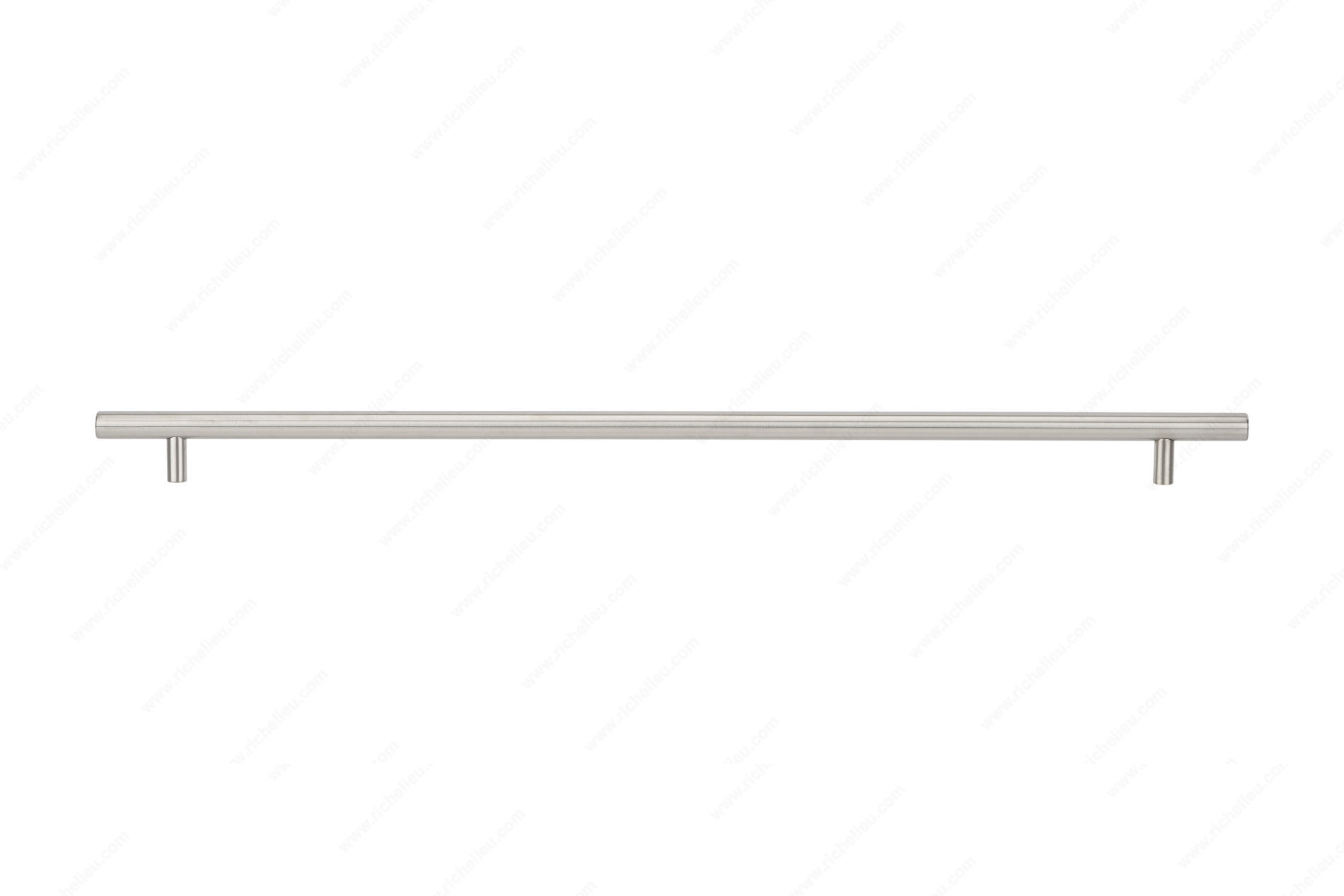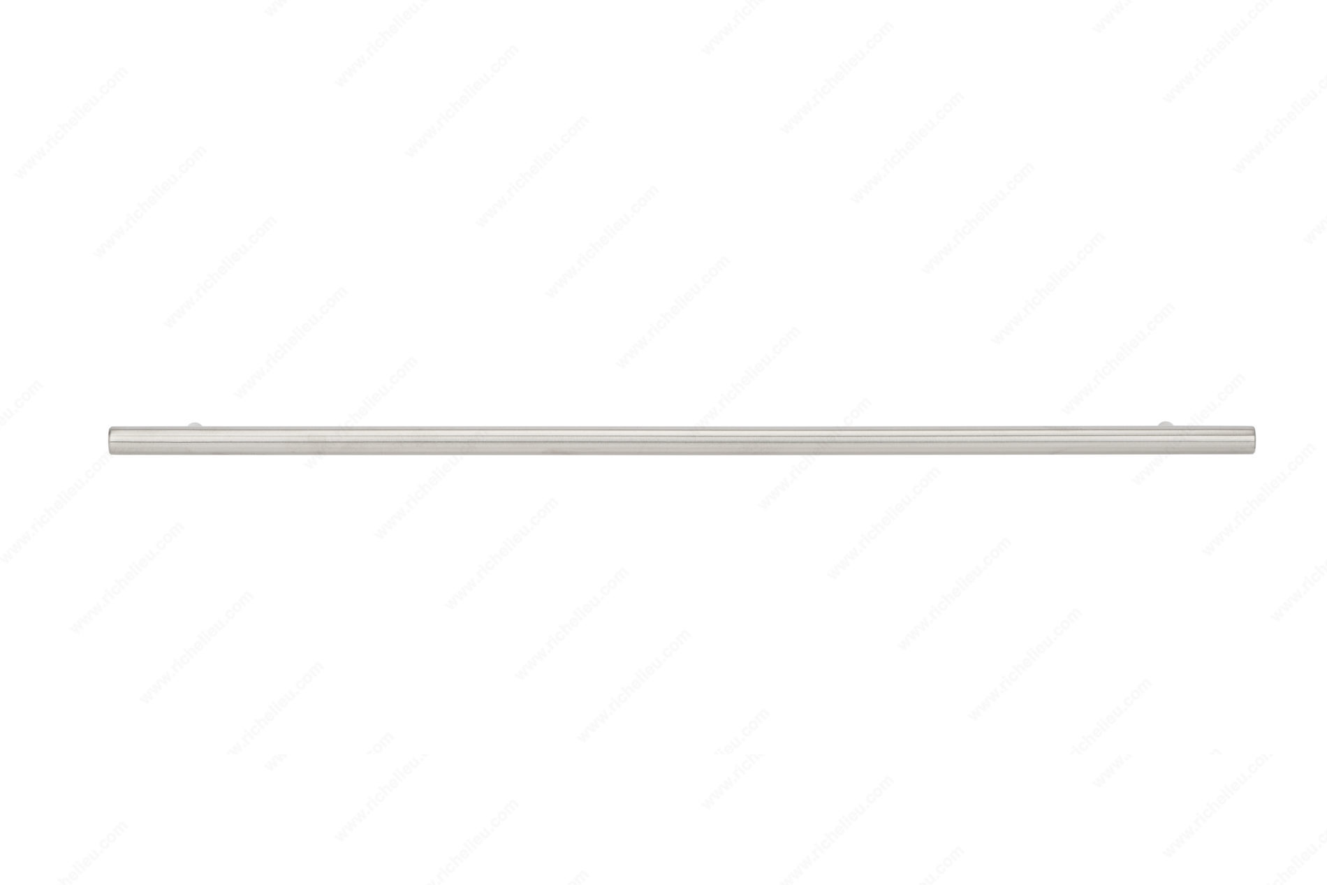 Richelieu BP3487486170 Modern Stainless Steel Pull - 3487 features a sleek and contemporary design that effortlessly enhances any kitchen or bathroom décor. Crafted from durable 201 stainless steel, this bar pull boasts a brushed finish that not only adds a touch of elegance but also ensures longevity and resistance to wear. With an overall length of 22 1/4 inches and a center-to-center measurement of 19 1/8 inches, it provides a comfortable grip while making a striking statement on cabinetry or drawers. The pull’s dimensions include a projection of 1 3/8 inches and an overall width of 9/16 inches, making it versatile enough for various applications. The subtle gray and chrome color scheme complements a wide range of finishes, ensuring it blends seamlessly into any design scheme. Easy to install, the pull comes with 8/32 inch screws included for your convenience, allowing for a quick upgrade to your space. Part of the complete 3487 collection, the Richelieu BP3487486170 is an ideal choice for those seeking utility with style. Whether you're updating your home or working on a professional project, this modern stainless steel pull is sure to elevate the aesthetic of your environment.