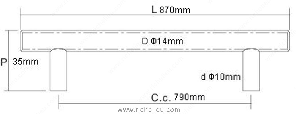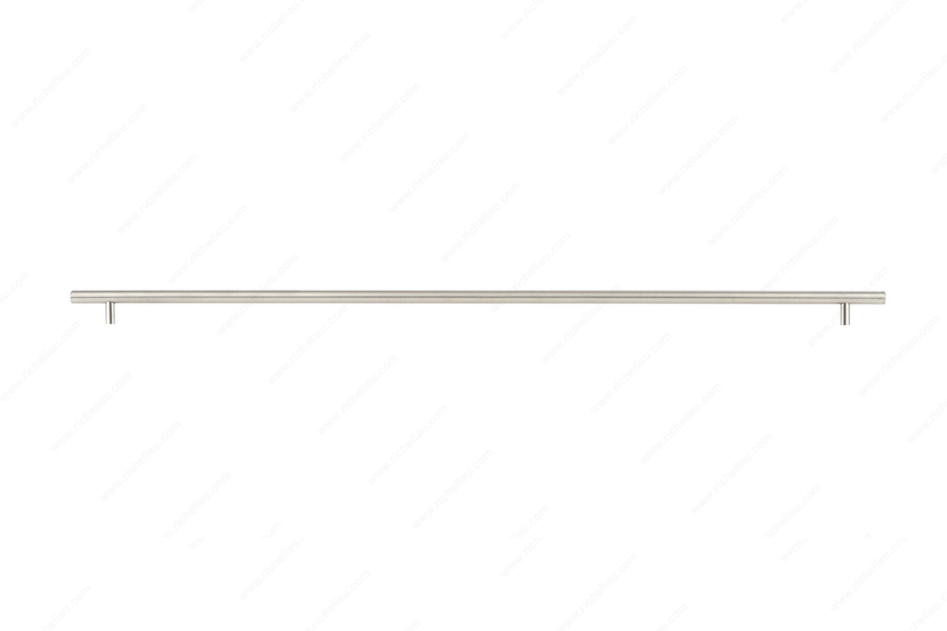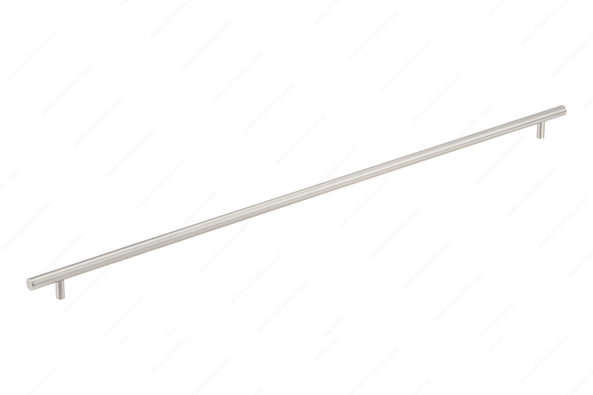 Richelieu BP3487790170 Modern Stainless Steel Pull - 3487 offers a striking blend of functionality and contemporary design, perfect for elevating your kitchen or bathroom aesthetics. Crafted from durable 201 stainless steel, this pull features a brushed finish that not only enhances its modern appeal but also ensures longevity and resistance to wear. With an overall length of 34 1/4 inches and a center-to-center measurement of 31 1/8 inches, this extra-long pull is ideal for larger cabinetry, providing ease of use while making a bold statement. The sleek gray and chrome color scheme complements various color palettes, allowing it to seamlessly integrate into any décor. Designed with a projection of 1 3/8 inches and a diameter of 9/16 inches, the pull offers a comfortable grip, making it a practical choice for busy households. It includes 8/32 inch screws for easy installation, ensuring a hassle-free setup. The utility style of this pull is part of the complete 3487 collection, allowing you to coordinate your hardware for a cohesive look. Enhance your interiors with the Richelieu BP3487790170 Modern Stainless Steel Pull, where style meets functionality for a sophisticated finish.