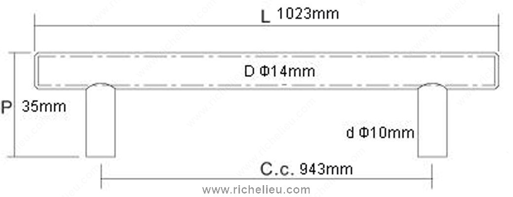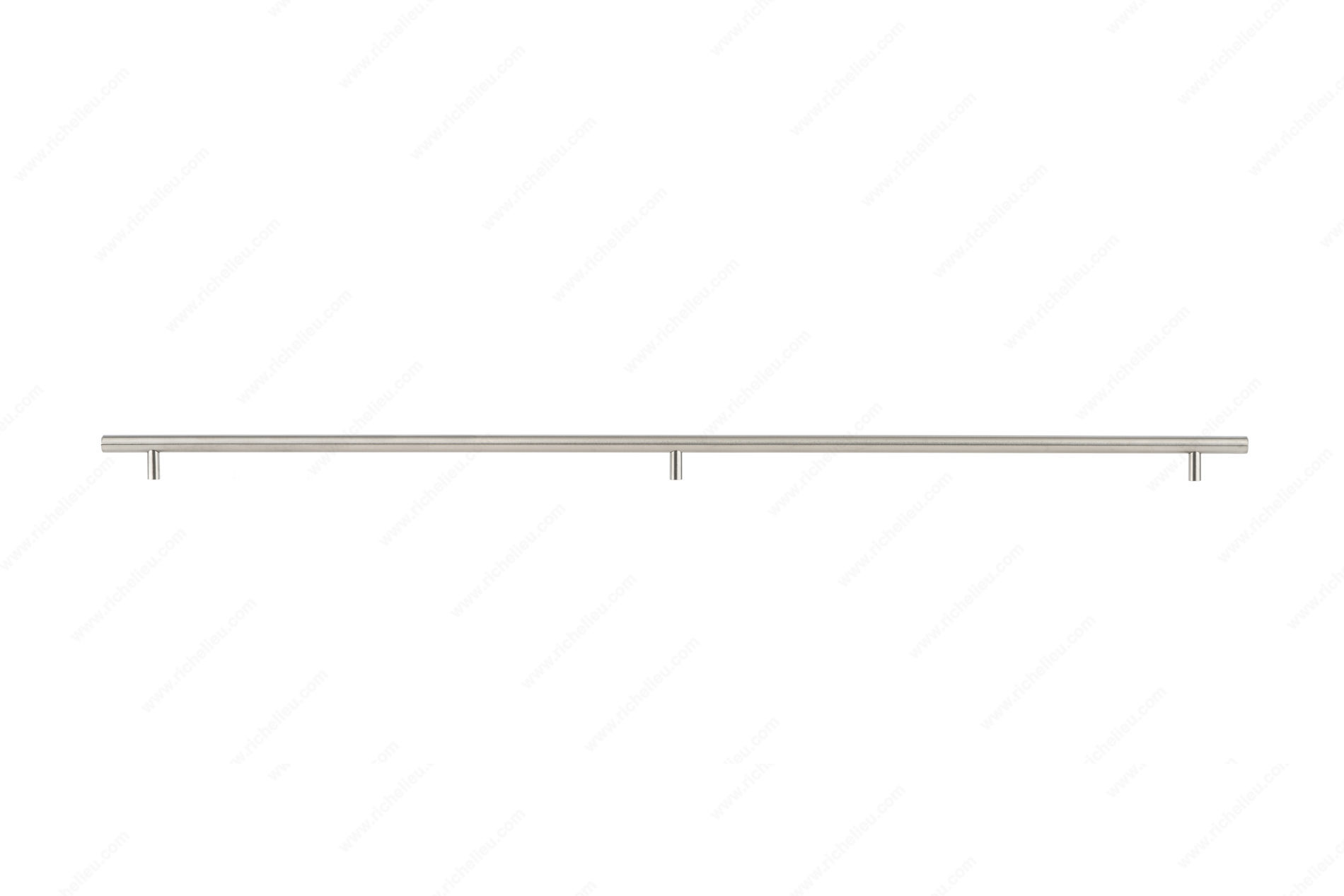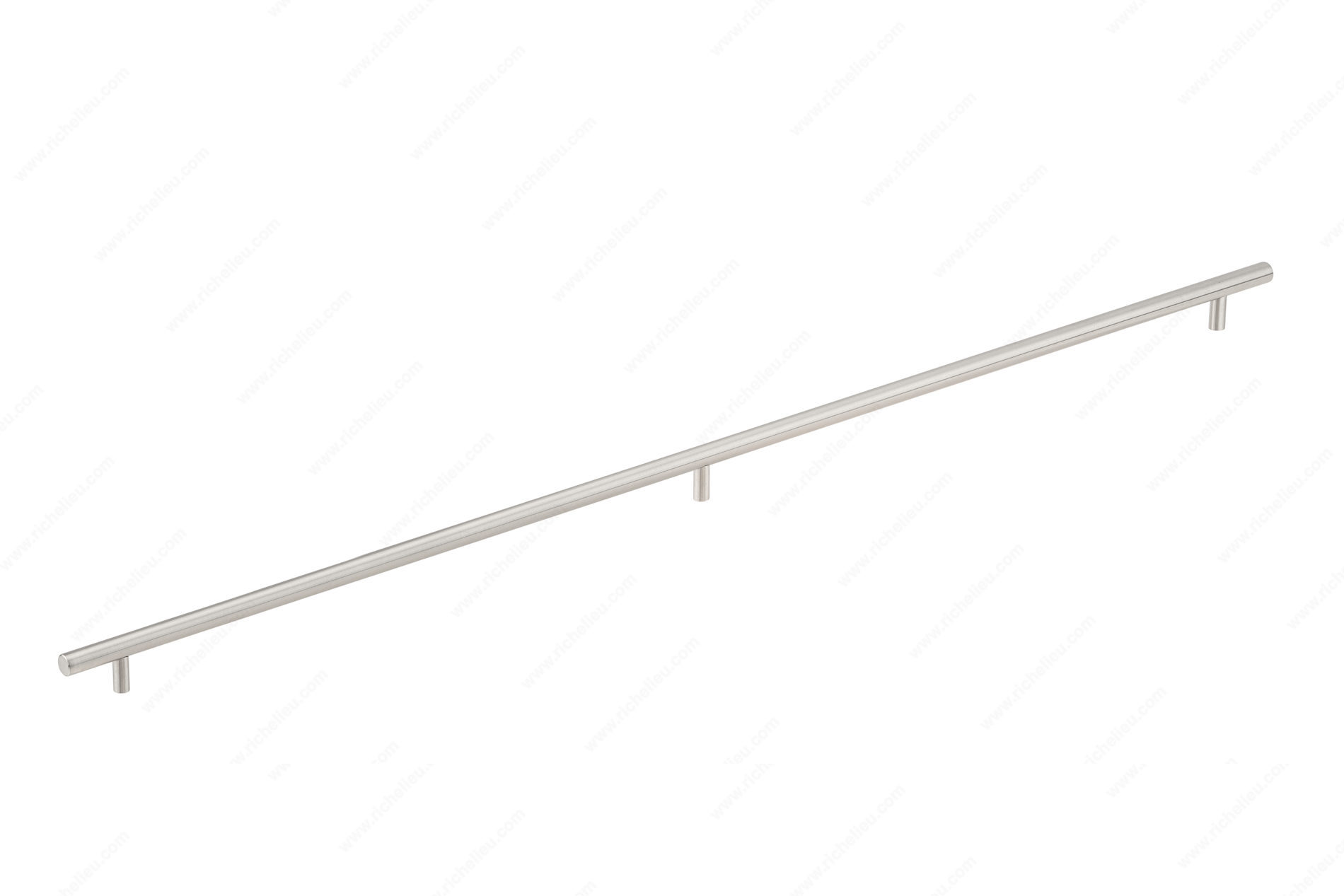 Richelieu BP3487943170 Modern Stainless Steel Pull - 3487 offers a sleek and contemporary addition to any kitchen or bathroom. Crafted from high-quality 201 stainless steel, this bar pull features a brushed finish that not only enhances its durability but also provides a sophisticated gray and chrome appearance. Its simple yet elegant design seamlessly complements various décors, making it a versatile choice for modern spaces. With an overall length of 40 1/4 inches and a center-to-center measurement of 37 1/8 inches, this pull is perfect for cabinet doors and drawers, providing a comfortable grip. The overall diameter is 9/16 inches, while the projection measures 1 3/8 inches, ensuring easy accessibility. Each pull comes with an 8/32 inch screw for convenient installation. Part of the comprehensive 3487 collection, the Richelieu BP3487943170 combines functionality with style, making it ideal for both residential and commercial applications. Its utility style and robust material make it a practical choice for high-traffic areas. Elevate your cabinetry with this modern pull that merges form and function seamlessly. Enjoy the effortless elegance and lasting quality that Richelieu is known for.