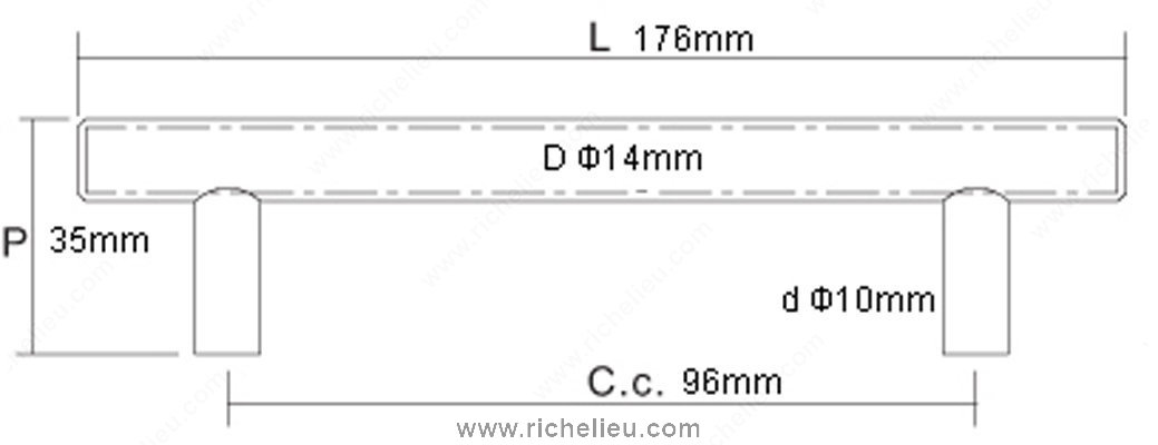 Richelieu BP348796170 Modern Stainless Steel Pull - 3487 is a striking bar pull that exudes contemporary elegance. Crafted from durable 201 stainless steel, this pull features a brushed finish that effortlessly complements a variety of kitchen and bathroom decors. With an overall length of 6 15/16 inches and a center-to-center measurement of 3 25/32 inches, it is designed for easy installation and a seamless fit on cabinets and drawers. This pull is characterized by its clean lines and minimalistic style, making it an ideal choice for both modern and transitional spaces. The sleek gray and chrome color adds a touch of sophistication, while the 9/16-inch width and 1 3/8-inch projection ensure comfortable grip and functionality. Each pull comes with the necessary 8/32-inch screws for quick setup, allowing you to enhance your cabinetry with minimal effort. Part of the comprehensive 3487 collection, the Richelieu BP348796170 offers versatility for various design projects. Whether you're renovating a kitchen or updating a bathroom, this stainless steel pull provides a refined touch that elevates the overall aesthetic. Choose Richelieu for quality hardware that combines style and practicality.
