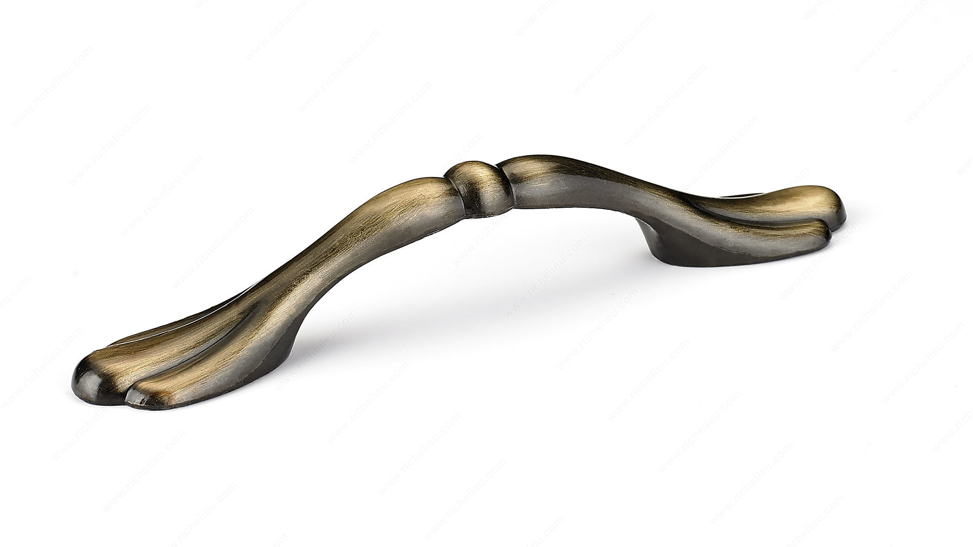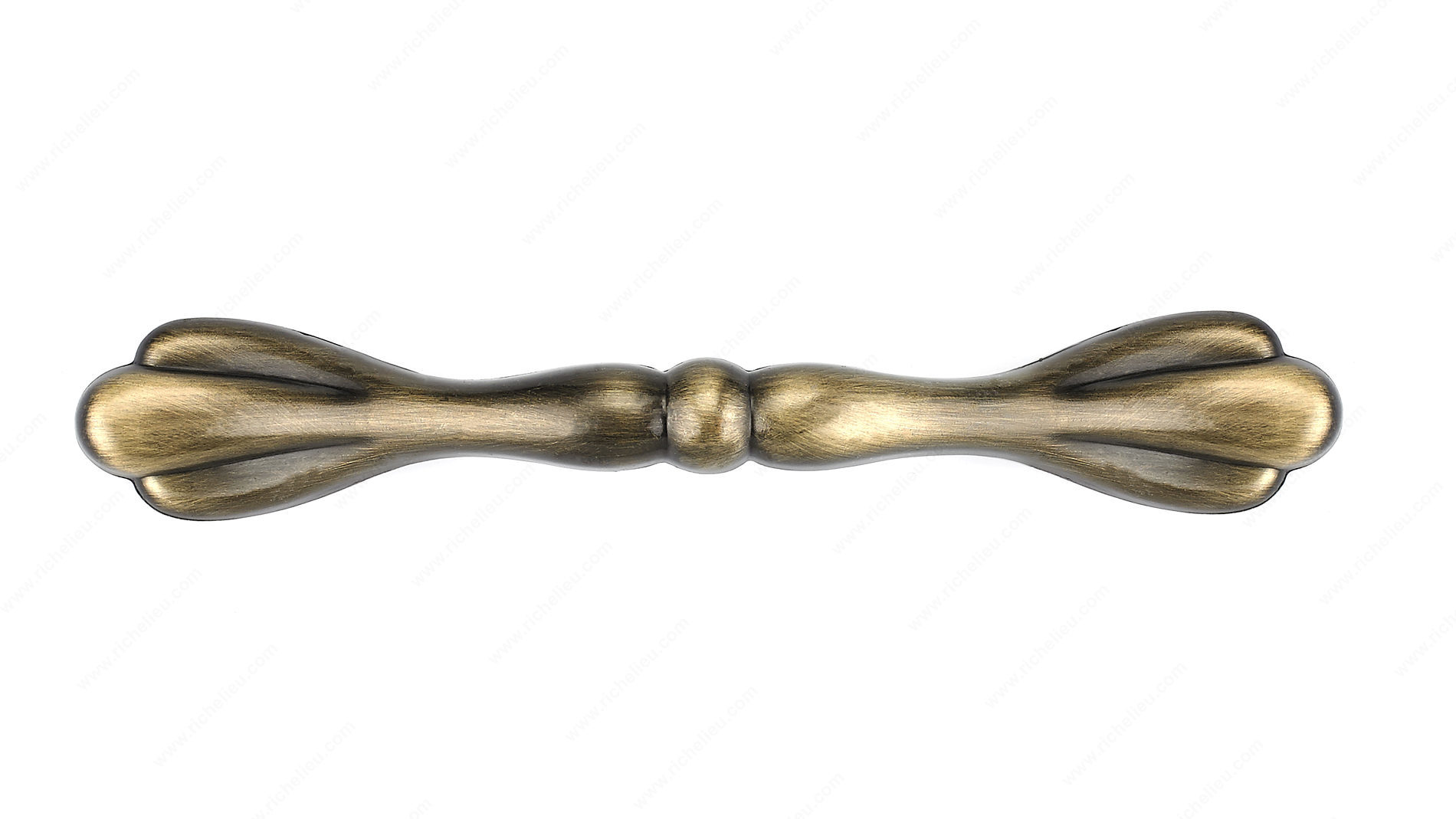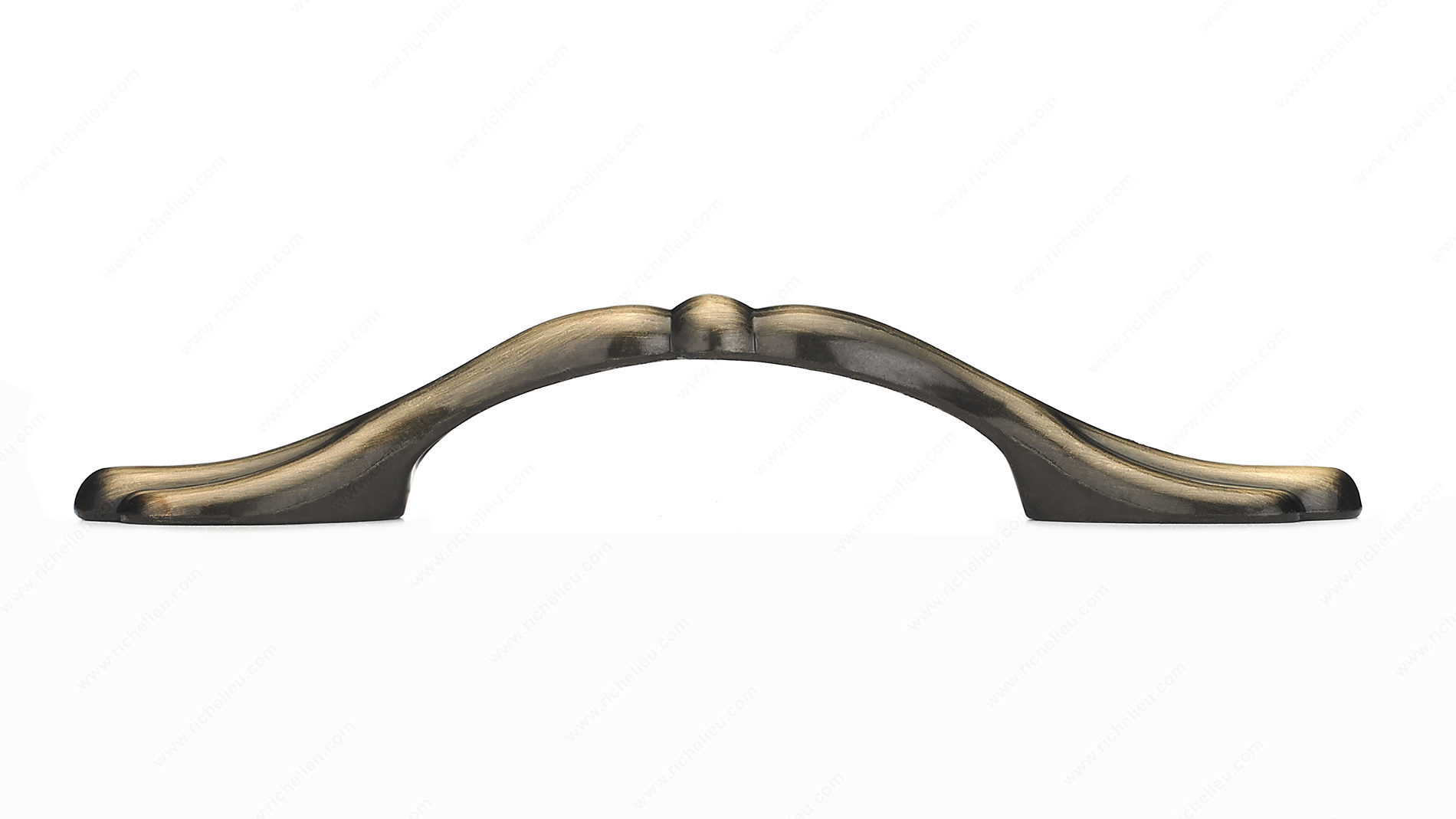 Richelieu BP36815BB Traditional Metal Pull - 3681 is the perfect addition to enhance the elegance of your furniture and cabinets. This pull features a classic design with unique stylized ends that are sure to catch the eye and elevate any space. Crafted from durable metal, it showcases a burnished brass finish that adds a touch of sophistication while ensuring long-lasting beauty. Measuring an overall length of 5 7/16 inches and a width of 7/8 inch, this pull has a center-to-center measurement of 3 inches, making it an ideal fit for a variety of cabinet styles. The projection of 15/16 inch provides a comfortable grip, facilitating ease of use. Accompanied by an 8/32 inch screw that is included for effortless installation, this traditional pull not only enhances functionality but also complements a range of design aesthetics, from classic to contemporary. The yellow and brass color combination further enriches its charm, making it a versatile choice for any renovation or new build. Choose the Richelieu BP36815BB Traditional Metal Pull to bring a refined touch to your cabinetry, ensuring both style and practicality in your space.