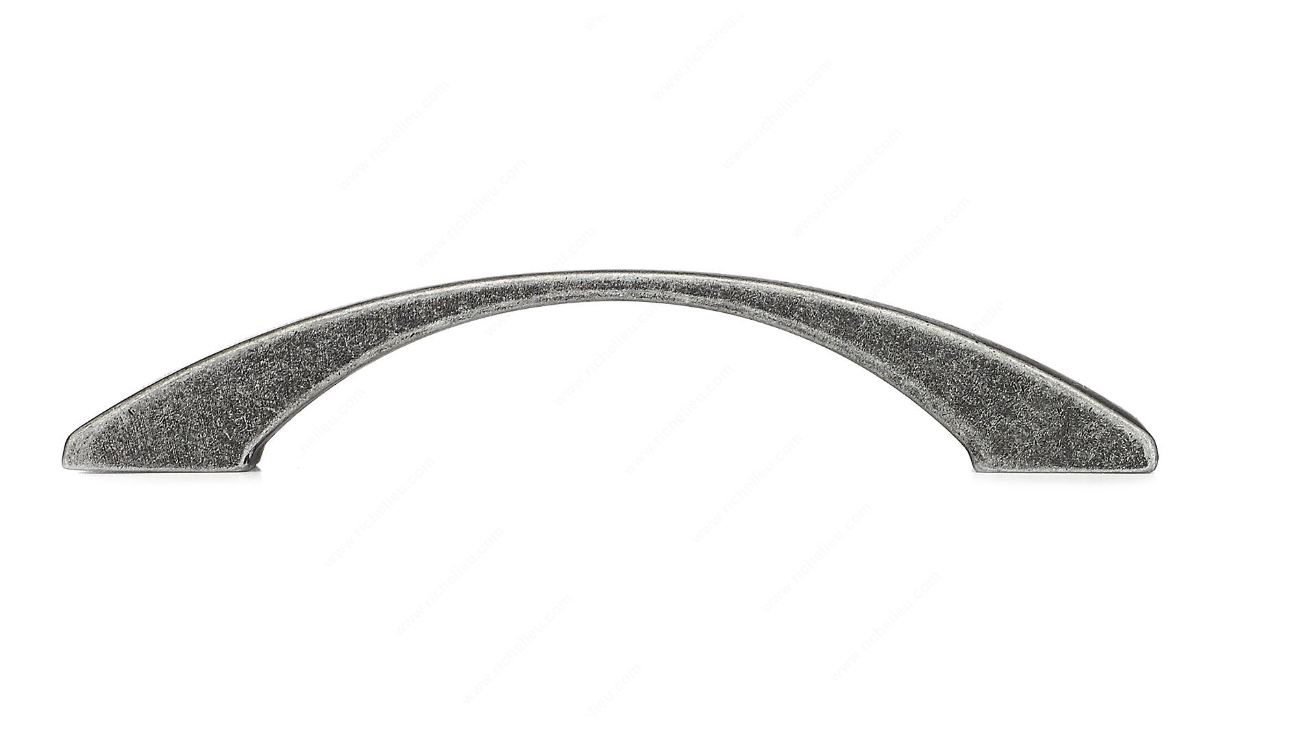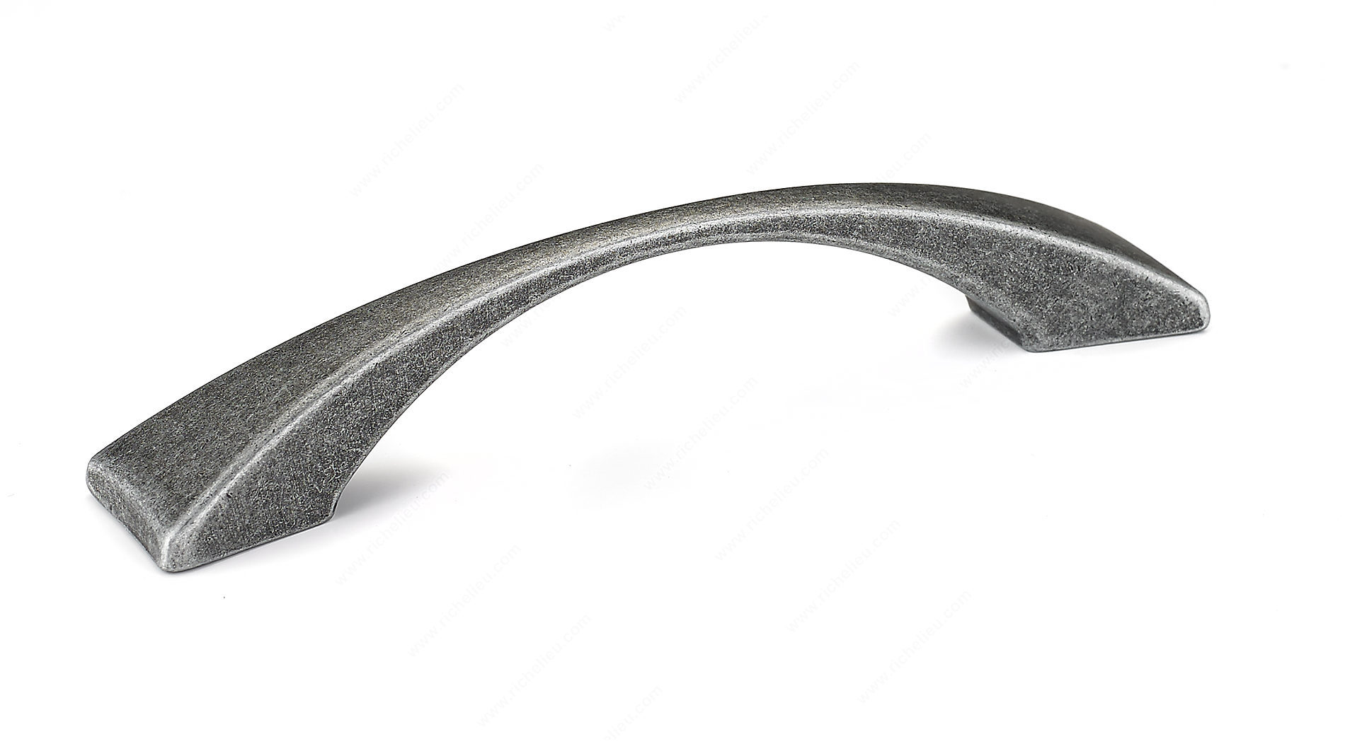 Richelieu BP391371903 Traditional Metal Pull - 3913 features a classic design characterized by its elegant sweeping arch and flared ends, making it an ideal choice for enhancing a variety of furniture styles. Crafted from durable Zamac material, this pull is not only aesthetically pleasing but also built to withstand the rigors of everyday use. With an overall length of 4 31/32 inches and a center-to-center measurement of 3 25/32 inches, it fits seamlessly into most cabinetry and furniture applications. The antique iron finish, with its rich gray and chrome accents, adds a touch of sophistication, making it suitable for both traditional and contemporary interiors. The pull's projection of 31/32 inches ensures it is easy to grasp, while its width of 29/32 inches provides a comfortable grip. Each pull comes with the necessary 8/32 inch screws included for straightforward installation. Richelieu's commitment to quality ensures that this traditional pull will not only elevate your décor but also provide lasting functionality. Ideal for kitchen cabinets, dressers, or any furniture needing a classic accent, the BP391371903 is a versatile addition to any project.