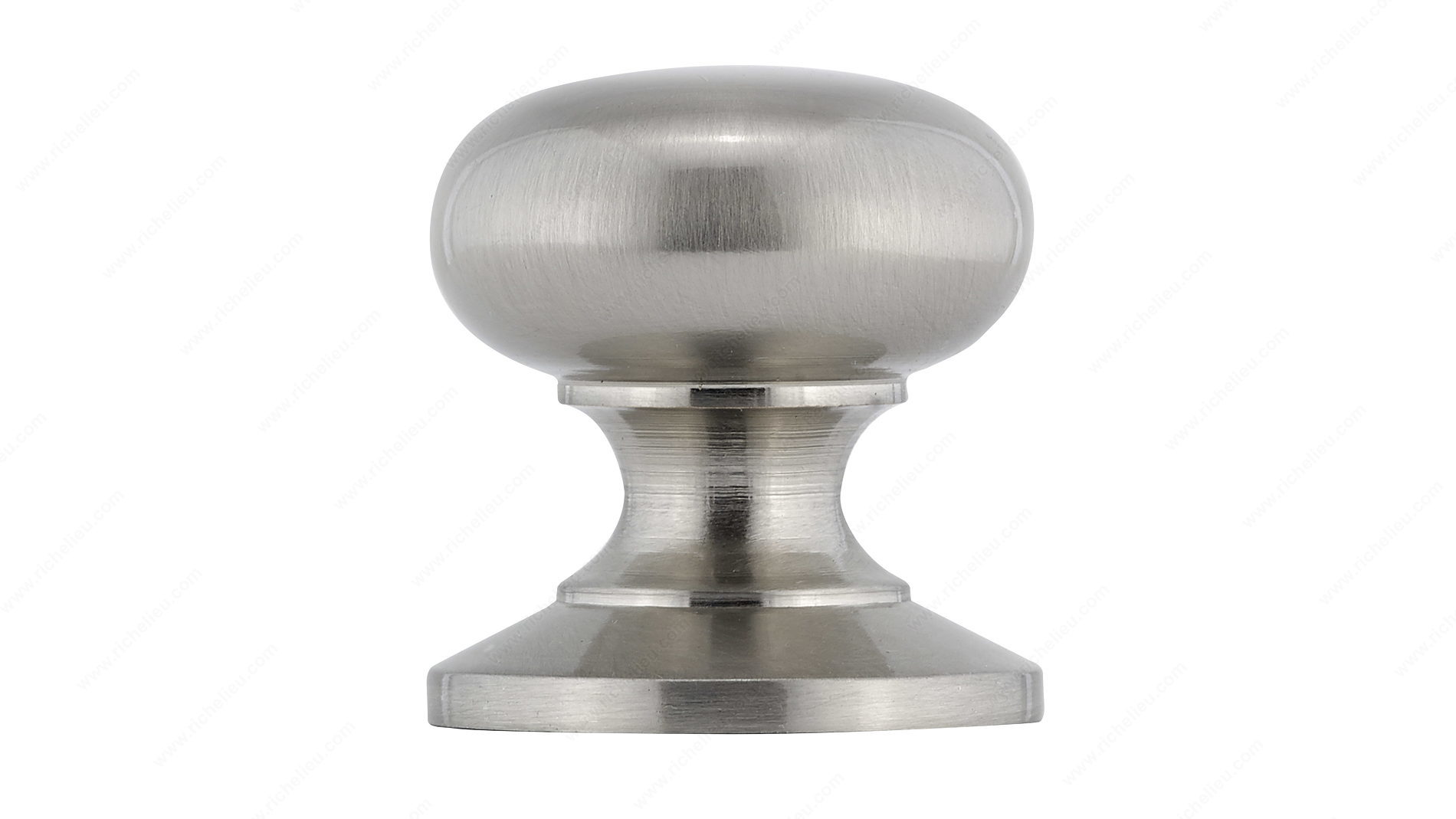 Richelieu BP39313195 Traditional Brass Knob - 3931 adds a timeless elegance to your kitchen or bathroom décor. Crafted from high-quality brass, this mushroom-shaped knob features a brushed nickel finish that enhances its classic appeal while ensuring durability and longevity. With an overall diameter of 1 7/32 inches and a projection of 1 1/4 inches, it is perfectly sized for comfortable use while seamlessly fitting into various design schemes. The combination of gray and chrome colors provides a sophisticated contrast that complements both modern and traditional settings. Designed with a traditional style in mind, this knob is an ideal choice for those looking to enhance their cabinetry or furniture with a touch of refinement. The included 8/32 inch screw ensures a hassle-free installation process, making it easy for homeowners and professionals alike to upgrade their spaces. Whether you are renovating your home or working on a new build, the Richelieu BP39313195 knob is a versatile choice that combines functionality and aesthetic appeal. Elevate your interiors with this exquisite knob that reflects quality craftsmanship and timeless design. Experience the difference that Richelieu brings to your projects.