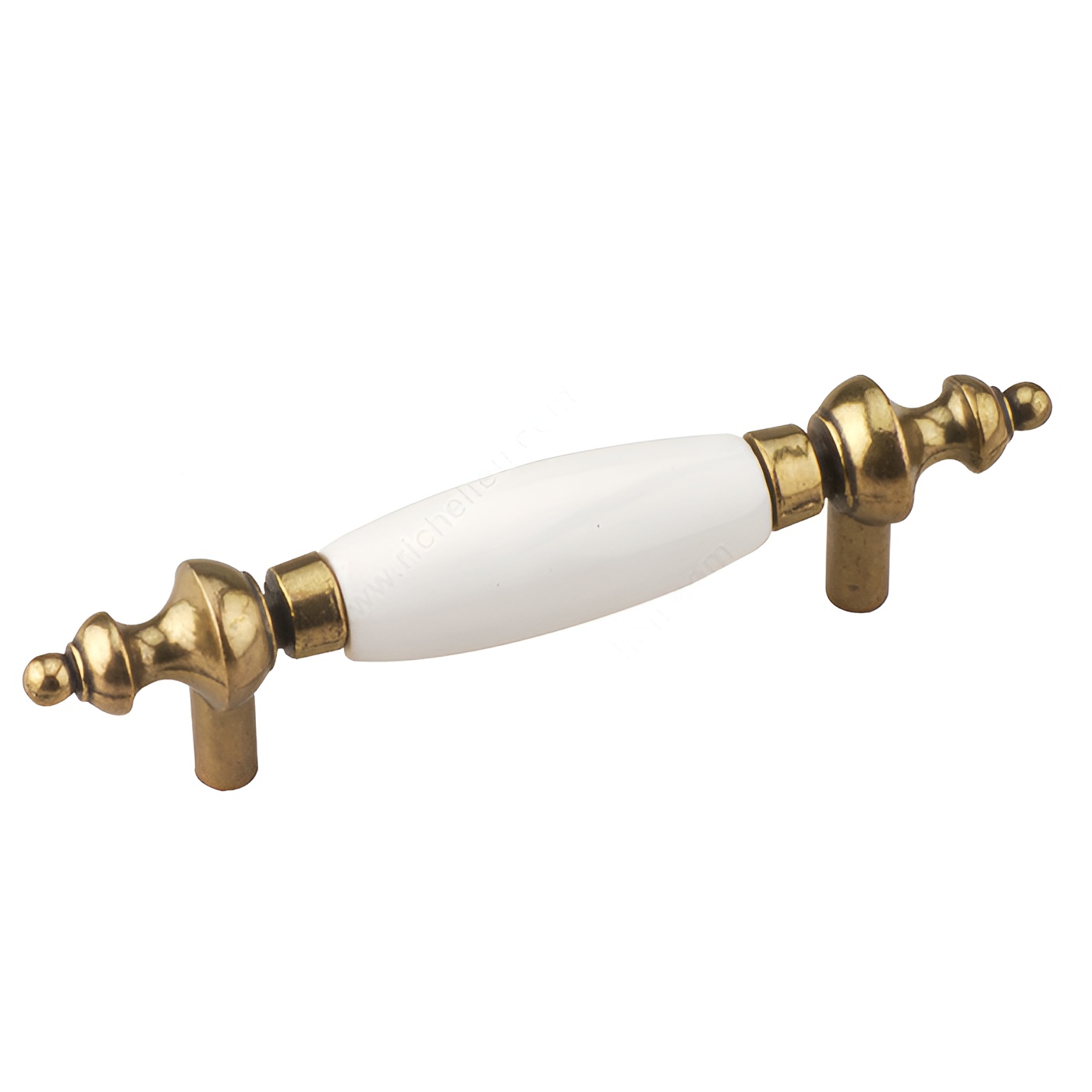 Richelieu BP415AE30 Traditional Metal and Ceramic Pull - 415A elevates your cabinetry with a refined, classic design. This exquisite handle combines a vintage aesthetic with modern functionality, featuring an elegant antique English finish that beautifully complements its striking ceramic center available in white, yellow, and brass colors. Measuring 4 13/16 inches in overall length and with a center-to-center spacing of 3 inches, this pull is designed to fit seamlessly into various cabinet styles. The base diameter is 9/32 inches, while the overall projection of 1 7/32 inches ensures a comfortable grip. Crafted from durable metal and ceramic, this pull is built to withstand daily use without sacrificing style. Ideal for traditional or country-style interiors, the BP415AE30 adds a touch of sophistication to kitchens, bathrooms, or any cabinetry in need of an upgrade. Each pull comes with an included 8/32 inch screw for easy installation, allowing you to enhance your space effortlessly. Whether you're a building professional or a discerning homeowner, this pull is a perfect choice to achieve that timeless look you desire.