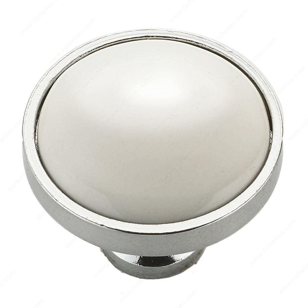 Richelieu BP441814030 Eclectic Metal or Brass and Ceramic Knob - 4418 adds a sophisticated touch to your drawer fronts with its timeless design. This classic knob combines a vintage aesthetic with modern materials, making it an ideal choice for enhancing both traditional and contemporary spaces. The knob features a stylish gray and chrome finish alongside a crisp white option, effortlessly complementing various décor styles. Measuring 1 1/4 inches in diameter, this knob is perfectly sized for comfortable grip and functionality. Its projection of 31/32 inches ensures it stands out without being intrusive. Crafted from durable metal and ceramic, this knob promises longevity and resilience, making it suitable for everyday use. The eclectic style of the BP441814030 is further highlighted by its porcelain and ceramic construction, adding an unexpected element of charm to your cabinetry. Each knob comes with an 8/32 inch screw included, simplifying installation. Whether you’re upgrading kitchen cabinets or refreshing a furniture piece, this Richelieu knob is a delightful choice that delivers both style and practicality. Elevate your spaces with this eye-catching hardware that showcases a blend of elegance and functionality.