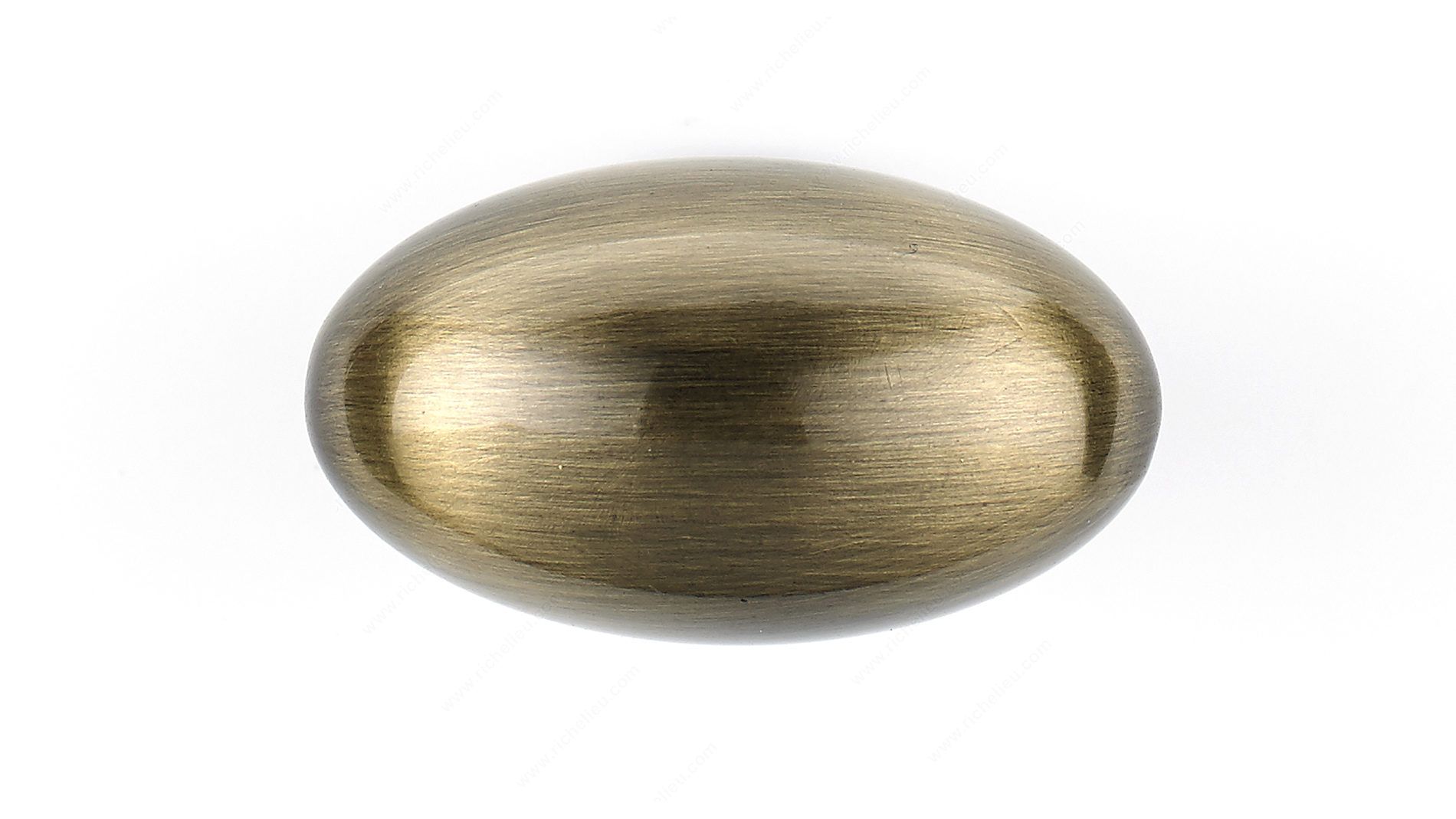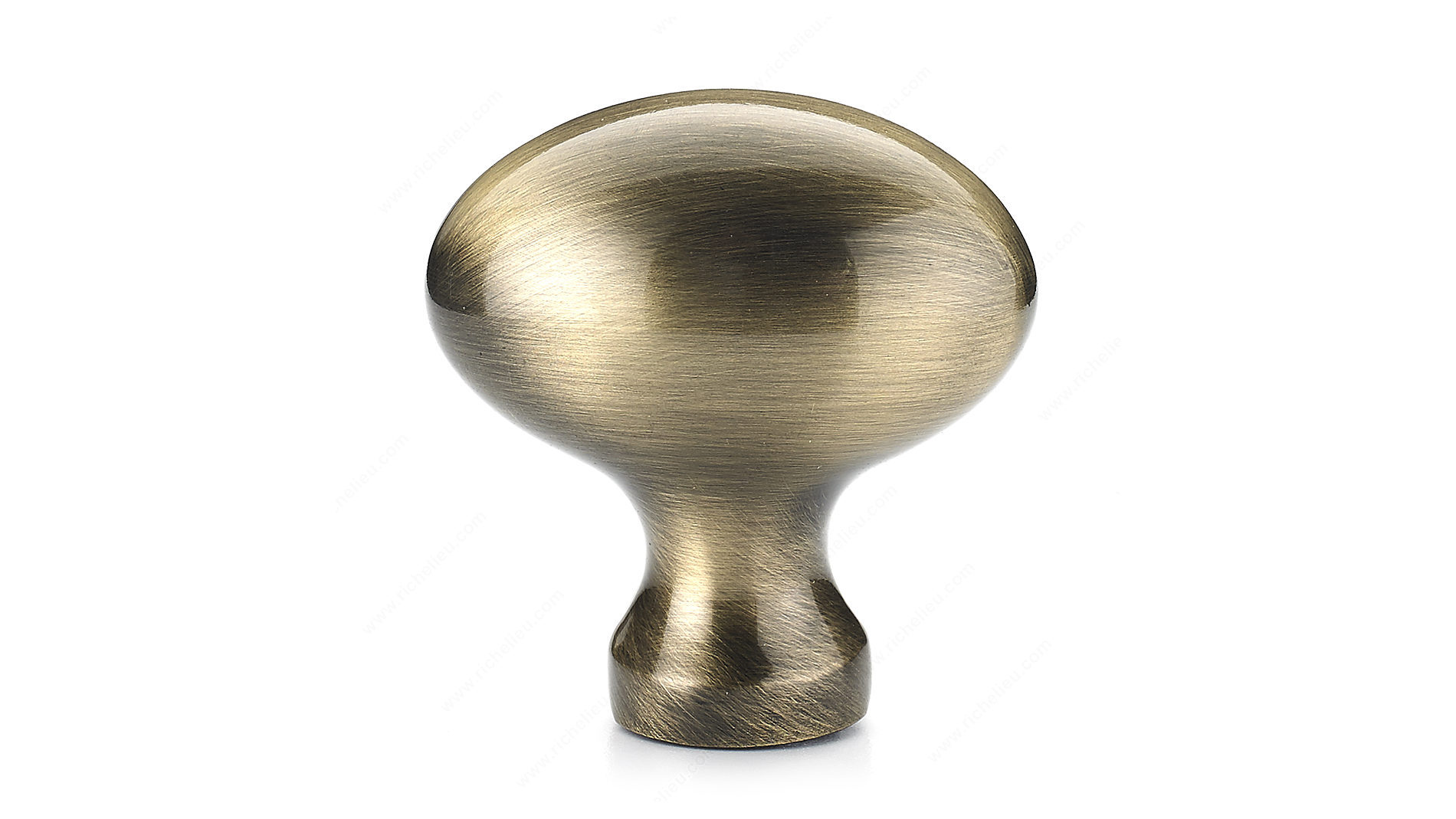 Richelieu BP444340AE Traditional Metal Knob - 4443 embodies classic elegance with its thoughtfully designed oval shape and slightly flared base, making it an excellent choice for enhancing the aesthetic of furniture and cabinets. Crafted from durable zamak, this knob not only looks appealing but also offers lasting functionality, ensuring it withstands everyday use. Finished in Antique English, the warm yellow and brass tones of this knob add a touch of vintage charm to any interior décor. Measuring 1 9/16 inches in length, 7/8 inches in width, and featuring a projection of 1 21/32 inches, it provides a comfortable grip while remaining stylishly unobtrusive. The traditional design seamlessly complements various styles, from rustic to contemporary. Included with the knob is a screw with a size of 8/32 inches, ensuring a hassle-free installation process. Richelieu’s commitment to quality and design is evident in this model, making it an ideal choice for both building professionals and discerning homeowners looking to elevate their space. Whether you are renovating a kitchen or updating cabinetry, the BP444340AE knob offers the perfect blend of form and function, marrying practicality with timeless appeal.