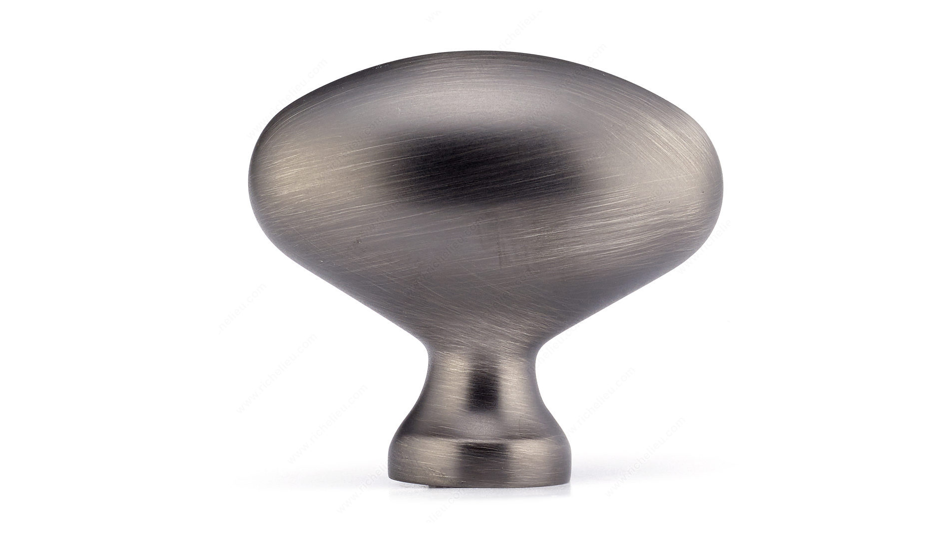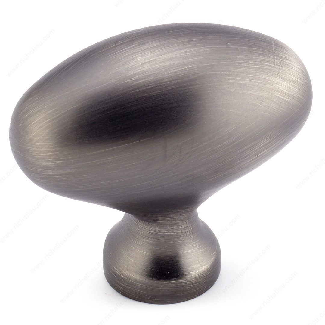 Richelieu BP444350143 Traditional Metal Knob - 4443 offers a timeless design, perfectly suited for enhancing both furniture and cabinetry. With its elegant oval shape and slightly flared base, this knob seamlessly blends functionality with classic aesthetics. Crafted from durable zamak, it promises longevity while maintaining a refined appearance. The knob features a stunning antique nickel finish that adds a touch of sophistication, making it an ideal choice for traditional and contemporary settings alike. Measuring 1 31/32 inches in length, 1 3/32 inches in width, and projecting 1 25/32 inches, it is designed to fit comfortably in hand, providing ease of use. Available in a stylish gray and chrome color scheme, this knob stands out while coordinating effortlessly with various interior themes. Each unit comes with an 8/32 inch screw, ensuring straightforward installation. Richelieu’s attention to detail ensures that this knob not only serves its purpose but also enhances the overall aesthetic of any space. Whether you are a building professional or a knowledgeable homeowner, the Richelieu BP444350143 Traditional Metal Knob is a reliable choice that combines durability, style, and ease of installation. Upgrade your cabinetry today with this exceptional piece.