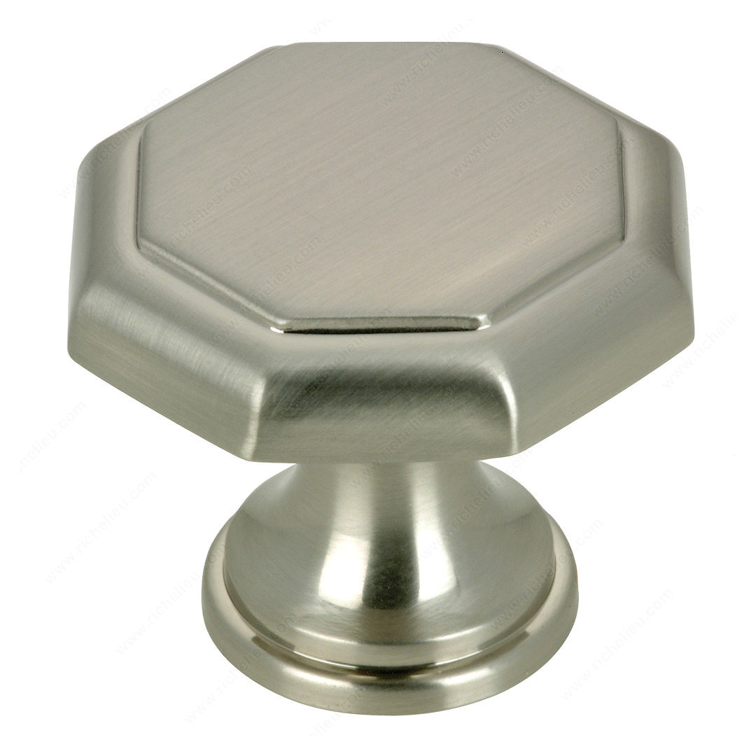 Richelieu BP44630195 Traditional Metal Knob - 4463 enhances your kitchen or bathroom with its timeless elegance. This knob features simple lines and sophisticated details, embodying a classic design that complements various décors. With an overall diameter of 1 3/16 inches and a projection of 1 1/32 inches, it strikes the perfect balance between functionality and style. Crafted from durable metal, the knob showcases a brushed nickel finish that adds a touch of sophistication while ensuring long-lasting use. The gray and chrome color palette provides versatility, making it an ideal fit for both contemporary and traditional spaces. Each knob comes with an 8/32 inch screw included, streamlining the installation process for building professionals and DIY enthusiasts alike. Richelieu’s Village model is not just aesthetically pleasing; it is built to withstand everyday use, ensuring that it remains a standout feature in your home for years to come. Whether you're upgrading cabinetry or adding finishing touches to your renovation project, this traditional metal knob is an exceptional choice. Elevate your interior design with the refinement of Richelieu's BP44630195 Traditional Metal Knob.