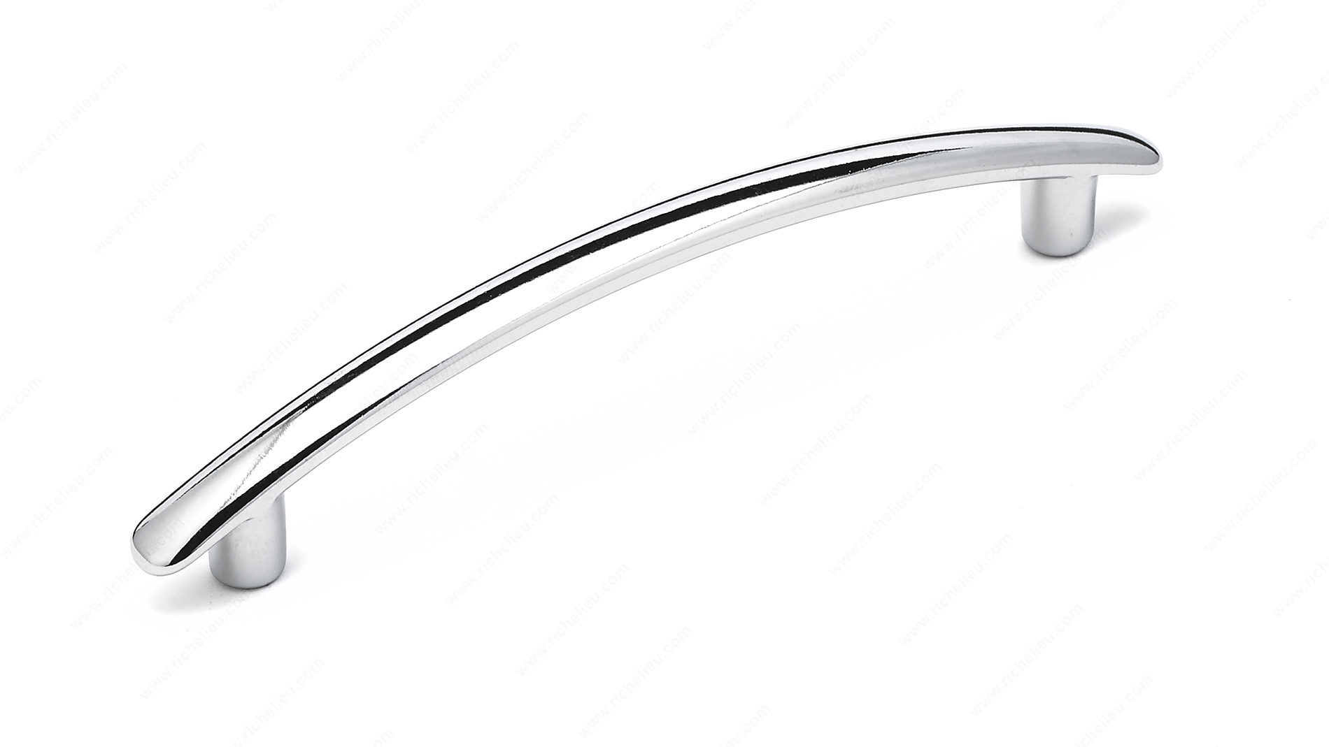 Richelieu BP491140 Modern Metal Pull - 4911 enhances the aesthetic appeal of your kitchen and bathroom cabinets with its sleek, modern design. This bow pull features an elegant arched shape that adds a stylish touch, perfectly suited for contemporary spaces. The pull is finished in a sophisticated chrome, complemented by a gray accent, ensuring it stands out while seamlessly integrating into your decor. Measuring 4 23/32 inches in length with a center-to-center distance of 3 25/32 inches, this pull is designed for optimal functionality and comfort. Crafted from durable zamak, it provides a sturdy grip while maintaining its refined appearance over time. The overall dimensions include a projection of 15/16 inch and a width of 5/16 inch, making it an ideal choice for both cabinets and drawers. Installation is straightforward, as M4 screws are included for your convenience. Packaged in a practical bag format, the Richelieu BP491140 is ready to ship via UPS, ensuring your renovation or build project stays on schedule. Upgrade your cabinetry with this stylish pull, combining modern design with lasting quality.