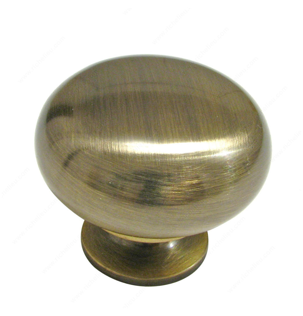 Richelieu BP492338AE Traditional Metal Knob - 4923 embodies classic elegance with its timeless mushroom shape. Crafted from durable zamak, this knob combines strength with an attractive aesthetic, making it an ideal addition to various furniture styles and décor themes. The antique English finish adds a touch of sophistication, enhancing the overall look of cabinets, dressers, and drawers. Measuring 1 1/2 inches in diameter and projecting 1 1/4 inches, the knob is perfectly sized for comfortable use while maintaining a discreet profile. Its warm yellow and brass tones seamlessly blend into both modern and traditional interiors, ensuring it complements your design vision. The knob's traditional style is perfect for those who appreciate understated elegance and quality craftsmanship. Installation is straightforward, as it comes with an 8/32 inch screw included for your convenience. Whether you're renovating or crafting new furniture, the Richelieu BP492338AE knob serves as a functional and stylish hardware solution. With its classic design and reliable materials, this knob is sure to enhance your furniture for years to come. Choose this knob for a reliable accent that marries form and function beautifully.