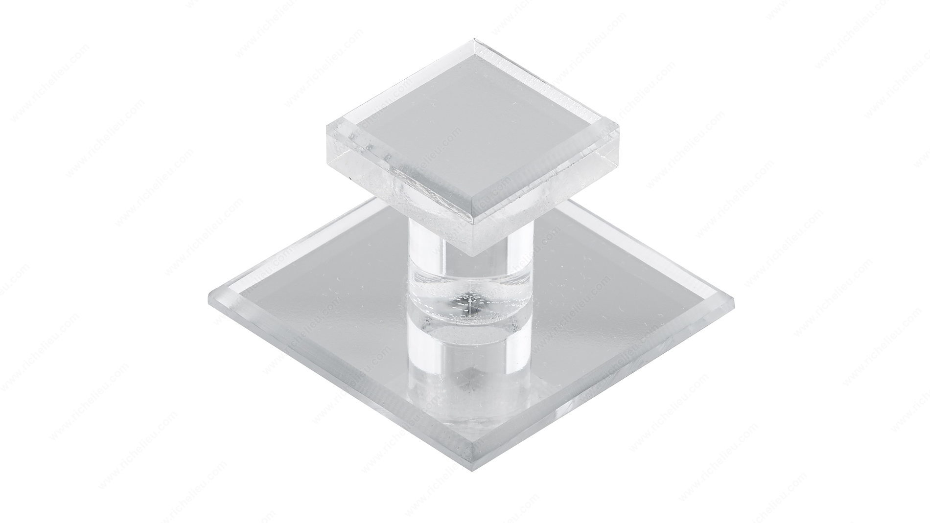 Richelieu BP50011 Modern Acrylic Knob - 500 enhances your furniture and home decor with its elegant square design, perfect for those seeking a contemporary touch. This knob features a clear, transparent finish with a mirror effect, seamlessly blending with various styles and settings. Its sleek appearance not only elevates aesthetics but also offers practical functionality. Measuring 1 25/32 inches in both length and width, this knob is designed to fit comfortably in hand while providing a modern look to glass door and mirror applications. Constructed from durable acrylic, it boasts a load capacity of 2.2 pounds, making it suitable for a range of uses without compromising performance. The self-adhesive backing simplifies installation, allowing you to easily attach the knob to glass surfaces without the need for additional hardware or tools. Whether you're upgrading existing cabinets or adding a finishing touch to new furnishings, the Richelieu BP50011 is an ideal choice for both building professionals and discerning homeowners. With the convenience of shipping via UPS, this stylish knob is a hassle-free addition to your next project. Embrace modern design with this exquisite knob that combines form and function effortlessly.