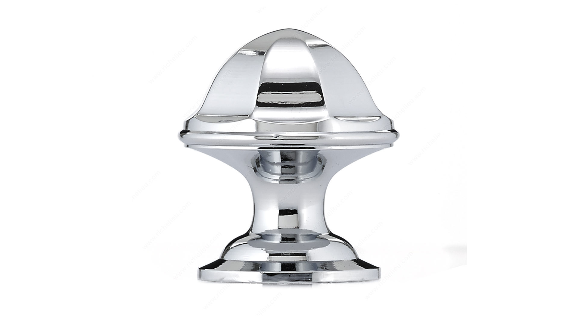 Richelieu BP50128140 Modern Brass Knob - 501 offers a sophisticated touch to any interior space with its unique octagonal facets and a sleek round base. Crafted from high-quality brass, this knob is designed to enhance your décor while ensuring durability and longevity. The modern style complements a variety of design themes, making it an ideal choice for both contemporary and traditional settings. Measuring 1 3/32 inches in diameter and projecting 1 3/16 inches, this knob provides a comfortable grip while maintaining an elegant profile. The chrome finish adds a striking contrast, enhancing its overall aesthetic appeal and making it a stylish focal point in your cabinetry or furniture. Additionally, the knob is easy to install, as it comes with an included 8/32 inch screw, allowing for a hassle-free upgrade to your spaces. Designed for versatility, the BP50128140 can seamlessly fit into kitchen cabinets, bathroom vanities, or any furniture piece that needs a refined accent. With its ability to ship via UPS, you can conveniently have this stunning knob delivered right to your door. Elevate your home’s style effortlessly with the Richelieu Modern Brass Knob – a perfect blend of functionality and elegance.