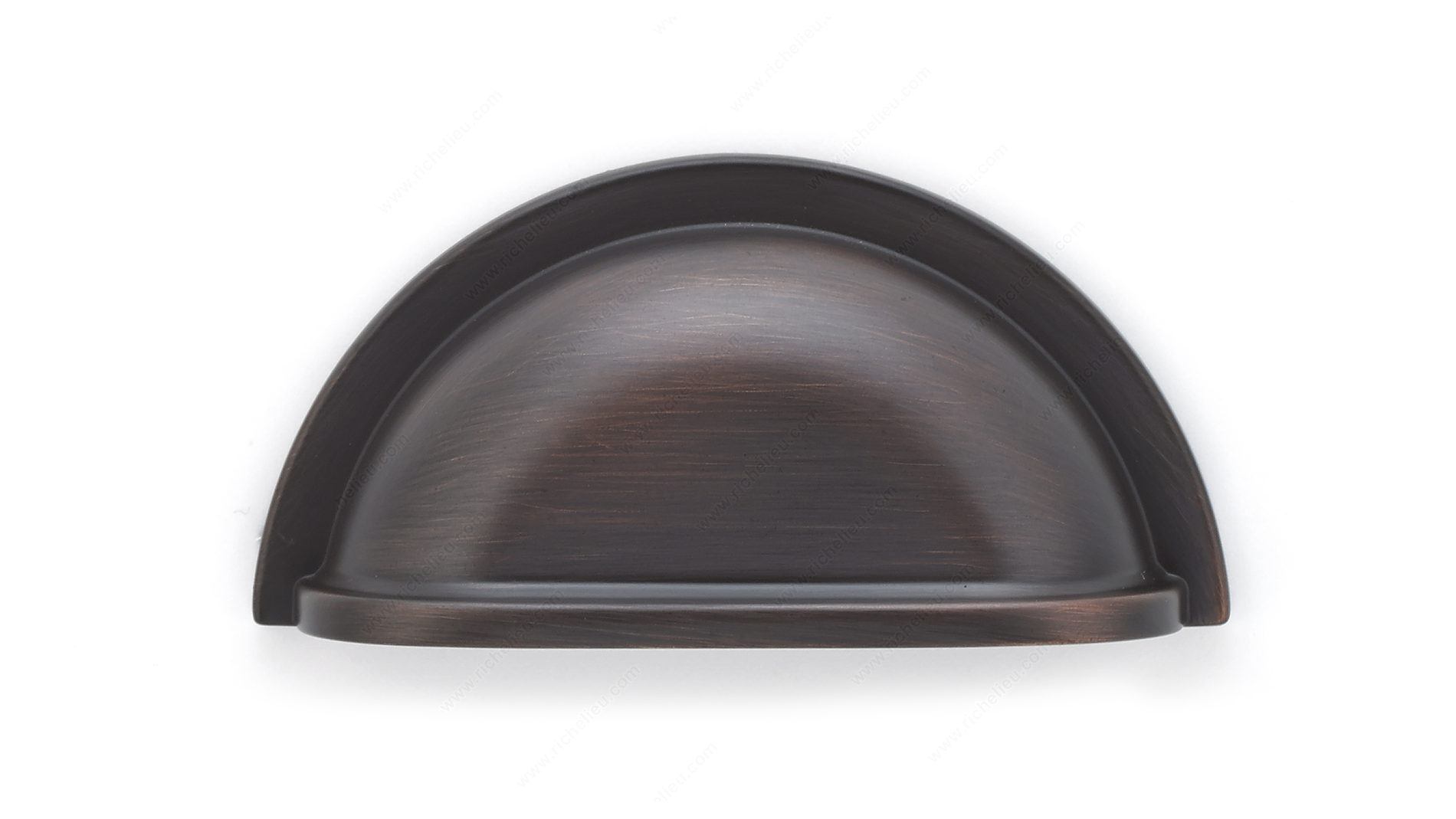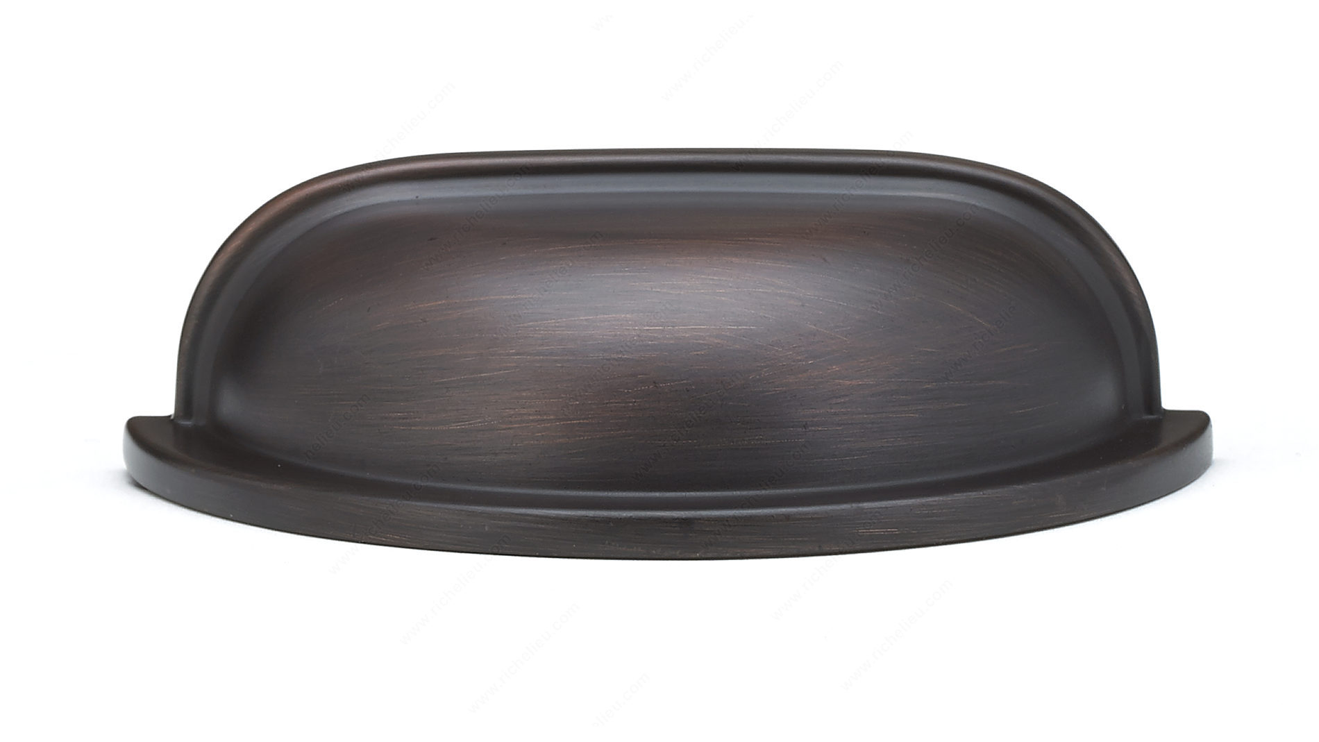 Richelieu BP50388BORB Traditional Metal Pull - 5038 offers a timeless touch to your home décor with its classic cup pull design. Crafted from durable metal, this pull features a brushed oil-rubbed bronze finish that beautifully blends brown and bronze tones, making it an elegant addition to various cabinetry styles. With a center-to-center measurement of 3 inches, it provides a comfortable grip while enhancing accessibility. The overall dimensions of 3 15/32 inches in length, 1 11/16 inches in width, and a projection of 1 1/32 inches ensure a perfect fit for a range of drawer fronts and cabinet doors, while its traditional style complements both contemporary and vintage interiors. Installation is straightforward, as the Richelieu BP50388BORB includes 8/32 inch screws for your convenience. This classic pull not only enhances functionality but also elevates the aesthetic of your space with its discreet detailing. Whether you are renovating your kitchen, updating bathroom fixtures, or refreshing furniture, this versatile cup pull is designed to meet your needs while adding a touch of sophistication. Choose Richelieu for quality and style that lasts.