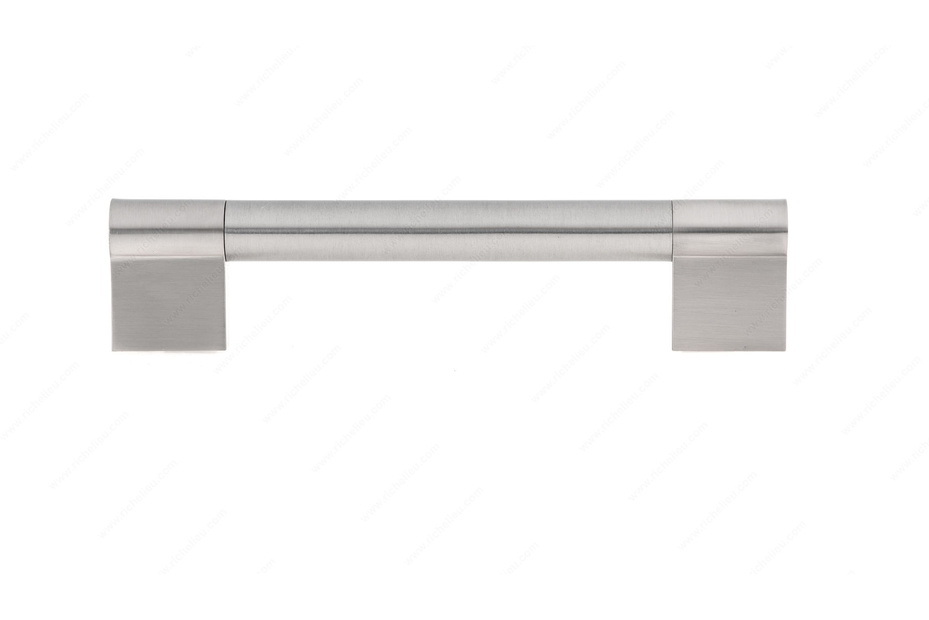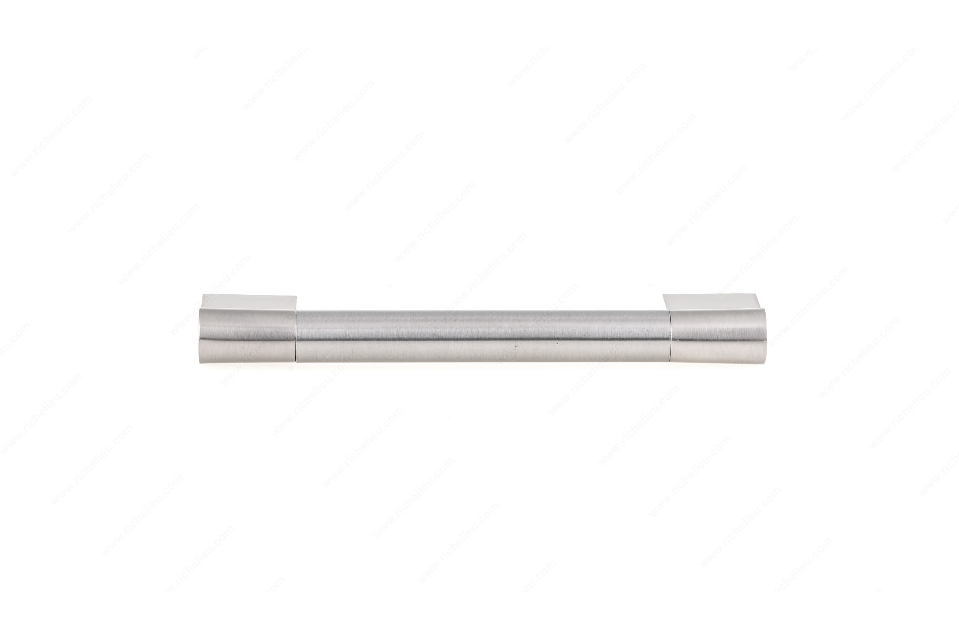 Richelieu BP527128195 Modern Stainless Steel Pull - 527 offers a striking blend of contemporary design and functional elegance, making it an ideal addition to any kitchen or bathroom. Crafted from high-quality 201 stainless steel, this pull features a sleek tubular bar complemented by sturdy metal posts, delivering both style and durability. The brushed nickel finish adds a refined touch, enhancing the overall aesthetic while ensuring longevity. With a center-to-center measurement of 5 1/32 inches and overall dimensions of 5 9/16 inches in length, this pull is perfectly sized for various cabinetry. The pull's overall width and diameter are both 1/2 inch, while the projection extends to 1 1/4 inches, providing a comfortable grip for daily use. Designed in a modern style, it harmonizes effortlessly with diverse decor themes, from minimalist to eclectic. Included with the pull are 8/32 inch screws, ensuring a straightforward installation process. This versatile hardware is part of the complete 527 collection, allowing for cohesive design across your spaces. The Richelieu BP527128195 pull is not just a functional accessory; it’s a statement piece that elevates your interiors with sophistication and style.
