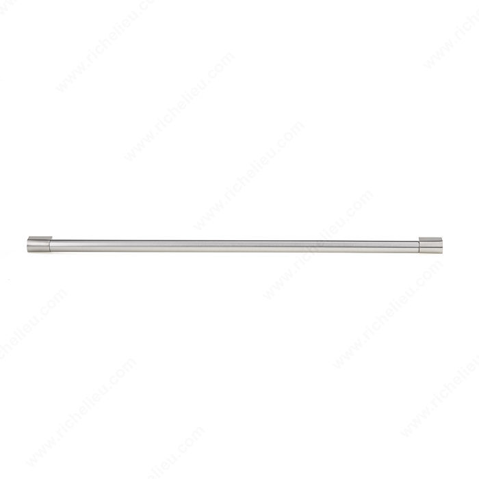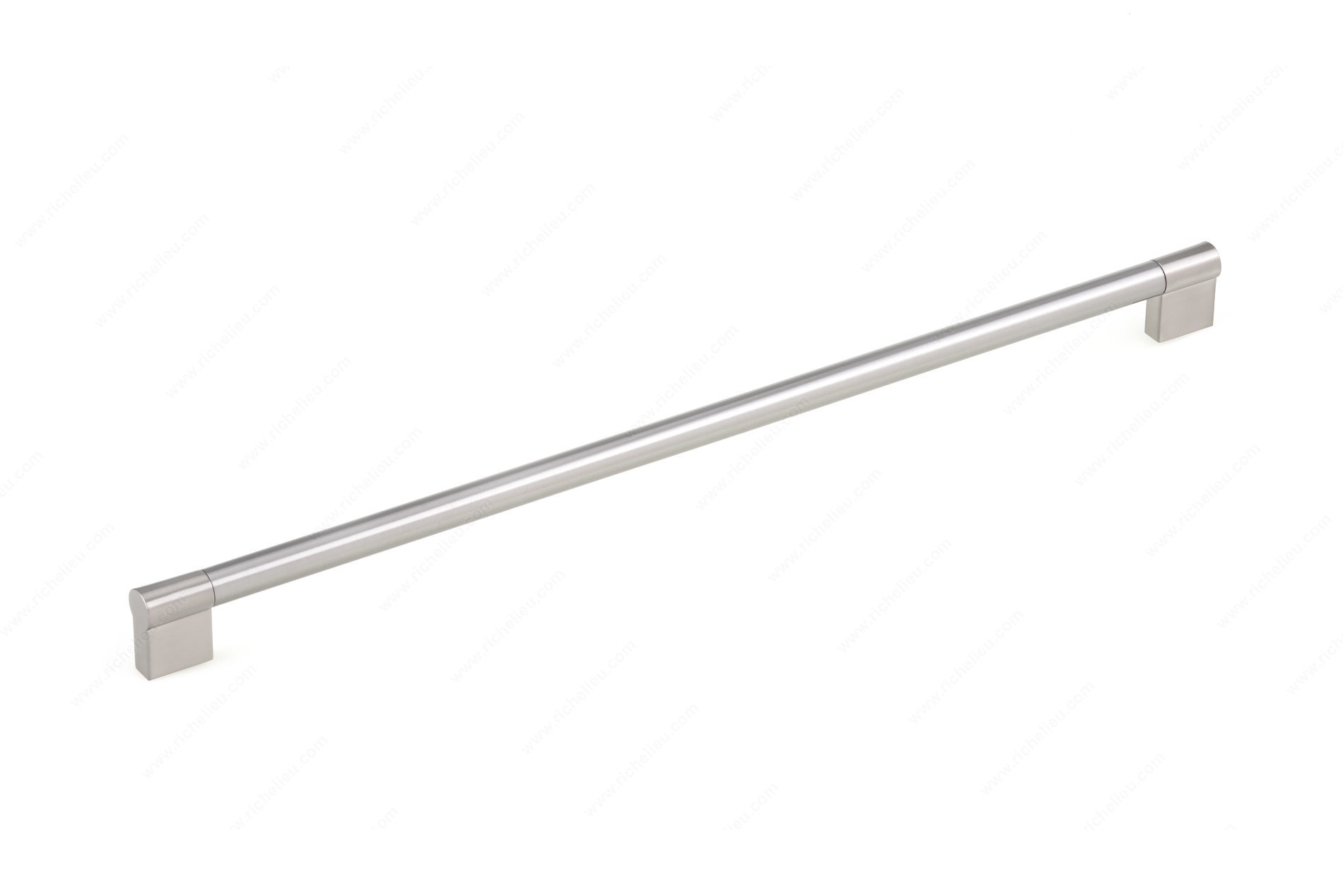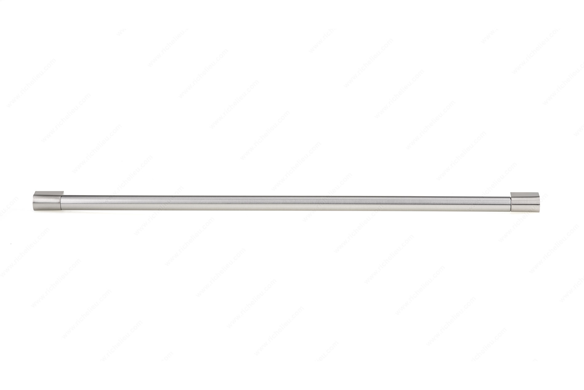 Richelieu BP527416195 Modern Stainless Steel Pull - 527 showcases a sleek and stylish design that effortlessly enhances any kitchen or bathroom setting. Crafted from high-quality 201 stainless steel, this pull features a tubular bar complemented by robust metal posts, adding a contemporary touch to your cabinetry. The brushed nickel finish not only provides a sophisticated gray and chrome aesthetic but also ensures durability and resistance to wear. With an overall length of 16 7/8 inches and a center-to-center measurement of 16 3/8 inches, this pull is designed for easy installation and a comfortable grip. The overall diameter of 1/2 inch and a projection of 1 1/4 inches make it a versatile choice that fits seamlessly with various cabinet styles. Included with the pull are 8/32 inch screws, simplifying the installation process. Part of the complete collection by model 527, this modern pull is perfect for those looking to elevate their interior design while maintaining functionality. Whether you’re updating your home or working on a professional project, the Richelieu BP527416195 pull is an excellent choice that combines style, quality, and practicality. Enhance your space today with this elegant hardware solution.
