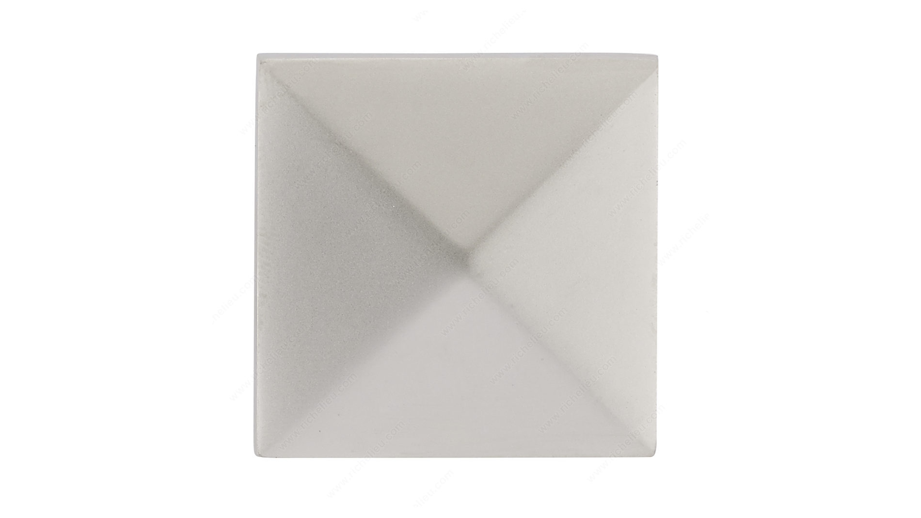 Richelieu BP53082184 Modern Metal Knob - 5308 elevates your home design with its sleek, streamlined aesthetic. This modern knob features a unique raised pyramid shape, making it an ideal choice for various décor styles, from contemporary to transitional. Crafted from durable metal, it guarantees long-lasting performance while adding a touch of sophistication to your furniture and cabinetry. With an overall dimension of 1 1/4 inches in length and width, and a projection of 7/8 inches, this knob fits comfortably in hand, providing ease of use. The matte nickel finish in a stylish gray and chrome combination enhances its modern appeal, ensuring it complements your interior seamlessly. Each knob arrives in a convenient bag, complete with 8/32 inch screws for effortless installation. The Richelieu BP53082184 is not just a functional hardware piece; it’s a design statement that enhances the aesthetic value of your spaces. Whether you're upgrading cabinets in the kitchen or refreshing furniture throughout your home, this knob serves as the perfect finishing touch. Choose Richelieu for quality and style that resonates with your design vision.