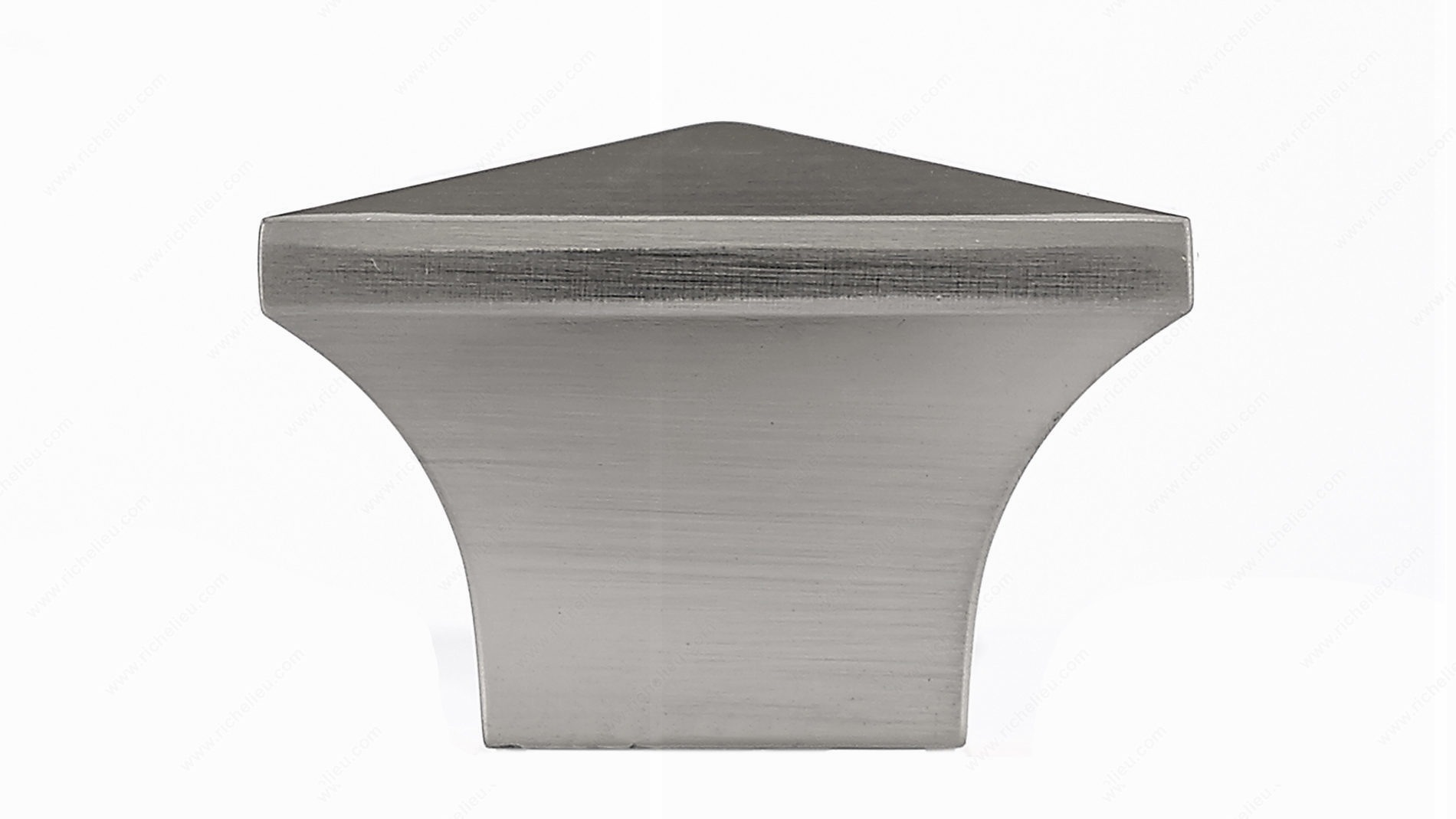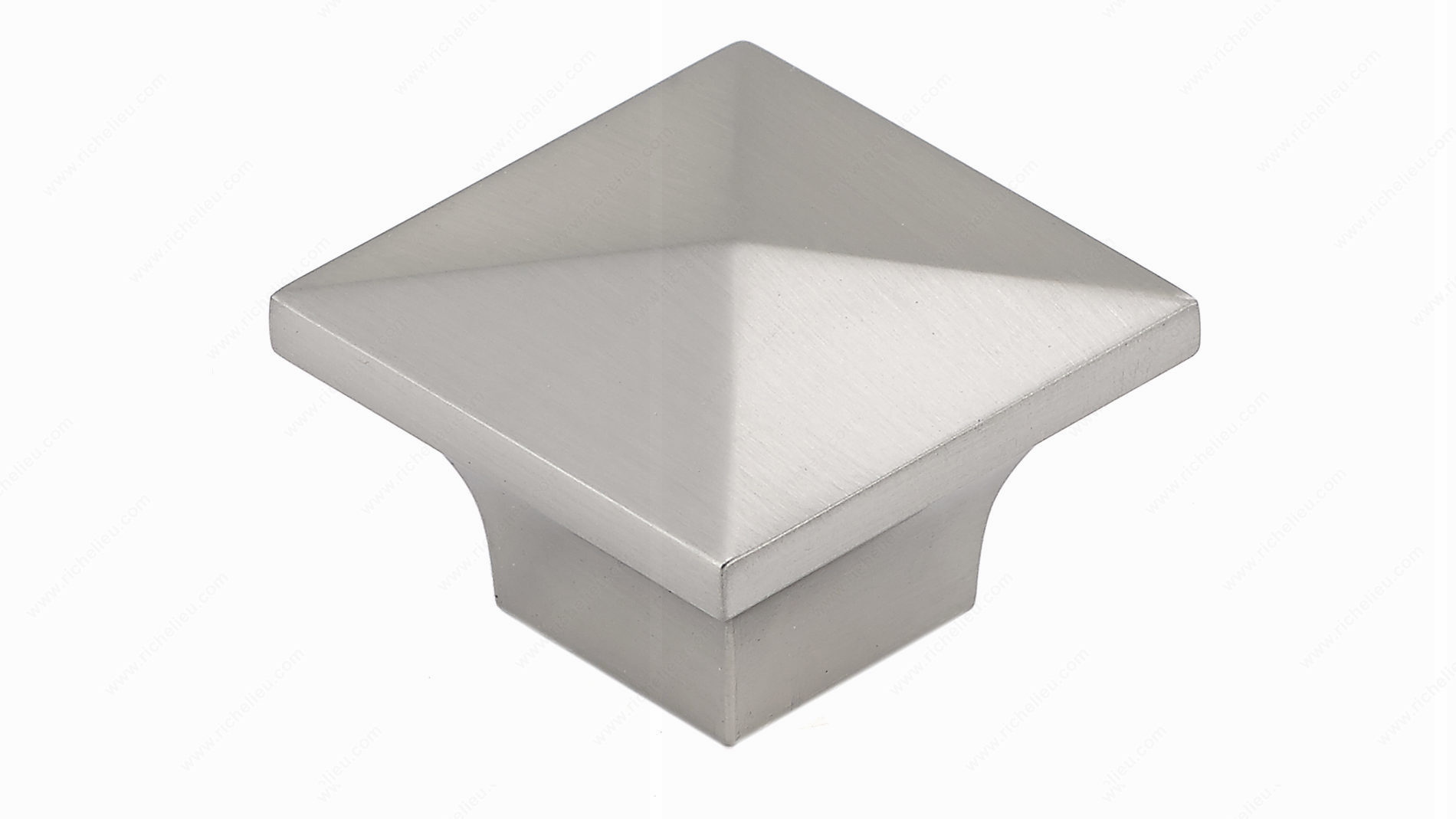 Richelieu BP53082195 Modern Metal Knob - 5308 enhances your home design with its sleek, contemporary aesthetic. This knob features a raised pyramid shape that effortlessly complements a variety of décor styles, making it an ideal choice for both furniture and cabinetry. Crafted from durable metal, it combines functionality with a modern flair, ensuring longevity and reliability. With an overall length and width of 1 1/4 inches, and a projection of 7/8 inches, this knob is perfectly sized for comfortable grip and easy operation. Its brushed nickel finish in a sophisticated gray and chrome color adds a touch of elegance, while also ensuring easy maintenance. Included with the knob is an 8/32 inch screw, making installation straightforward and hassle-free. Packaged conveniently in a bag, the Richelieu BP53082195 is ready to enhance your projects right out of the box. Ideal for building professionals and discerning homeowners alike, this modern knob not only serves a practical purpose but also elevates the overall look of your spaces. Upgrade your cabinetry and furniture with this stylish hardware solution that reflects your commitment to quality and design.