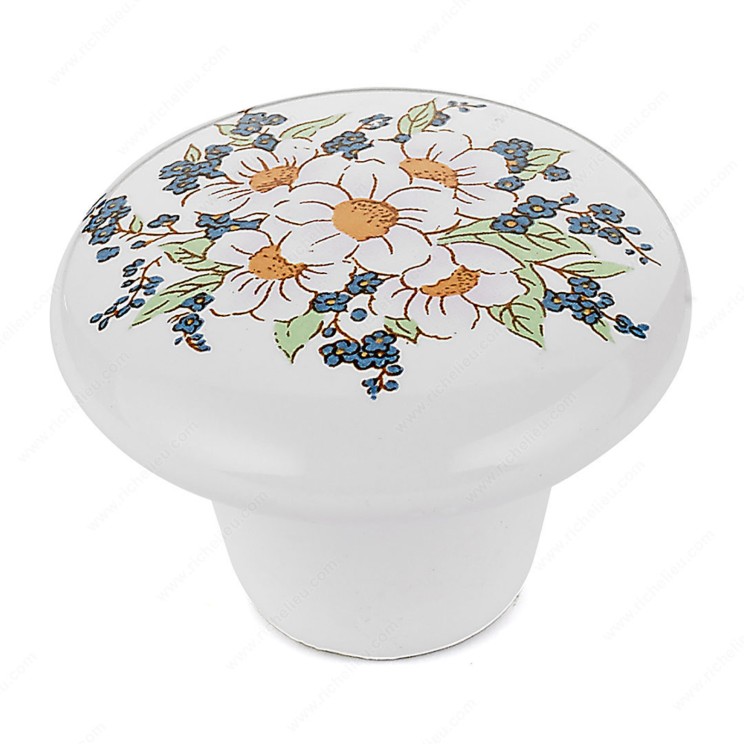 Richelieu BP600661 Eclectic Ceramic Knob - 6006 offers a perfect blend of charm and functionality for your home decor. This round knob, measuring 1 1/2 inches in diameter, showcases a delightful floral bouquet motif that brings a touch of country warmth to any cabinet or drawer. Crafted from high-quality ceramic, the knob not only enhances aesthetic appeal but also ensures durability. With a projection of 31/32 inches, this eclectic-style knob is designed for comfortable gripping and ease of use. Its vibrant flower bouquet finish (Finish Number: 61) adds a unique flair that complements various design themes, making it an ideal choice for both traditional and modern interiors. Included with the knob is an 8/32 inch screw, facilitating straightforward installation. Richelieu, recognized for its commitment to quality, ensures that this knob will stand the test of time while elevating the overall look of your spaces. Shipping is convenient, as the product can be dispatched via UPS. Whether you’re a building professional or a knowledgeable homeowner, the Richelieu BP600661 is a stylish addition that effortlessly enhances your decor while offering reliable functionality.