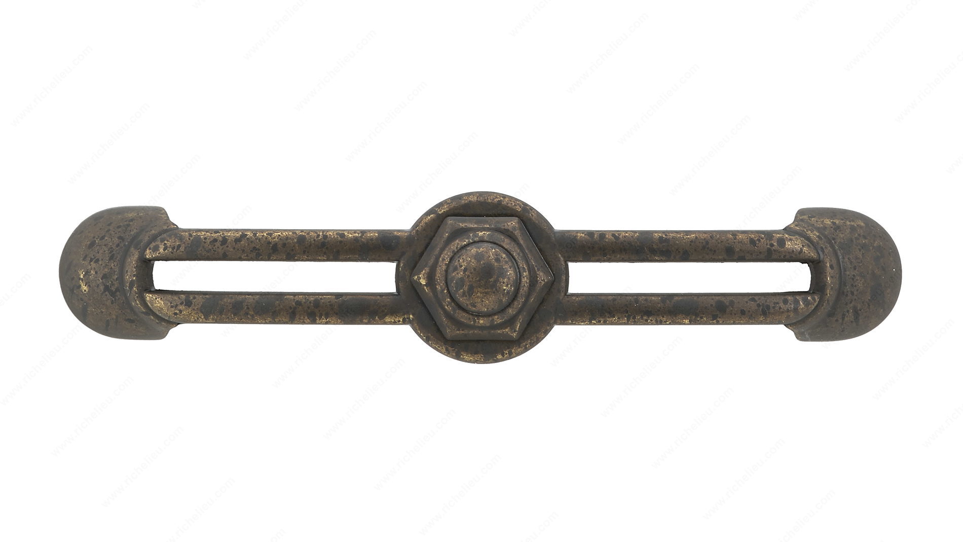 Richelieu BP63896138 Traditional Metal Pull - 6389 adds a touch of opulence to your home décor, perfectly suited for enhancing the ambience of kitchens and bathrooms alike. This elegantly designed pull features a classic aesthetic, drawing inspiration from Art Deco influences that resonate with timeless sophistication. Measuring 4 3/4 inches in length and 3 25/32 inches center-to-center, this pull is crafted from durable metal, ensuring a long-lasting addition to your cabinetry. The stunning spotted bronze finish in brown and bronze tones creates a striking visual appeal, making it an eye-catching element in any space. With an overall width of 25/32 inches and a projection of 29/32 inches, it offers a comfortable grip while maintaining a sleek profile. Included with your purchase are M4 screws, simplifying installation and ensuring a secure fit. The Richelieu BP63896138 pull not only enhances functionality but also elevates the style quotient of your furnishings. Whether you're updating existing cabinets or designing a new space, this traditional metal pull is an excellent choice for those seeking both practicality and elegance. Experience the perfect blend of style and utility with Richelieu’s distinguished craftsmanship.