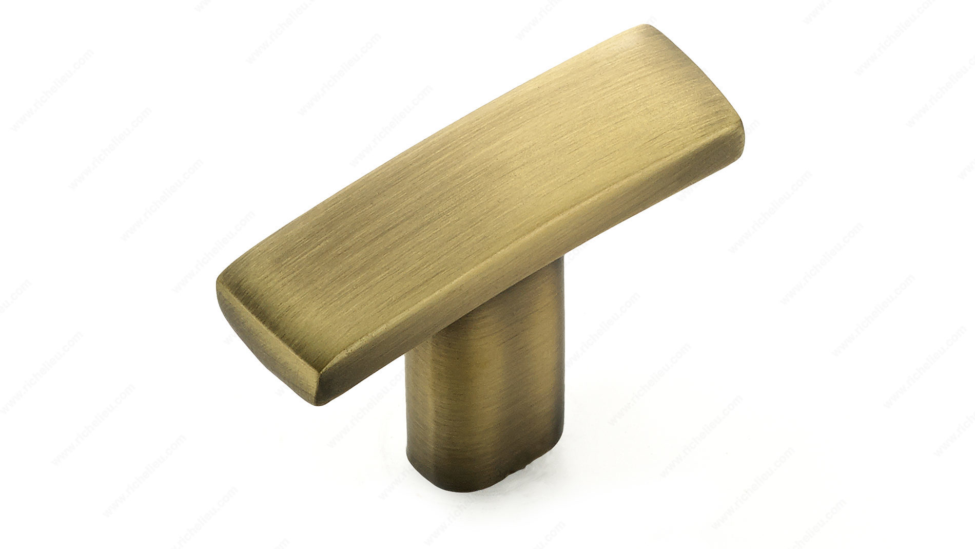 Richelieu BP65038AE Transitional Metal Knob - 650 enhances the elegance of your kitchen and bathroom cabinetry with its refined transitional design. Crafted from durable zamak, this knob boasts a slightly curved shape that creates a distinguished aesthetic and complements a variety of interior styles. Available in a striking yellow and brass color, the antique English finish adds a touch of sophistication and warmth to your home decor. Measuring 1 1/2 inches in length and 7/16 inches in width, this knob fits comfortably in your hand, while the 1 1/16-inch projection ensures ease of use. Installation is straightforward, as the knob comes with a pre-included 8/32 inch screw, allowing you to quickly enhance your cabinetry without hassle. Packaged conveniently in a bag, the Richelieu BP65038AE knob is designed to ship via UPS for your convenience. This versatile knob not only elevates the look of your cabinets but also offers practicality and durability, making it an ideal choice for both building professionals and discerning homeowners alike. Upgrade your interiors with the Richelieu BP65038AE and enjoy the perfect blend of style and function.