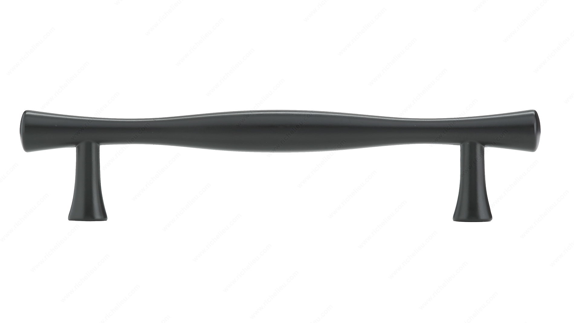 Richelieu BP7061900 Modern Metal Pull - 7061 combines sleek design with functional elegance, making it an ideal choice for enhancing your kitchen or bathroom décor. Crafted from durable zamak, this pull features a unique undulating form with flared ends, offering a contemporary touch that seamlessly integrates into modern interiors. Measuring 5 1/8 inches in length, with a center-to-center spacing of 3 25/32 inches, this pull is designed to fit standard cabinet configurations effortlessly. The matte black finish (Finish Number: 900) not only provides a sophisticated aesthetic but also ensures durability against everyday wear and tear. With an overall width of 13/32 inches and a projection of 1 3/32 inches, it offers a comfortable grip while maintaining a streamlined appearance. Installation is straightforward, as the pull comes with M4 screws included for your convenience. The Richelieu BP7061900 is perfect for those looking to add a modern flair to their spaces without compromising on quality or functionality. Whether you are a building professional or a discerning homeowner, this pull will elevate your cabinetry to new heights of style and sophistication.