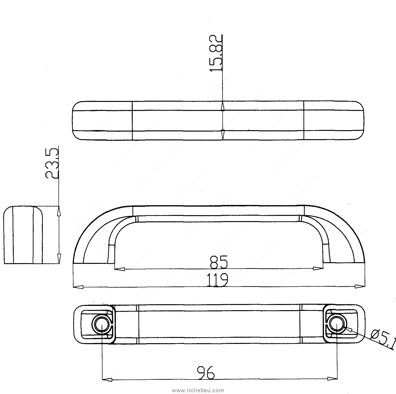 Richelieu BP74496140 Modern Plastic Pull - 7449 is a stylish addition to contemporary home designs, effortlessly combining functionality with a sleek aesthetic. The bow pull features a clean, arched design that enhances cabinet doors and drawers alike, providing a sophisticated look that pairs beautifully with modern interiors. With an overall length of 4 11/16 inches and a center-to-center measurement of 3 25/32 inches, this pull is designed for easy installation and comfortable grip. The chrome finish, complemented by a striking gray color, adds a touch of elegance while ensuring durability. Made from high-quality plastic, it is lightweight yet strong enough to withstand daily use. The pull's dimensions include a projection of 15/16 inches and a width of 5/8 inches, making it suitable for various applications in the home, including children's rooms and outdoor settings. Installation is simplified with included M4 screws, ensuring a secure fit. Richelieu BP74496140 is not just a hardware accessory; it’s a functional design element that elevates the style of your space. Ideal for builders and homeowners seeking modern solutions, this pull is ready to ship via UPS to enhance your projects without delay.