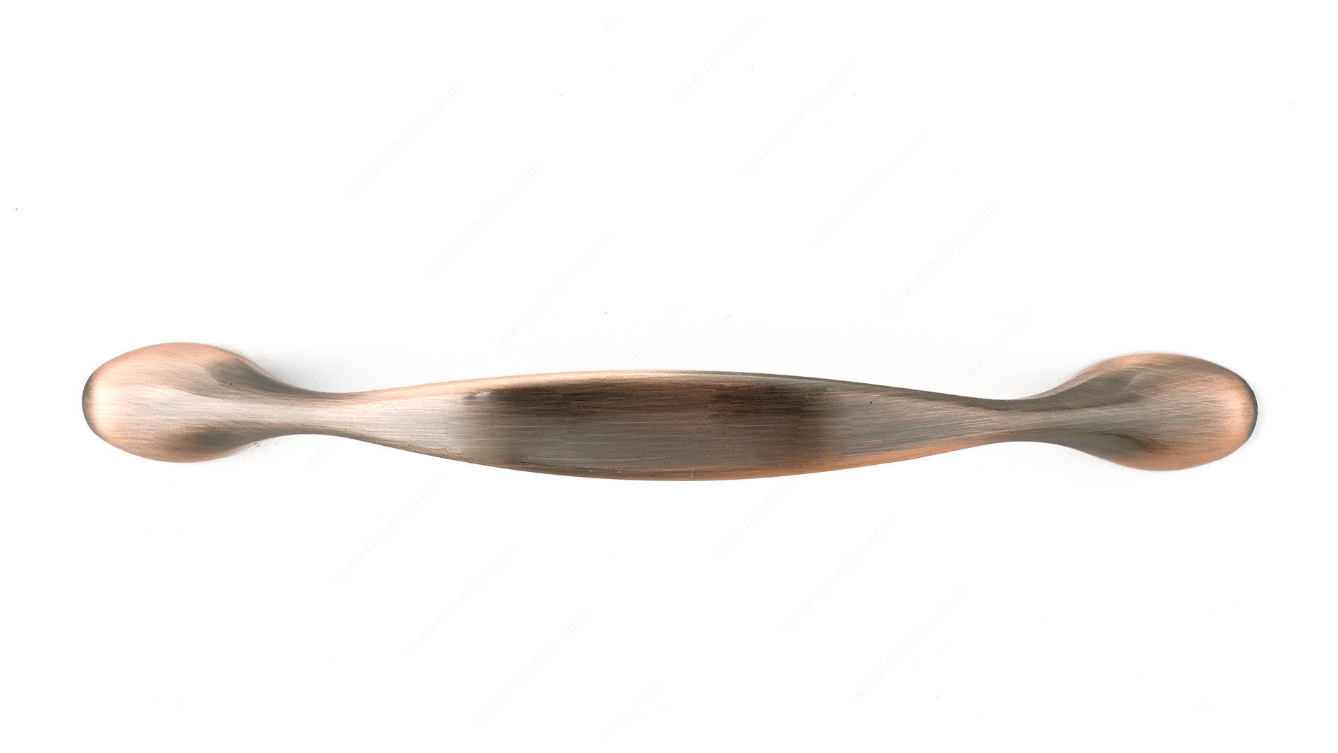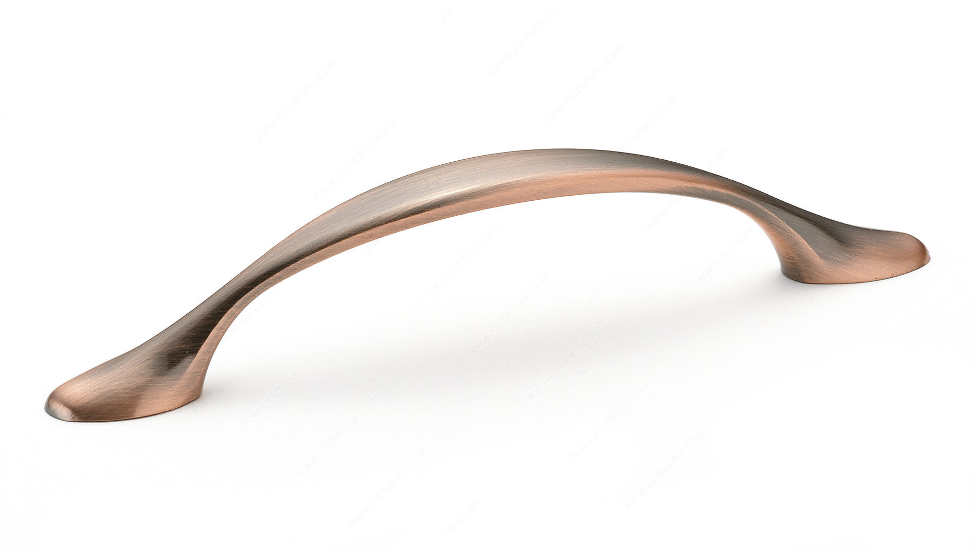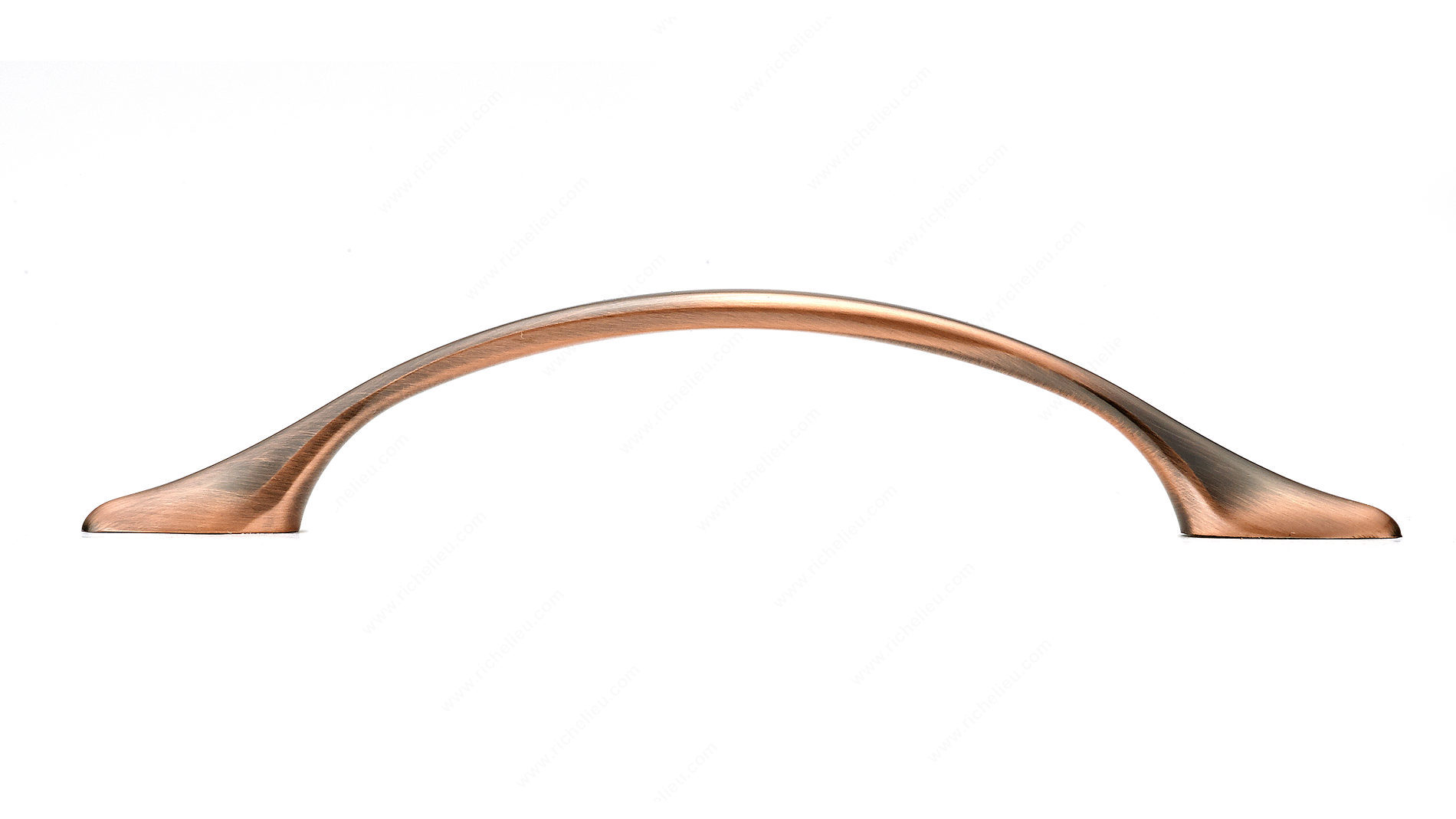Richelieu BP7814193 Traditional Metal Pull - 7814 is a beautifully crafted accent that adds a touch of elegance to your furniture or cabinetry. The gently arched classic bow design, complemented by a flared base, seamlessly blends traditional aesthetics with modern functionality. With an overall length of 4 29/32 inches and a center-to-center measurement of 3 25/32 inches, this pull is perfectly sized for various applications, ensuring a comfortable grip. Constructed from durable zamak, the pull boasts an antique copper finish, enhancing its classic appeal while offering resilience against wear. The rich color options of red, rose, and rust make it a versatile choice for a range of design schemes. Measuring just 29/32 inches in projection and ½ inch in width, this pull is both understated and stylish. Each pull comes with an included 8/32 inch screw for easy installation, packaged conveniently in a bag for your convenience. Whether you're updating a kitchen, bathroom, or any furniture piece, the Richelieu BP7814193 Traditional Metal Pull is an instant upgrade that combines beauty and practicality, making it a smart choice for building professionals and discerning homeowners alike.