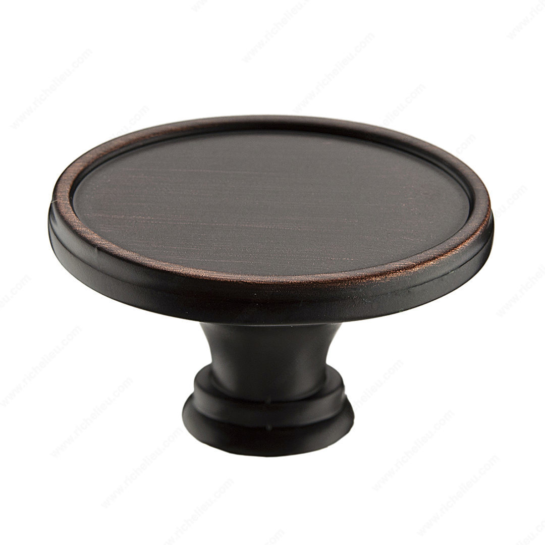 Richelieu BP80239BORB Transitional Metal Knob - 8023 adds a touch of elegance to your cabinetry and furniture with its thoughtfully designed oval shape. Finished in a stunning brushed oil-rubbed bronze, this knob features a rich brown and bronze color palette that seamlessly integrates with various design styles, enhancing both modern and traditional spaces alike. Measuring 1 17/32 inches in length, 31/32 inches in width, and projecting 1 1/32 inches from the surface, this knob offers a comfortable grip without compromising on aesthetics. Crafted from durable zamak, it ensures long-lasting performance while maintaining a refined look. The subtle border detail provides an understated sophistication, making it an ideal choice for those seeking to elevate their interiors. Installation is a breeze with the included 8/32 inch screw, allowing for quick and easy updates to your cabinets, drawers, or furniture pieces. Richelieu's commitment to quality and style is evident in this transitional knob, making it a perfect accent for any home improvement project. Whether you're renovating or simply refreshing your space, the Richelieu BP80239BORB knob will undoubtedly make a lasting impression.