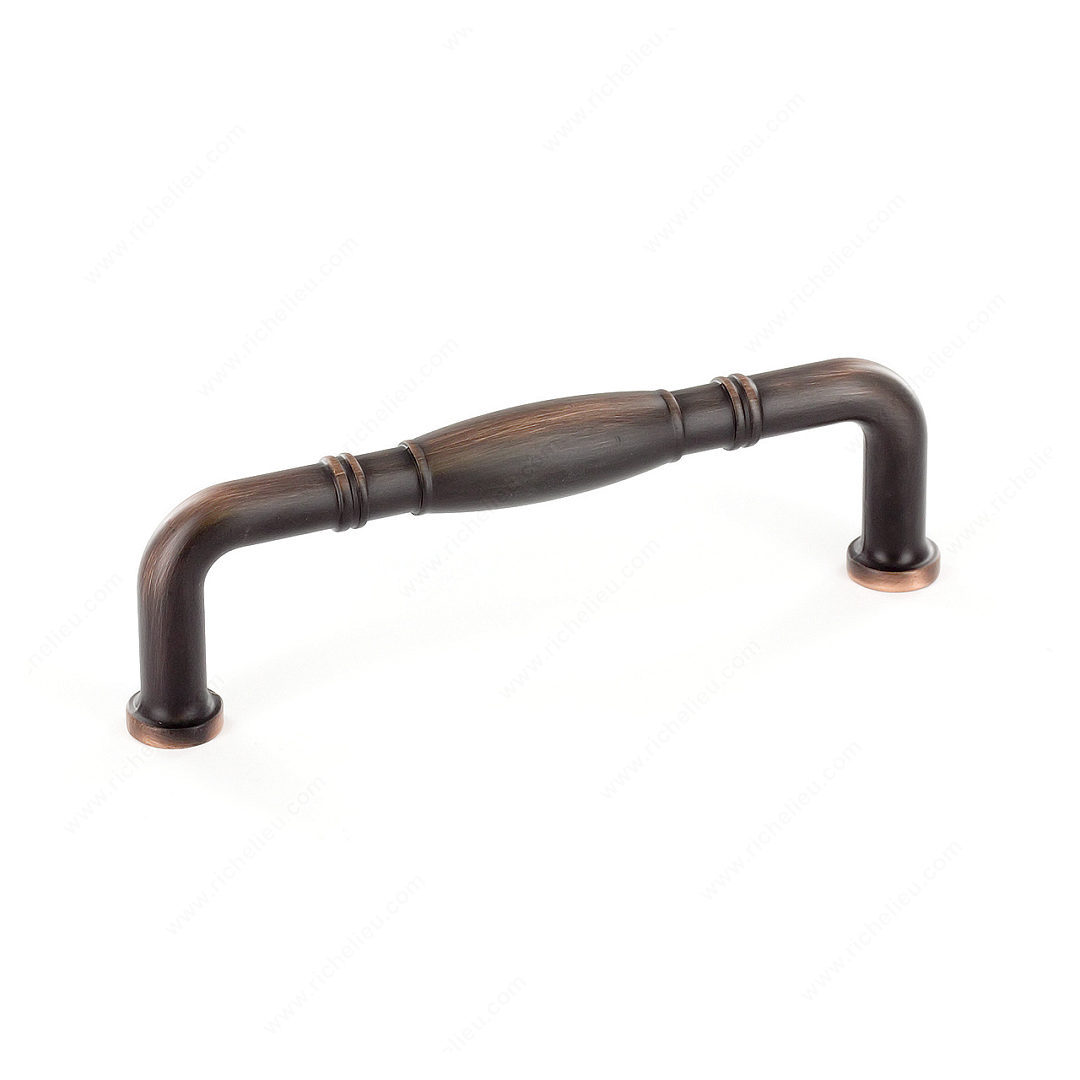 Richelieu BP80296BORB Traditional Metal Pull - 802 enhances your kitchen or bathroom with a timeless elegance. This pull features simple lines complemented by intricate handle details, making it a classic choice for any decor style. Crafted from durable zamak, it boasts a brushed oil-rubbed bronze finish (Finish Number: BORB) that adds warmth and sophistication to your cabinetry. With a center-to-center measurement of 3 25/32 inches, this pull is designed for easy installation and fits seamlessly into various applications. The overall dimensions include a length of 4 1/4 inches, a projection of 1 5/16 inches, and a width of 15/32 inches, ensuring a comfortable grip while maintaining a sleek profile. Each pull comes with an included 8/32-inch screw for straightforward mounting. Available in a rich brown and bronze color palette, the Richelieu BP80296BORB not only serves a functional purpose but also elevates the aesthetic of any space. Whether you're updating existing cabinetry or embarking on a new project, this traditional pull is an excellent choice for those who appreciate quality and style in their home furnishings.