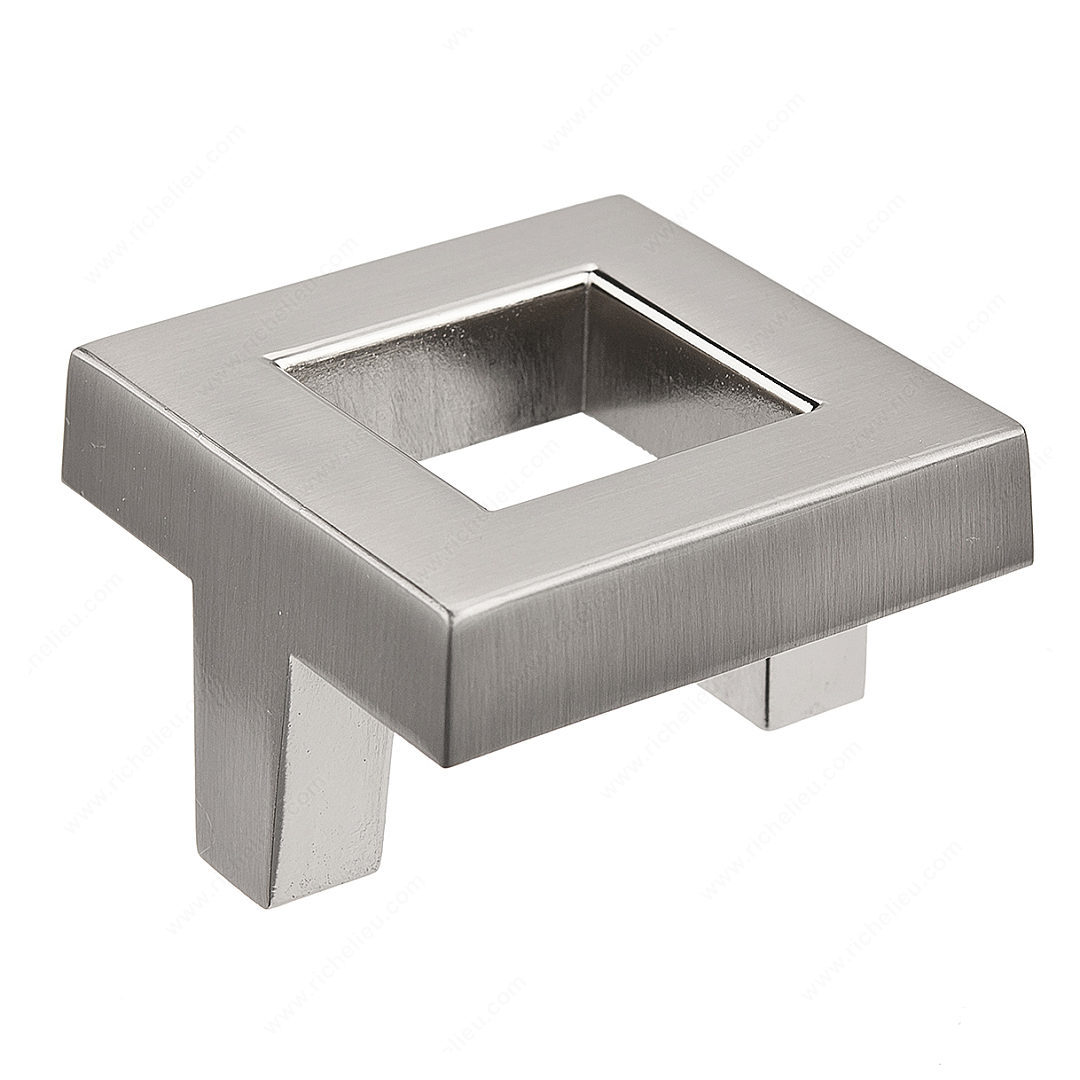 Richelieu BP80338195 Transitional Metal Knob - 8033 makes a bold statement with its unique square shape, perfectly complementing a transitional design theme. Crafted from durable zamak, this knob not only offers aesthetic appeal but also ensures lasting performance. The brushed nickel finish, designated as finish number 195, adds a sophisticated touch while the gray and chrome color scheme enhances its versatility. With overall dimensions measuring 1 21/32 inches in length and width, and a projection of 1 1/16 inches, this knob is designed for both comfort and functionality. The 1 ½ inch center-to-center measurement makes it easy to install, and the included 8/32 inch screw ensures a secure attachment. Ideal for kitchen cabinets, bathroom vanities, or furniture pieces, the Richelieu BP80338195 is a perfect choice for those looking to upgrade their space with a contemporary flair. Its transitional style allows it to blend seamlessly with various decor styles, making it an excellent addition to any home renovation or new build. Available for convenient shipping via UPS, this knob is an excellent choice for professionals and knowledgeable homeowners alike, seeking quality and style in their hardware selections.