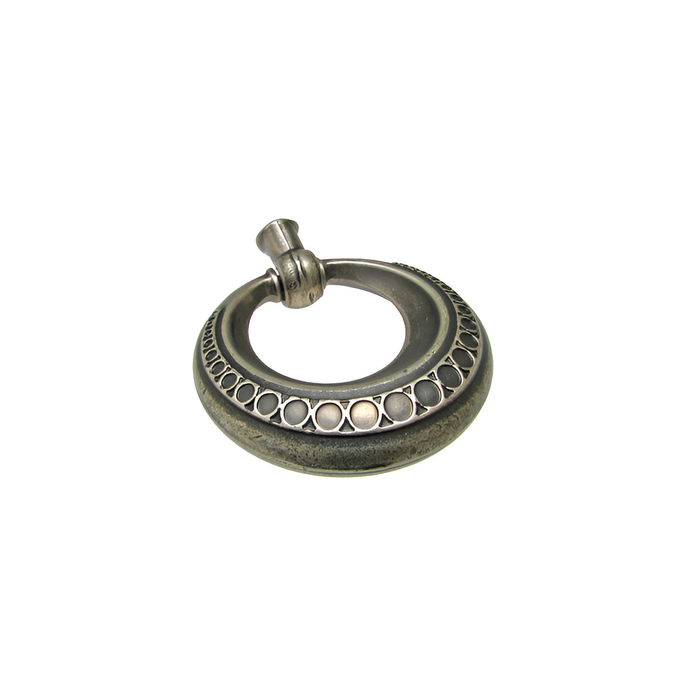 Richelieu BP80976142 Traditional Metal Pull - 8097 adds a touch of elegance and sophistication to your furniture and cabinetry. This unique ring pull features a classic design, complete with an eye-catching embellishment that enhances any decor style. The pewter finish, designated as finish number 142, offers a trendy yet timeless aesthetic, perfectly complementing a variety of color schemes. Crafted from durable Zamak, this pull is designed to withstand the rigors of daily use while maintaining its stylish appearance. With overall dimensions of 1 7/8 inches in diameter, length, and width, it fits seamlessly into standard cabinetry applications. The projection of 21/32 inches ensures comfortable grip and ease of use, making it an ideal choice for both kitchen and bathroom settings. Installation is straightforward, as the necessary 8/32 inch screws are included. Whether you're updating existing furniture or designing new cabinetry, the Richelieu BP80976142 Traditional Metal Pull serves as a functional piece that elevates your space. Its versatility and classic appeal make it a perfect choice for building professionals and discerning homeowners alike. Embrace the charm of traditional design with this exquisite pull.