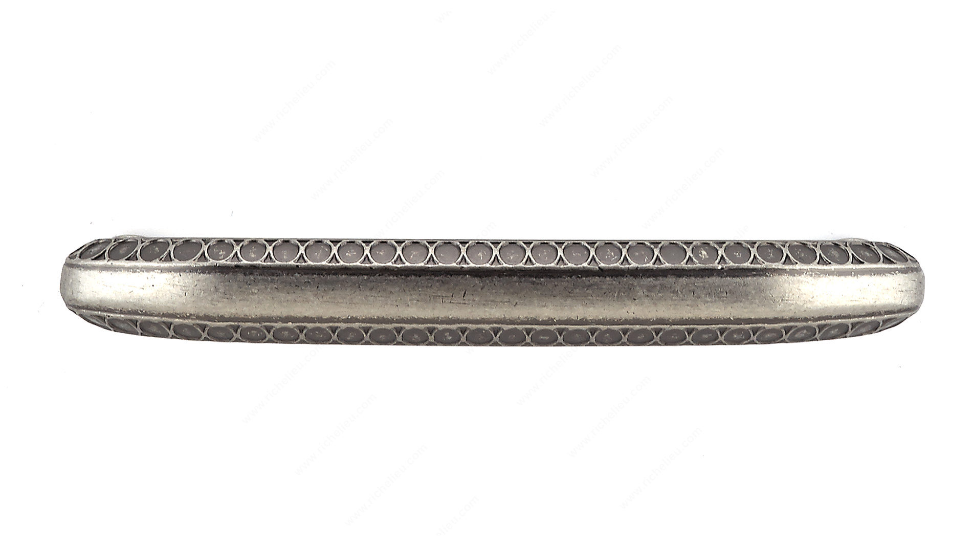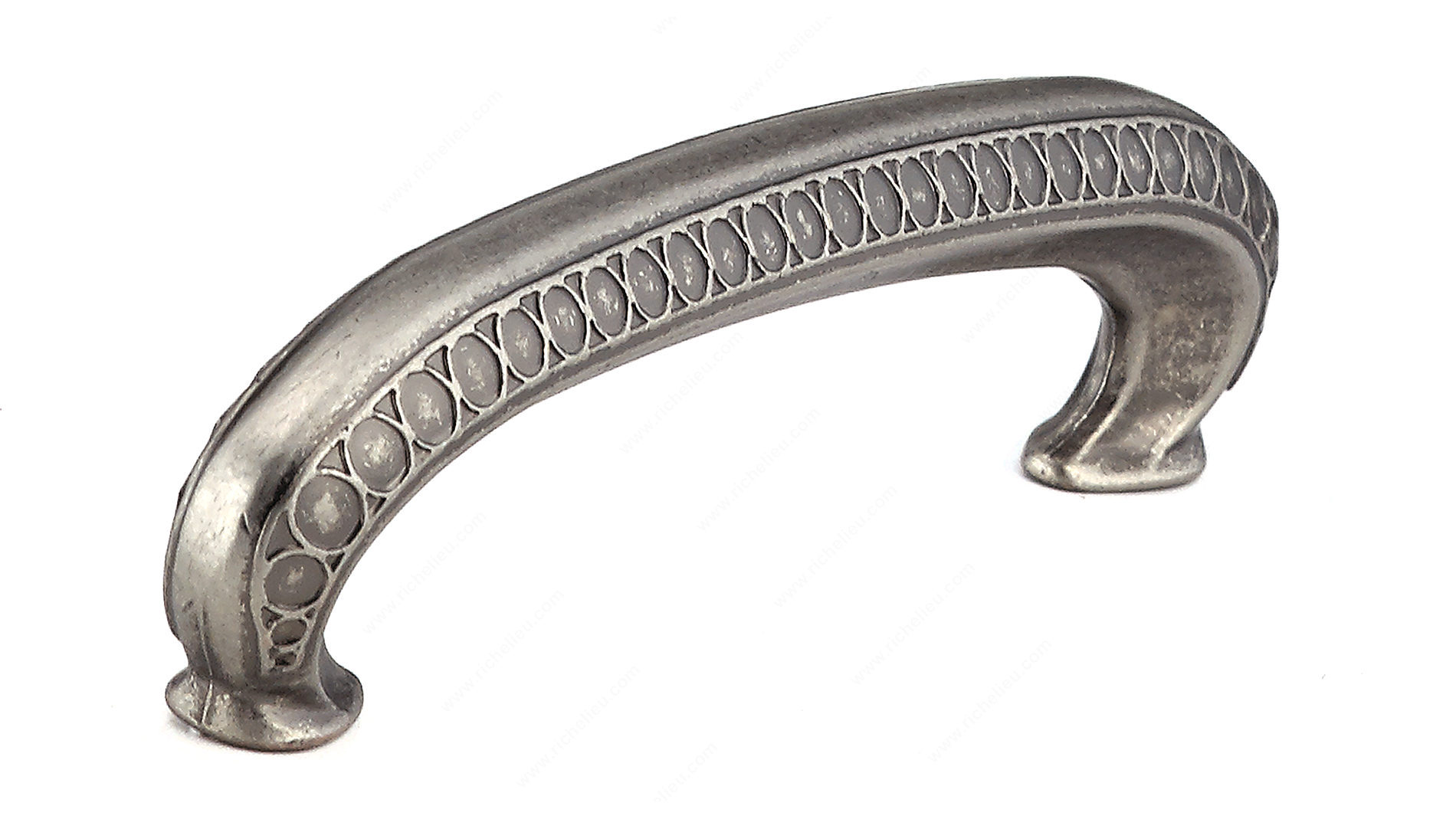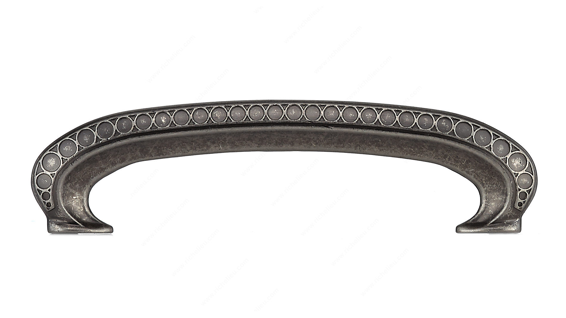 Richelieu BP80977142 Traditional Metal Pull - 8097 enhances the elegance of your furniture and cabinetry with its sophisticated design. This curved handle pull features a classic silhouette adorned with an eye-catching circular embellishment, making it a perfect addition for those looking to elevate their interior spaces. The trendy pewter finish adds a touch of modernity while retaining its traditional charm, allowing it to blend seamlessly with a variety of decors. Measuring 4 11/32 inches in length overall, with a center-to-center distance of 3 25/32 inches, this pull is designed for easy installation and optimal functionality. The pull’s projection of 1 3/16 inches provides a comfortable grip, ensuring effortless use. Made from durable zamak, it promises long-lasting performance and resilience against wear. This model is ideal for both professional builders and discerning homeowners seeking quality hardware. The included 8/32 inch screws ensure quick and straightforward installation. With its striking gray and chrome color combination, the Richelieu BP80977142 Traditional Metal Pull will not only enhance the aesthetic appeal of any cabinetry but also provide reliable functionality for years to come. Transform your spaces with this exquisite hardware piece that embodies both style and practicality.