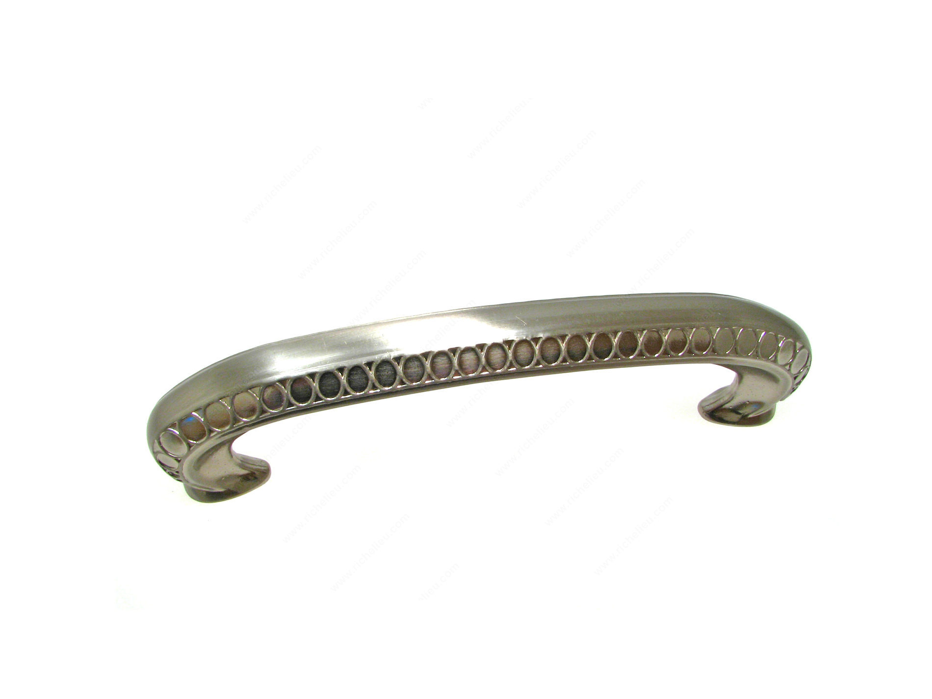 Richelieu BP80977195 Traditional Metal Pull - 8097 effortlessly combines elegance and functionality, making it a perfect addition to your furniture and cabinetry. This beautifully crafted curved handle pull features a classic design highlighted by an eye-catching circular embellishment, offering a timeless appeal that enhances any decor style. Constructed from durable zamak, this pull is both sturdy and stylish, ensuring longevity while maintaining its sophisticated look. The brushed nickel finish adds a touch of modernity, beautifully complementing the gray and chrome color scheme. With an overall length of 4 11/32 inches and a width of 9/16 inches, it’s designed to fit comfortably in your hand, while the 3 25/32-inch center-to-center measurement makes installation straightforward. The projection of 1 3/16 inches provides ample clearance for easy gripping. Each pull comes with an included 8/32 inch screw for hassle-free installation, ensuring you can enjoy your new hardware without delay. Whether you’re upgrading your kitchen, bathroom, or any living space, the Richelieu BP80977195 pull is a stylish and functional choice that adds a touch of classic charm to your home.