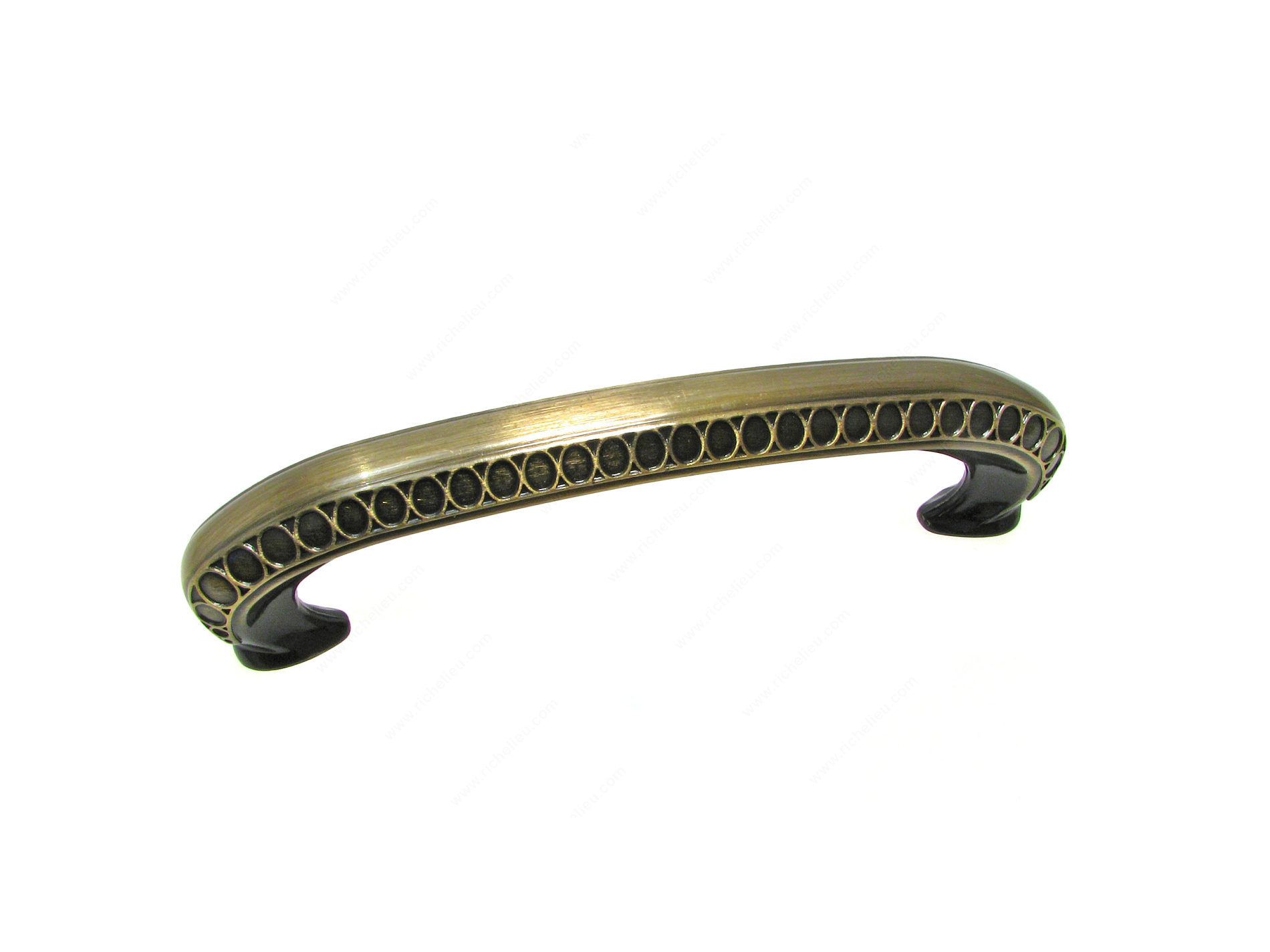Richelieu BP80977AE Traditional Metal Pull - 8097 elevates the aesthetic of your furniture and cabinetry with its sophisticated design. Crafted from durable zamak, this pull showcases a classic style, accentuated by an eye-catching circular embellishment that adds a touch of elegance to any space. Finished in Antique English, the warm yellow and brass tones seamlessly complement a variety of decors, making it a versatile choice for traditional and contemporary settings alike. With a center-to-center measurement of 3 25/32 inches, this pull is not only stylish but also practical, ensuring a comfortable grip. The overall dimensions measure 4 11/32 inches in length, 9/16 inches in width, and a projection of 1 3/16 inches, making it suitable for various furniture types. Each pull comes with an 8/32 inch screw included for easy installation, allowing you to enhance your cabinetry effortlessly. Richelieu’s commitment to quality ensures that this pull will stand the test of time, providing both function and flair. Perfect for kitchen cabinets, dressers, or any furniture piece needing a refined touch, the BP80977AE is an excellent choice for building professionals and discerning homeowners alike.