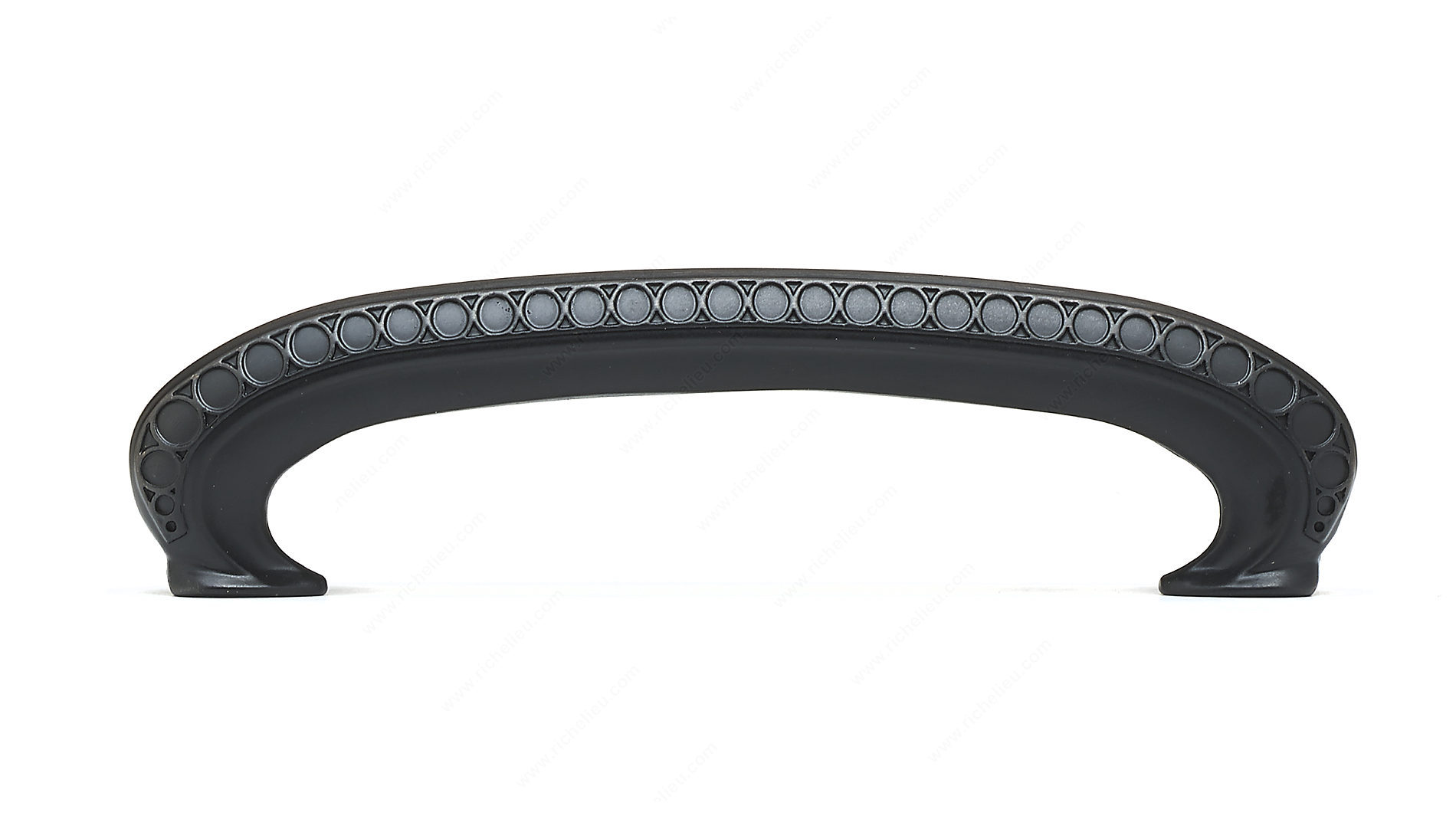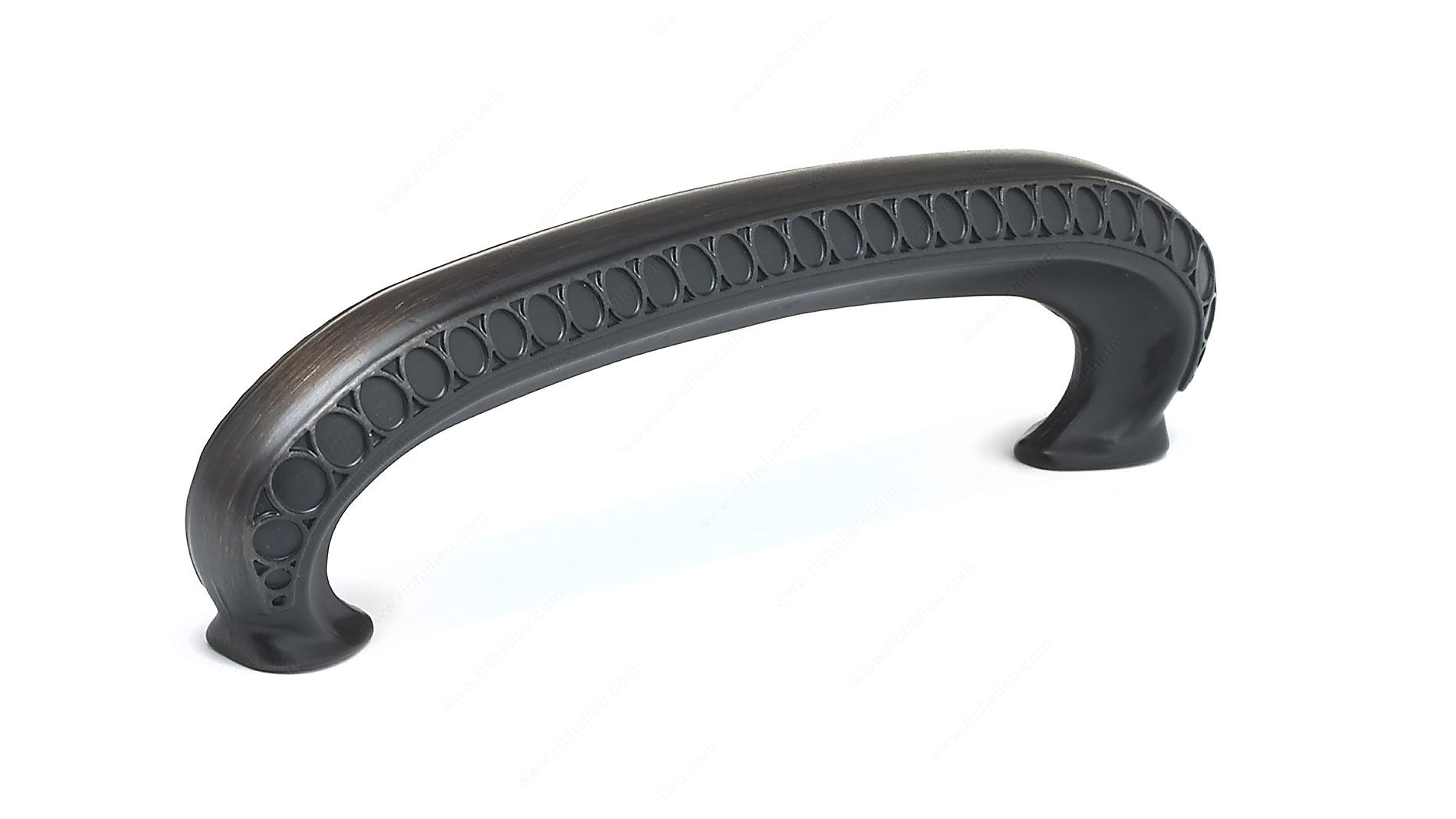 Richelieu BP80977BORB Traditional Metal Pull - 8097 is the perfect addition to elevate your furniture and cabinetry with a touch of elegance and style. This curved handle pull showcases a classic design, highlighted by an eye-catching circular embellishment that seamlessly blends with modern aesthetics. The brushed oil-rubbed bronze finish adds a trendy flair, making it an ideal choice for both traditional and contemporary settings. Measuring 4 11/32 inches in length, this pull features a center-to-center spacing of 3 25/32 inches, allowing for easy installation on a variety of cabinet doors and drawers. With a projection of 1 3/16 inches, it provides a comfortable grip while maintaining a sleek profile. Crafted from durable zamak, this pull is built to withstand daily use while retaining its sophisticated appearance. The overall width of 9/16 inch ensures a refined look that complements your cabinetry without overpowering it. Each pull comes with an 8/32 inch screw for simple installation. Available for UPS shipping, the Richelieu BP80977BORB is a stylish and functional choice for homeowners and professionals seeking to enhance their interior spaces with quality hardware.
