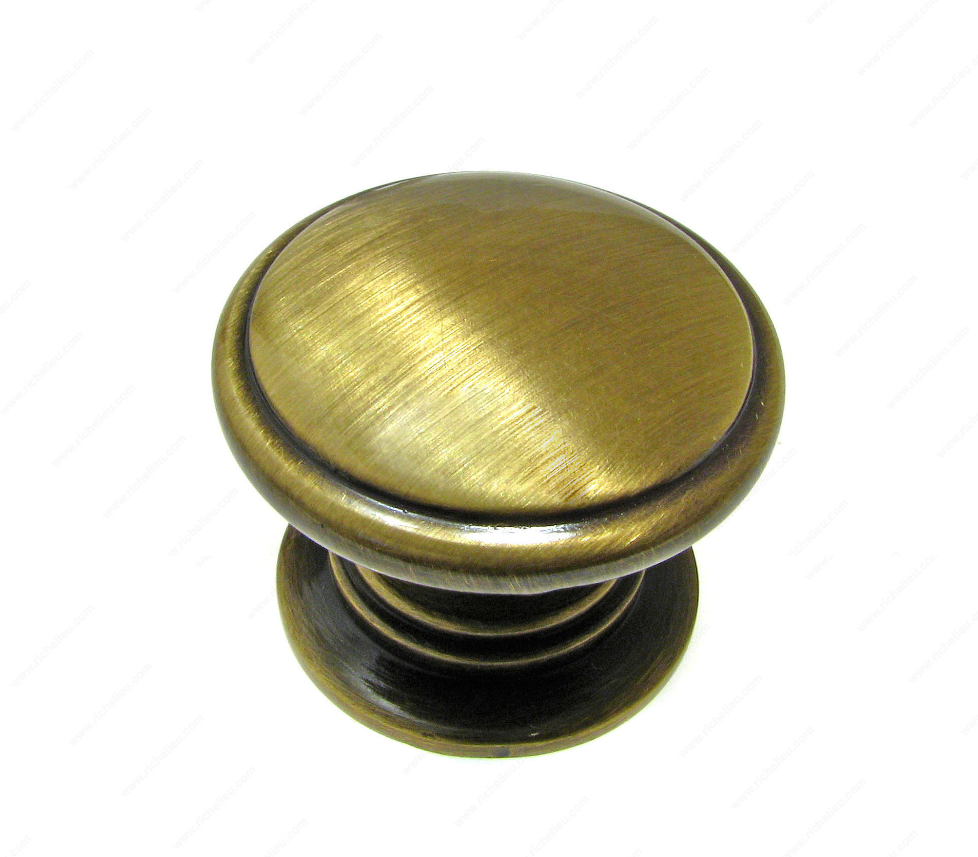 Richelieu BP80980AE Traditional Metal Knob - 8098 offers a classic touch to any furniture or cabinetry. Its discreet detailing complements simple lines and enhances traditional aesthetics, making it an ideal choice for those looking to add a refined accent to their spaces. Crafted from durable metal, this knob features an appealing Antique English finish that exudes warmth and sophistication. With an overall diameter of 1 7/32 inches and a base diameter of 1 1/32 inches, this knob is both functional and stylish. Its projection measures 15/16 inches, providing a comfortable grip while maintaining a low profile. The traditional design aligns seamlessly with various decor styles, ensuring versatility in application. Each knob comes with a matching screw (8/32 inch) for easy installation, allowing you to quickly upgrade your cabinets or furniture. The yellow and brass color scheme adds an elegant touch that can elevate the look of any room. Whether you are a building professional or a knowledgeable homeowner, the Richelieu BP80980AE is a perfect blend of style and practicality, suitable for kitchens, living rooms, or any area that could benefit from a classic hardware upgrade.