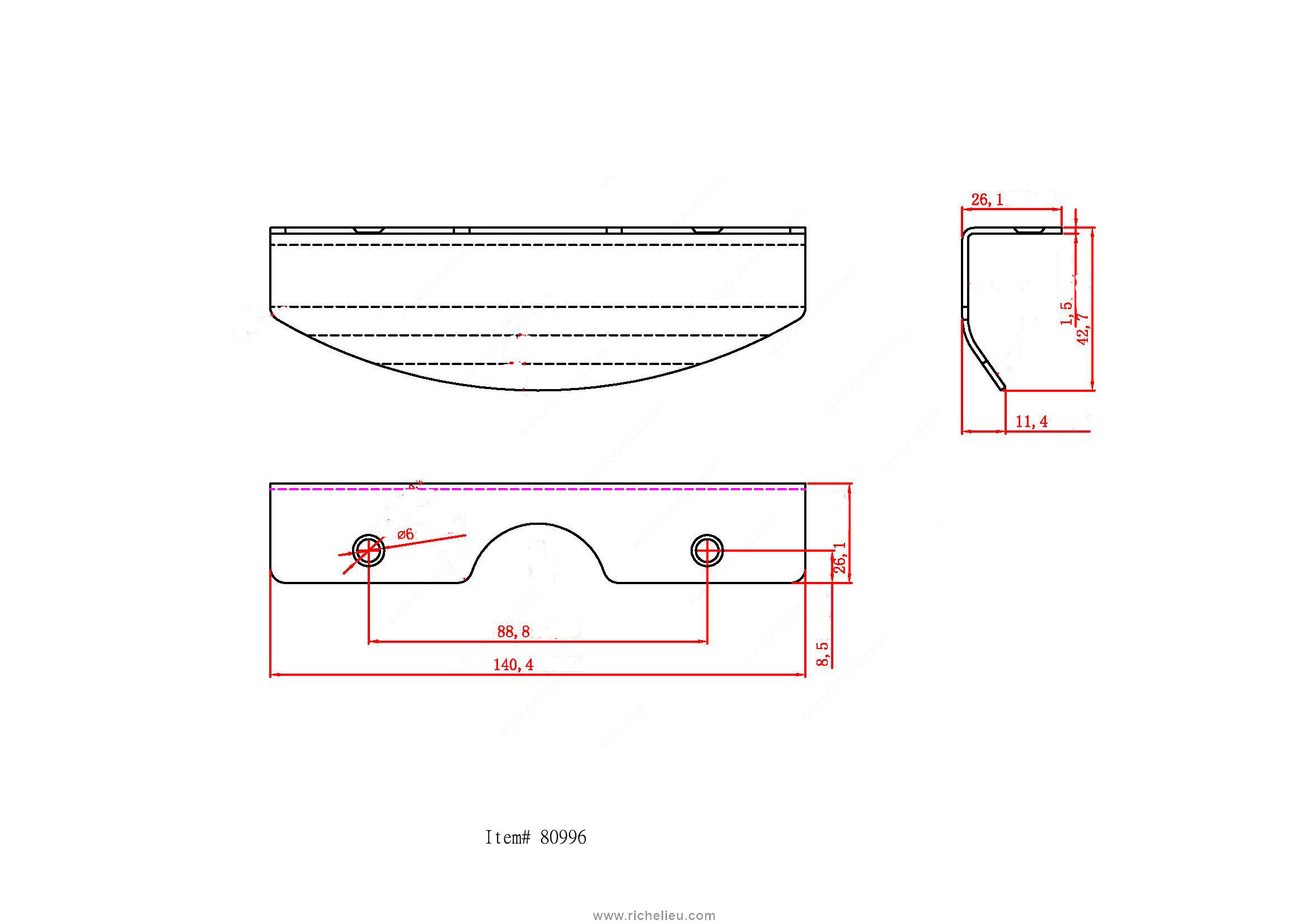 Richelieu BP80996900 Modern Metal Edge Pull - 8099 offers a sleek and sophisticated touch to your cabinetry with its contemporary design. Crafted from durable metal, this edge pull is finished in a striking matte black that not only complements a variety of styles but also ensures longevity and resilience against daily use. With an overall length of 5 1/2 inches and a width of 1 1/32 inches, this pull is designed for comfortable grip and easy access. The center-to-center measurement of 3 1/2 inches makes it an ideal choice for standard drawers, while its projection of 1 11/16 inches provides ample clearance for effortless operation. The BP80996900 is packaged in a convenient bag and includes #8 screws for easy installation. Whether you're upgrading your kitchen, bathroom, or any furniture piece, this modern edge pull enhances the aesthetic appeal while maintaining functionality. Designed for professionals and discerning homeowners alike, this product exemplifies Richelieu’s commitment to quality and style. Elevate your space with the refined elegance of the Richelieu BP80996900 Modern Metal Edge Pull, a perfect blend of form and function.