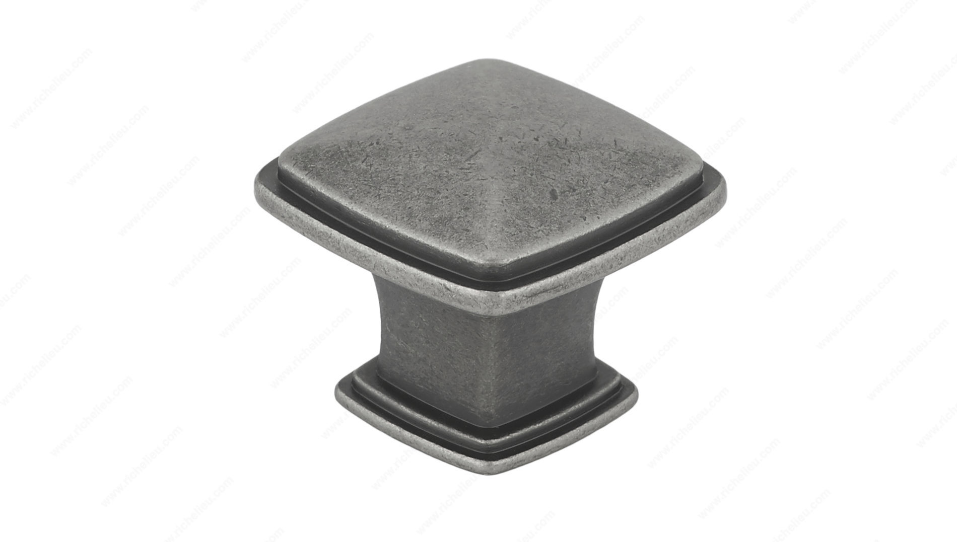 Richelieu BP81091142 Transitional Metal Knob - 810 offers a stylish and functional upgrade for any room. Its transitional square design features a robust square base, beautifully finished with fine detailing around the edges, adding a refined touch to your cabinets or furniture. Crafted from high-quality zamak, this knob promises durability and longevity, making it a smart choice for both residential and commercial applications. The knob comes in an elegant pewter finish, complemented by a chic gray and chrome color palette, making it versatile enough to enhance various décor styles. With overall dimensions of 1 7/32 inches in length and width, and a projection of 31/32 inches, it fits comfortably in hand while maintaining a sleek profile. Installation is straightforward, as it includes an 8/32 inch screw for easy mounting. This knob not only elevates the aesthetic of your space but also offers practical functionality, ensuring ease of use. Whether you're updating your kitchen, bathroom, or any room in your home, the Richelieu BP81091142 knob is an excellent choice that combines style with utility. Upgrade your interiors with this sophisticated hardware piece that reflects your taste and enhances your environment.