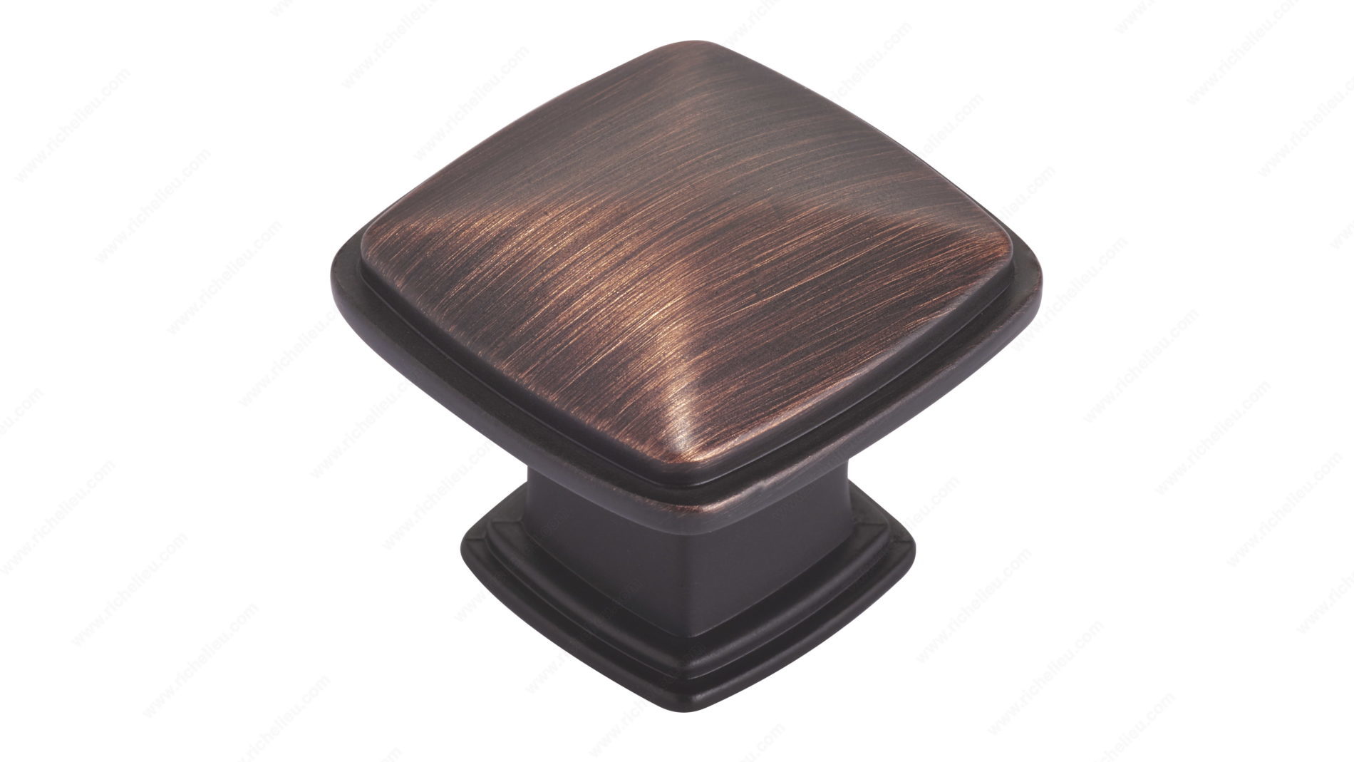 Richelieu BP81091BORB Transitional Metal Knob - 810 enhances any room with its stylish and contemporary design. Crafted from durable zamak, this square knob showcases a brushed oil-rubbed bronze finish, adding a touch of sophistication to your cabinetry or furniture. Measuring 1 7/32 inches in both length and width, it perfectly balances form and function, making it a versatile choice for a variety of settings. The fine detailing around the edges not only elevates the aesthetic appeal but also ensures a comfortable grip, facilitating easy opening and closing of drawers and doors. With a projection of 31/32 inches, this knob is designed to stand out without overpowering your existing decor. The transitional style seamlessly blends with both modern and traditional interiors, making it a valuable addition to any design scheme. For your convenience, an 8/32 inch screw is included, ensuring a hassle-free installation process. Whether you are a building professional or a knowledgeable homeowner, the Richelieu BP81091BORB knob offers both quality and elegance, making it an ideal choice for your next project. Plus, shipping via UPS ensures that your order arrives promptly and securely.