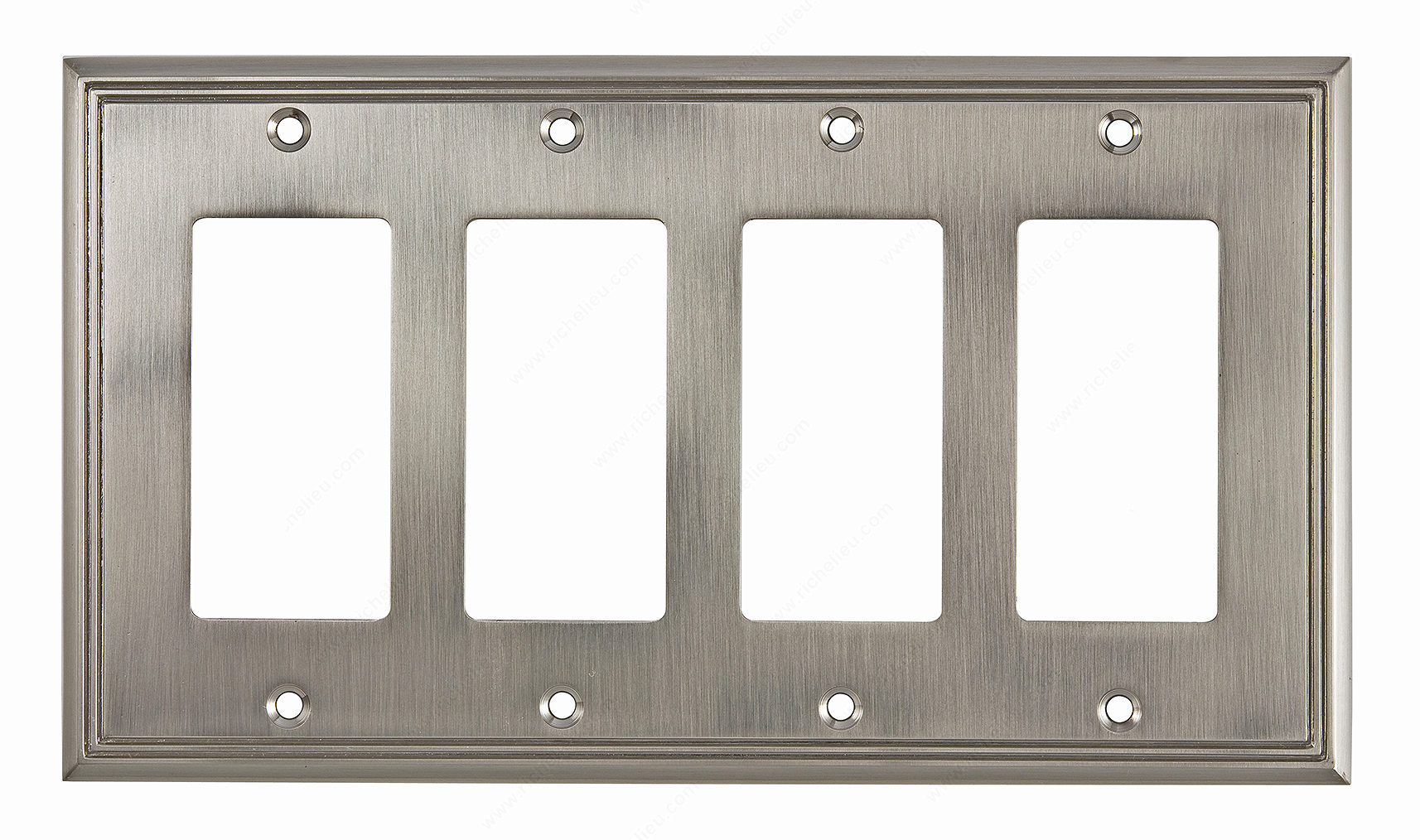 Richelieu BP851111195 Switch Plate 4 Decora - Contemporary Style offers a modern touch to your home’s interior design. Crafted with precision, this switch plate showcases straight lines and a streamlined appearance that effortlessly enhances any contemporary space. The brushed nickel finish provides a sophisticated look, while the elegant gray and chrome color combination adds a stylish flair. Measuring 4 27/32 inches in height and 8 17/32 inches in width, this switch plate is designed to fit standard Decora outlets seamlessly. With a projection of just 1/4 inch, it maintains a low-profile aesthetic that won’t overwhelm your decor. Constructed from durable metal, it ensures long-lasting performance and a refined appearance. Installation is made easy with included screws, allowing for a hassle-free setup. Whether you’re renovating your kitchen, updating your living area, or enhancing office spaces, the Richelieu BP851111195 Switch Plate is an essential accessory that combines functionality with contemporary style. Upgrade your home’s electrical aesthetics with this stylish solution, perfect for building professionals and discerning homeowners alike.