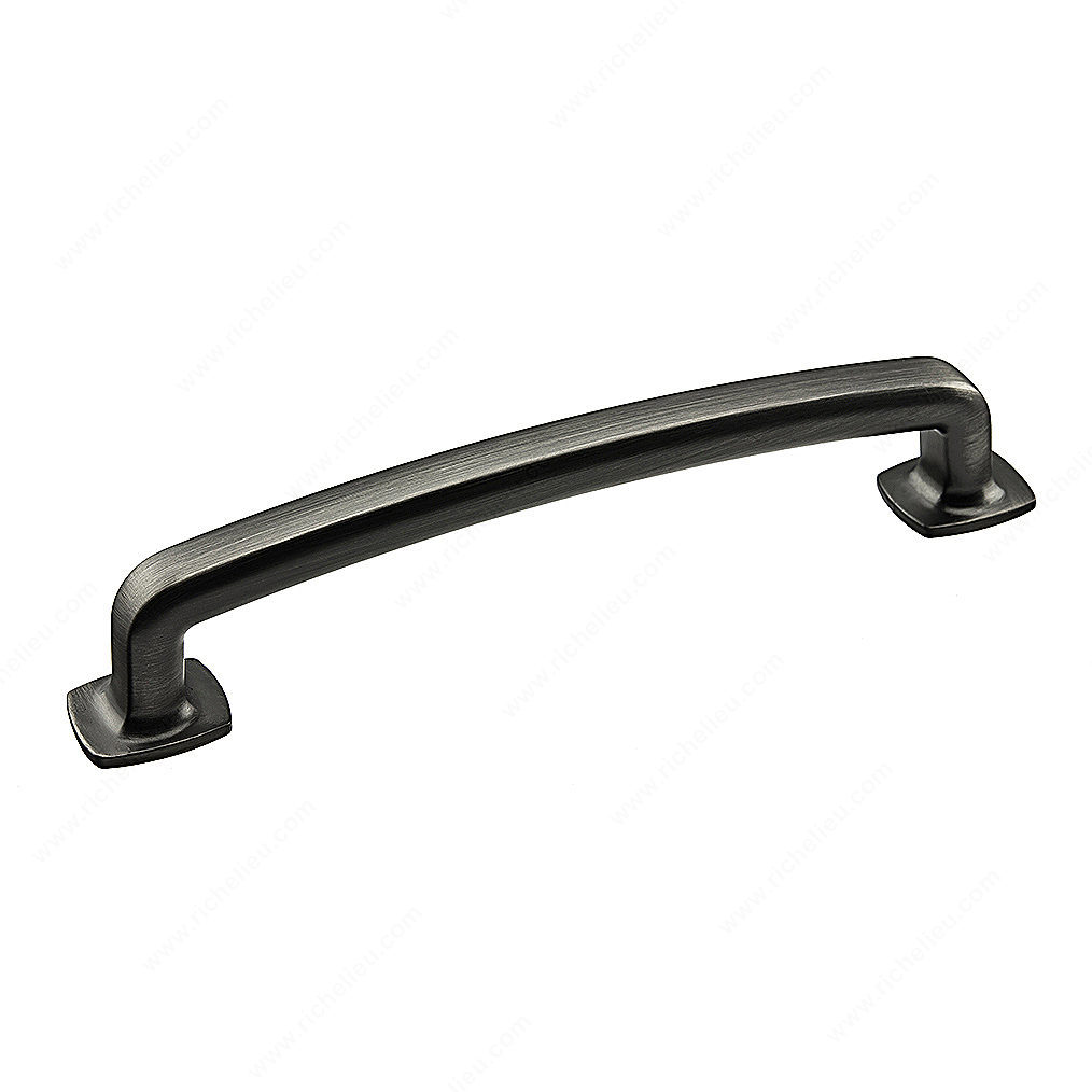 Richelieu BP863128143 Transitional Metal Pull - 863 embodies a perfect blend of simplicity and elegance, designed to enhance the aesthetic of any kitchen or bathroom. With its rounded corners and wide flanges, this handle offers a smooth, contemporary look that seamlessly integrates into various design styles. Measuring 5 29/32 inches in overall length and featuring a center-to-center distance of 5 1/32 inches, this pull is crafted from durable Zamak, ensuring longevity and performance. The sophisticated Antique Nickel finish, complemented by gray and chrome accents, adds a touch of refinement that elevates any cabinetry. This transitional-style pull not only provides functionality but also serves as a striking decorative element. Its projection of 1 3/16 inches allows for a comfortable grip, making it an ideal choice for high-traffic areas. Installation is made simple with included 8/32 inch screws. Part of the complete 863 collection, the Richelieu BP863128143 is versatile enough to complement any décor while offering a cohesive look throughout your space. Ship via UPS for convenience, making it easy to incorporate this stylish accessory into your next design project. Upgrade your interiors with this beautifully crafted handle that combines form and function effortlessly.