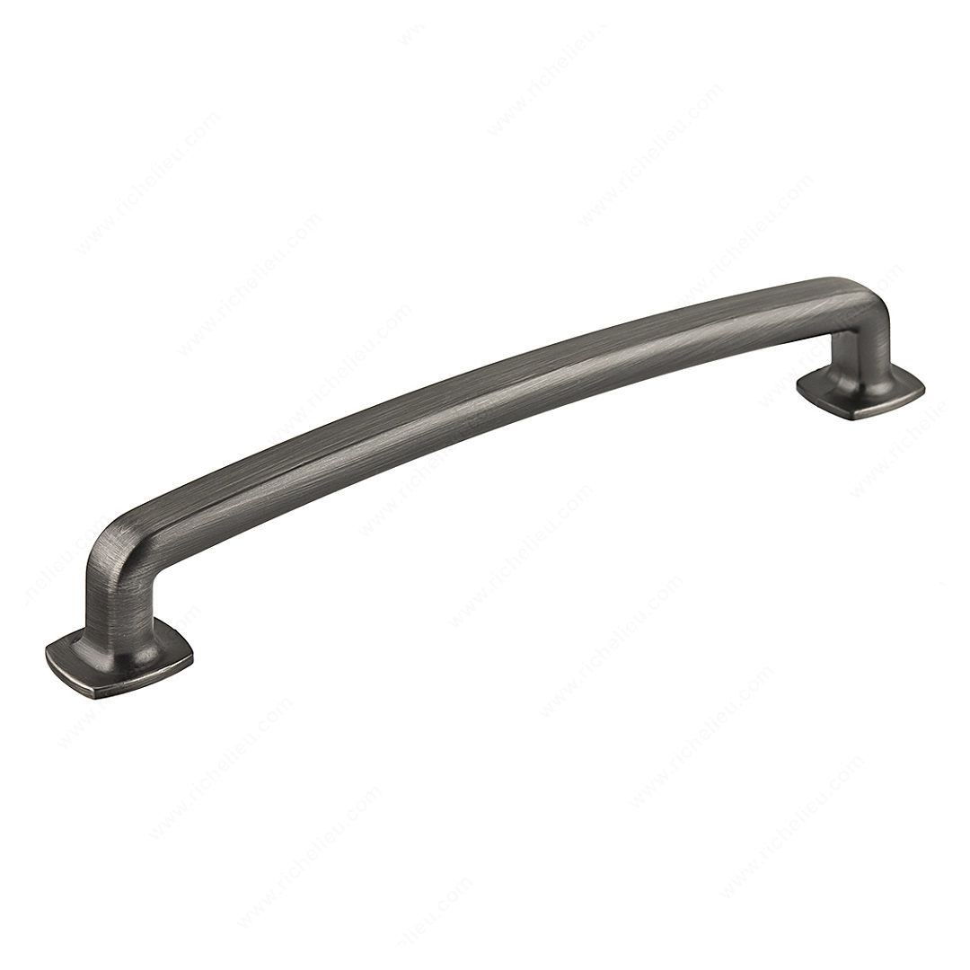 Richelieu BP863160143 Transitional Metal Pull - 863 embodies a refined blend of style and functionality, making it an ideal choice to elevate any kitchen or bathroom décor. This handle features a sleek design with rounded corners and wide flanges, offering a contemporary touch that complements various interior aesthetics. With a center-to-center measurement of 6 5/16 inches, this pull is versatile enough to fit seamlessly into existing cabinetry. Its overall dimensions measure 7 5/32 inches in length, 3/4 inch in width, and a projection of 1 3/16 inches, ensuring a comfortable grip. Crafted from durable zamak, it promises longevity while showcasing an exquisite antique nickel finish that adds sophistication to any space. The Richelieu BP863160143 is available in a striking gray and chrome color palette, allowing it to harmonize beautifully with modern and transitional styles alike. Each pull comes with an 8/32 inch screw for easy installation, making updates to your cabinetry simple and efficient. Part of the comprehensive 863 collection, this pull not only enhances functionality but also contributes to a cohesive design throughout your home. Upgrade your spaces with the timeless elegance of Richelieu’s transitional metal pull today.