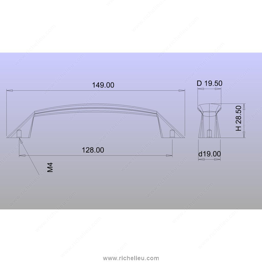 Richelieu BP869128195 Modern Metal Pull - 869 is a striking addition to contemporary home décor, showcasing a sleek design characterized by its square lines and flared ends. This pull handle effortlessly enhances the aesthetic of cabinets and drawers, making it an ideal choice for both renovations and new constructions. With a generous center-to-center measurement of 5 1/32 inches, this pull provides a comfortable grip while maintaining a minimalist appearance. Its brushed nickel finish, combined with gray and chrome accents, lends a sophisticated touch that complements a variety of design styles. The overall dimensions of 5 7/8 inches in length, 25/32 inches in width, and a projection of 1 1/8 inches make it a versatile option for numerous applications. Constructed from durable metal, the BP869128195 pull is built to withstand daily use without compromising on style. Installation is straightforward, thanks to the included M4 screws, ensuring that you can enhance your space with ease. This modern pull is not just a functional hardware accessory but also a statement piece that reflects quality and design innovation. Transform your cabinetry with Richelieu’s BP869128195 Modern Metal Pull today.