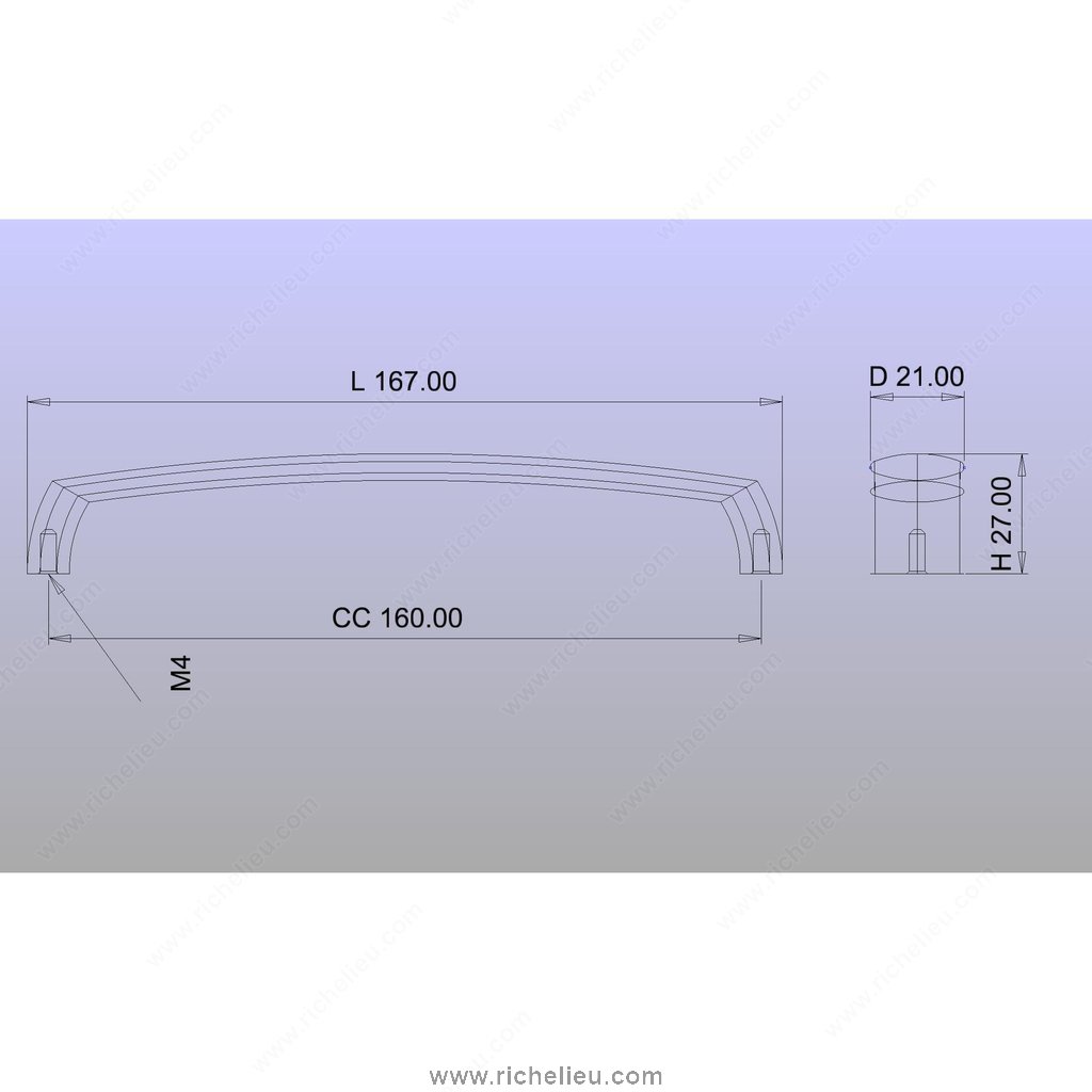 Richelieu BP871160174 Modern Metal Pull - 871 is designed to elevate the aesthetic of your kitchen and bathroom cabinetry with its contemporary arched silhouette. Crafted from high-quality metal, this pull combines durability with sleek elegance, making it a perfect choice for modern interiors. The matte chrome finish in a sophisticated gray and chrome color palette adds a refined touch, ensuring it complements a variety of design schemes. With an overall length of 6 9/16 inches and a center-to-center measurement of 6 5/16 inches, this pull provides a comfortable grip while maintaining a streamlined appearance. Its projection of 1 1/16 inches allows for easy access, enhancing functionality without compromising style. The width of 13/16 inches ensures a balanced look that fits seamlessly with your cabinetry. Installation is straightforward with M4 screws included, allowing for quick updates to your space. Ideal for both professionals and discerning homeowners, the Richelieu BP871160174 pull is not just a hardware piece, but a statement of modern design. Ship via UPS for convenience, making this an exceptional choice for your next renovation or new build project. Transform your cabinets with this stylish and practical hardware solution.